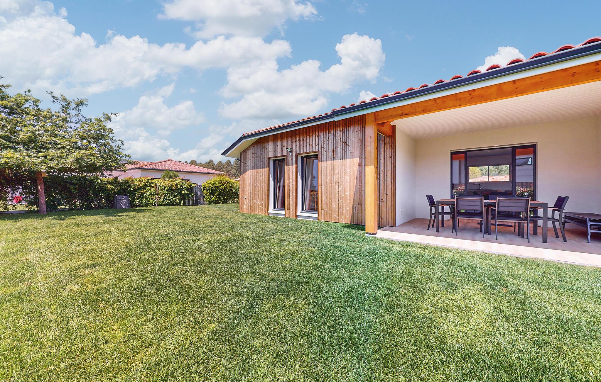 Tilbring en afslappende ferie i dette moderne feriehus med en stor have og overdækket terrasse.