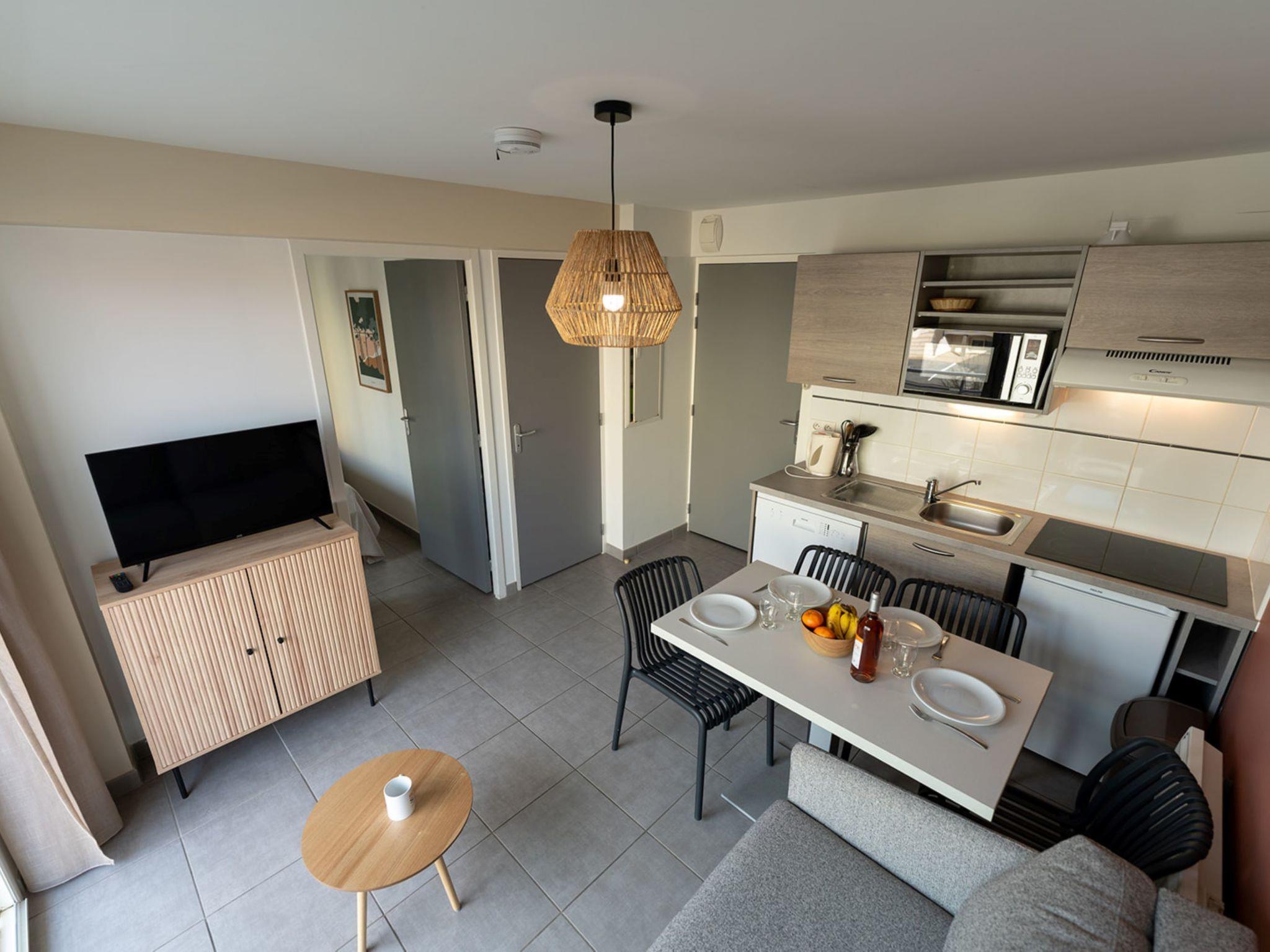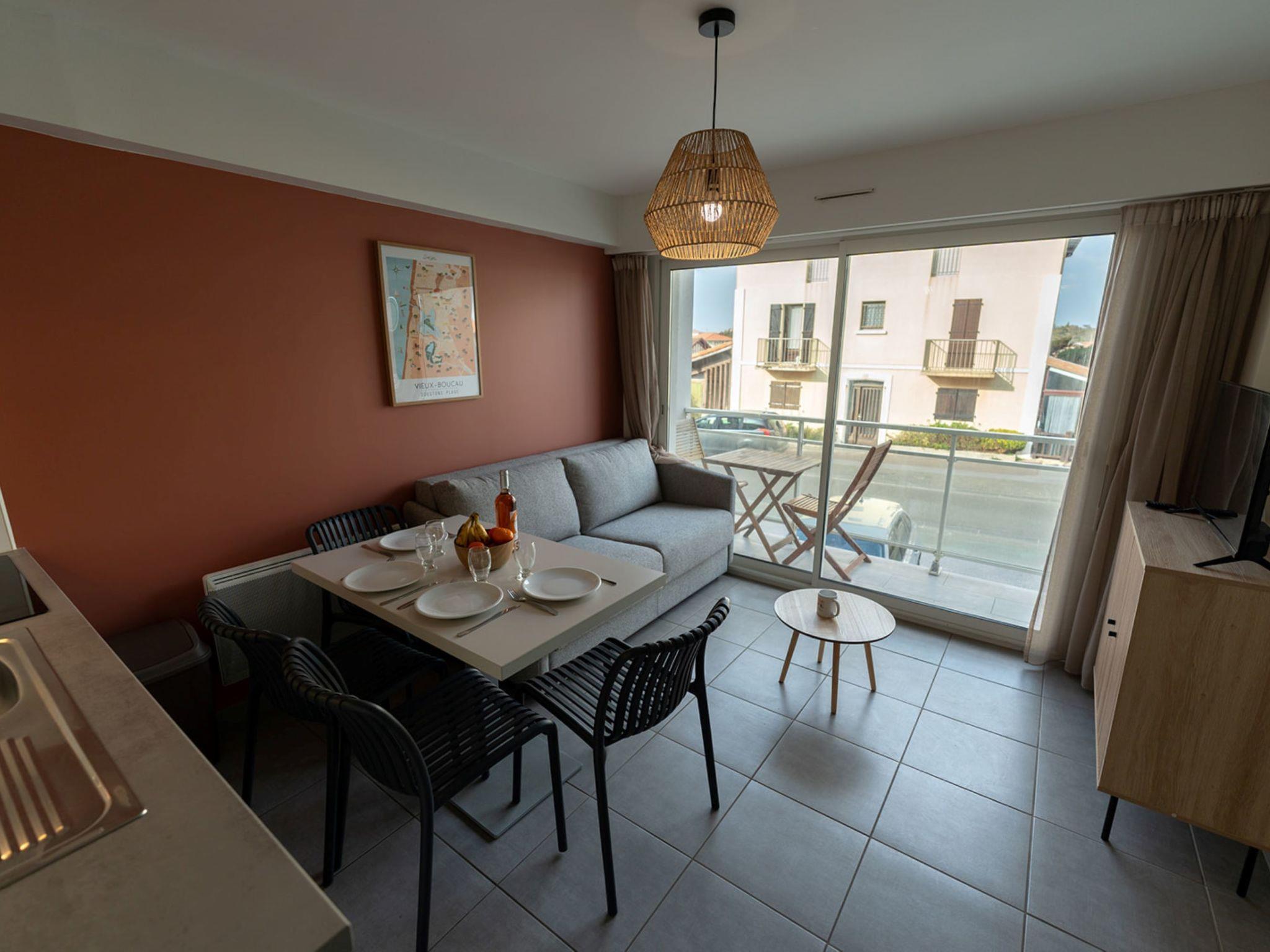 "Résidence Lagocéan T2 Sup.", 2-room apartment 22 to 30 m2. Practical furnishings: living/sleeping room with 1 double sofabed, dining table and TV. Exit to the balcony, to the terrace. 1 room with 1 french bed (160 cm). Open kitchen (dishwasher, 4 ceramic glass hob hotplates, toaster, kettle, microwave, freezer, electric coffee machine). Shower/WC. Electric heating. Small balcony or small terrace. Facilities: washing machine, children's high chair, baby cot (extra), hair dryer. Internet (WiFi, free). Parking (1 car). Please note: smoke alarm.