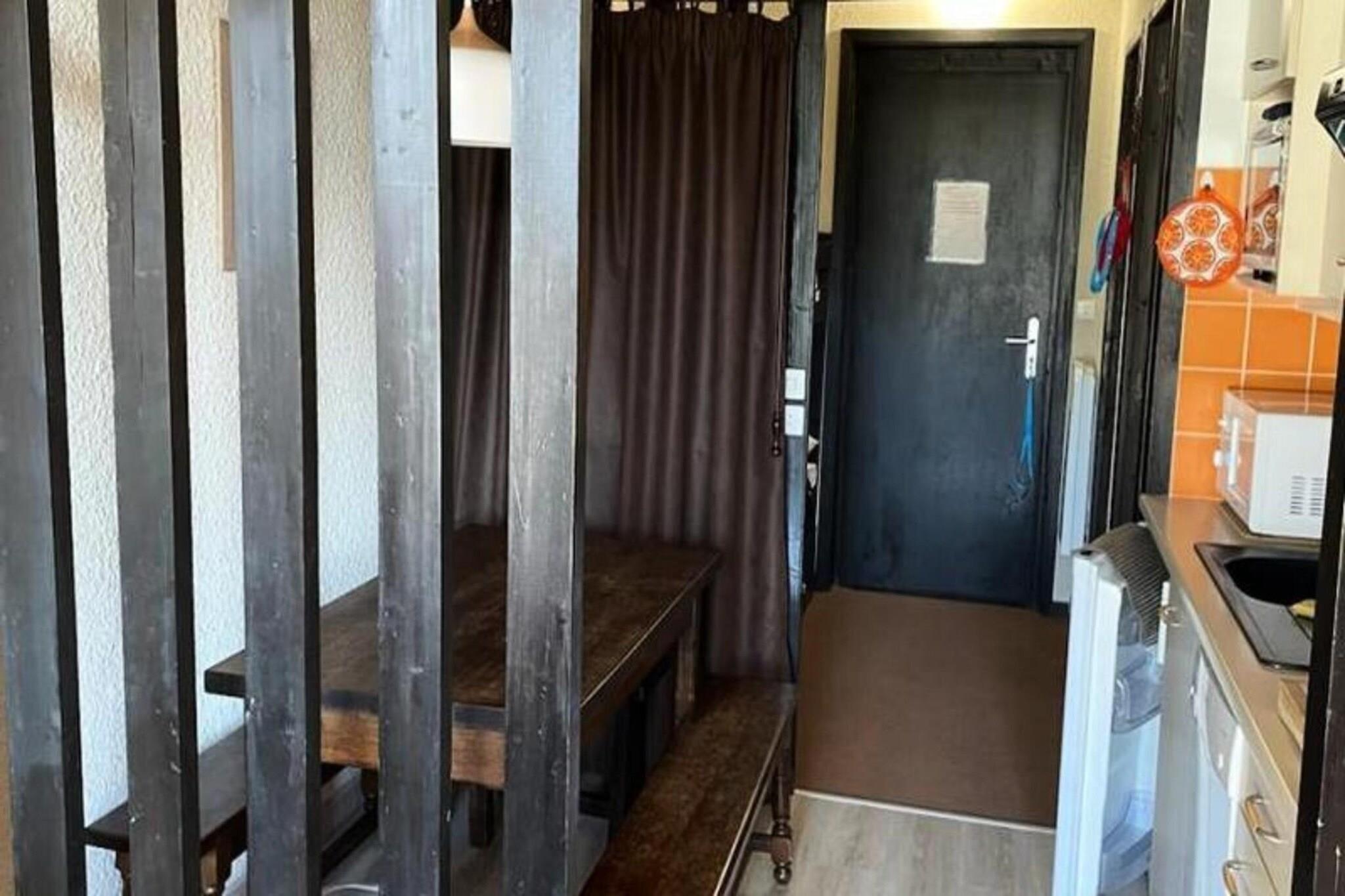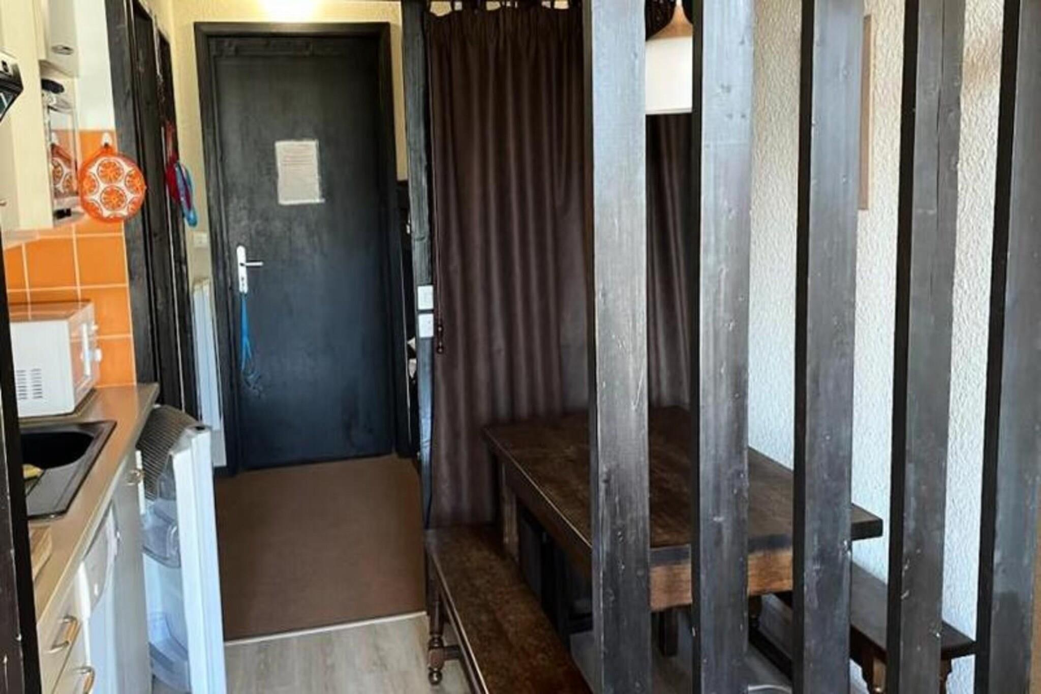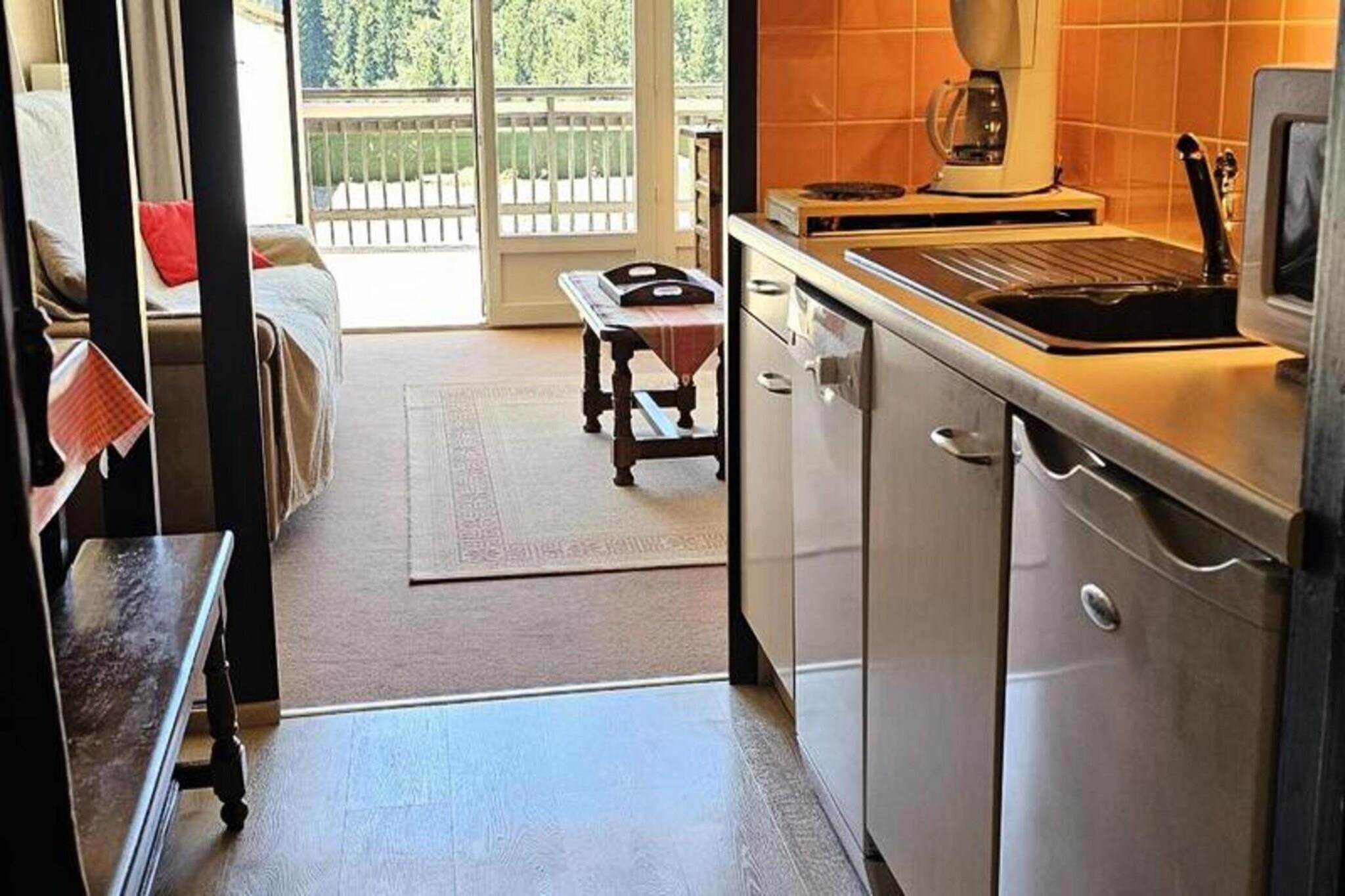 Denne charmerende 30m² hytte studio er designet til at tilbyde et hyggeligt og behageligt ophold. Den kan rumme op til 4 personer, og byder på et kabineområde med to køjesenge og en stue med en 140 cm sovesofa. Et fladskærms-tv er tilgængeligt til underholdning. Lejligheden er ikke-ryger og kæledyrsvenlig, hvilket giver mulighed for et afslappet miljø for gæster og deres kæledyr. En stor sydvendt terrasse giver en betagende udsigt over bjergene, perfekt til at nyde den friske luft og naturlige skønhed. Ejendommen er ideelt placeret for udendørsentusiaster, med butikker, restauranter og skiudstyrsudlejningsbutikker kun få skridt væk. Bygningen ligger ved foden af ??de alpine skiløjper, hvilket gør den perfekt til skiløb i vintermånederne. Derudover er området fantastisk til vandreture, med adskillige stier omkring ejendommen. Lokale faciliteter såsom caféer og markeder er inden for gåafstand, hvilket sikrer bekvemmelighed for alle gæster. En gratis shuttleservice til landsbyen er også tilgængelig for nem udforskning af området. Det fuldt udstyrede køkken har køleskab, ovn, mikroovn, opvaskemaskine og kaffemaskine, hvilket sikrer et problemfrit ophold. Badeværelset har badekar med håndvask, og en vaskemaskine er tilgængelig for gæsternes bekvemmelighed. Ejendommen tilbyder også gratis parkering og trådløs internetadgang i det nærliggende indkøbscenter, hvilket øger komforten og bekvemmeligheden for gæsterne under deres ophold.