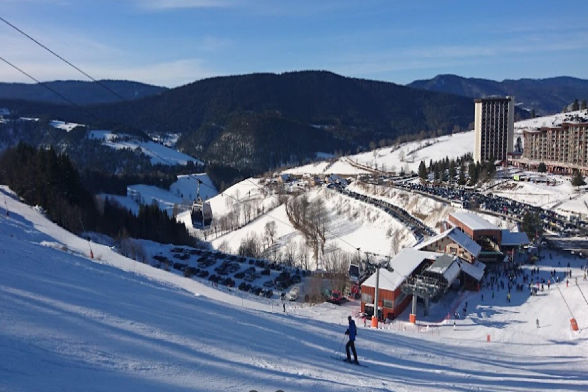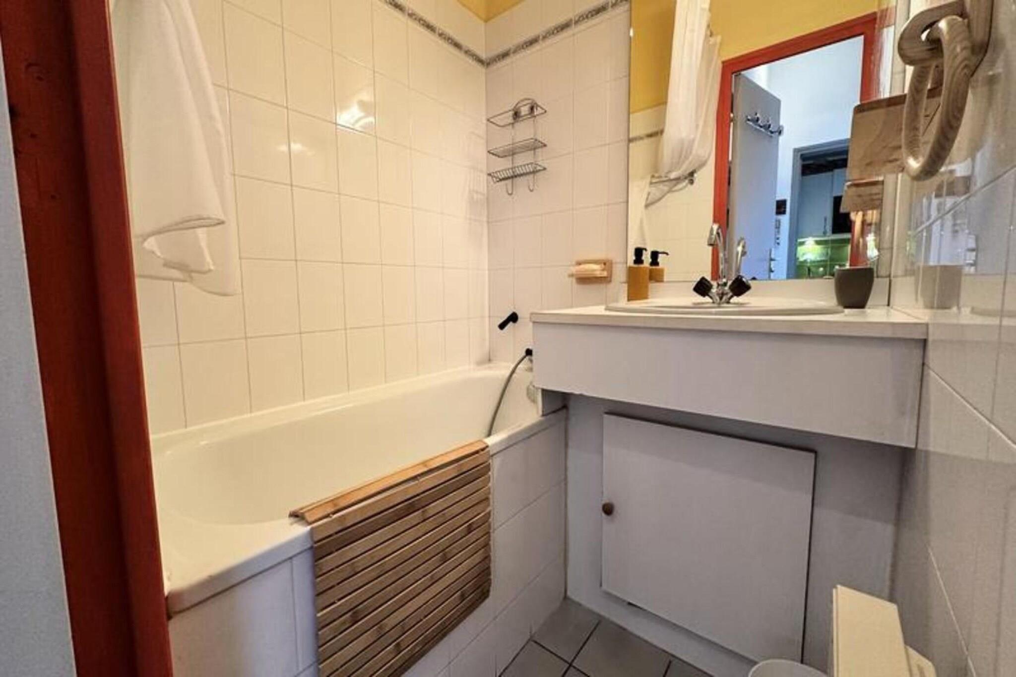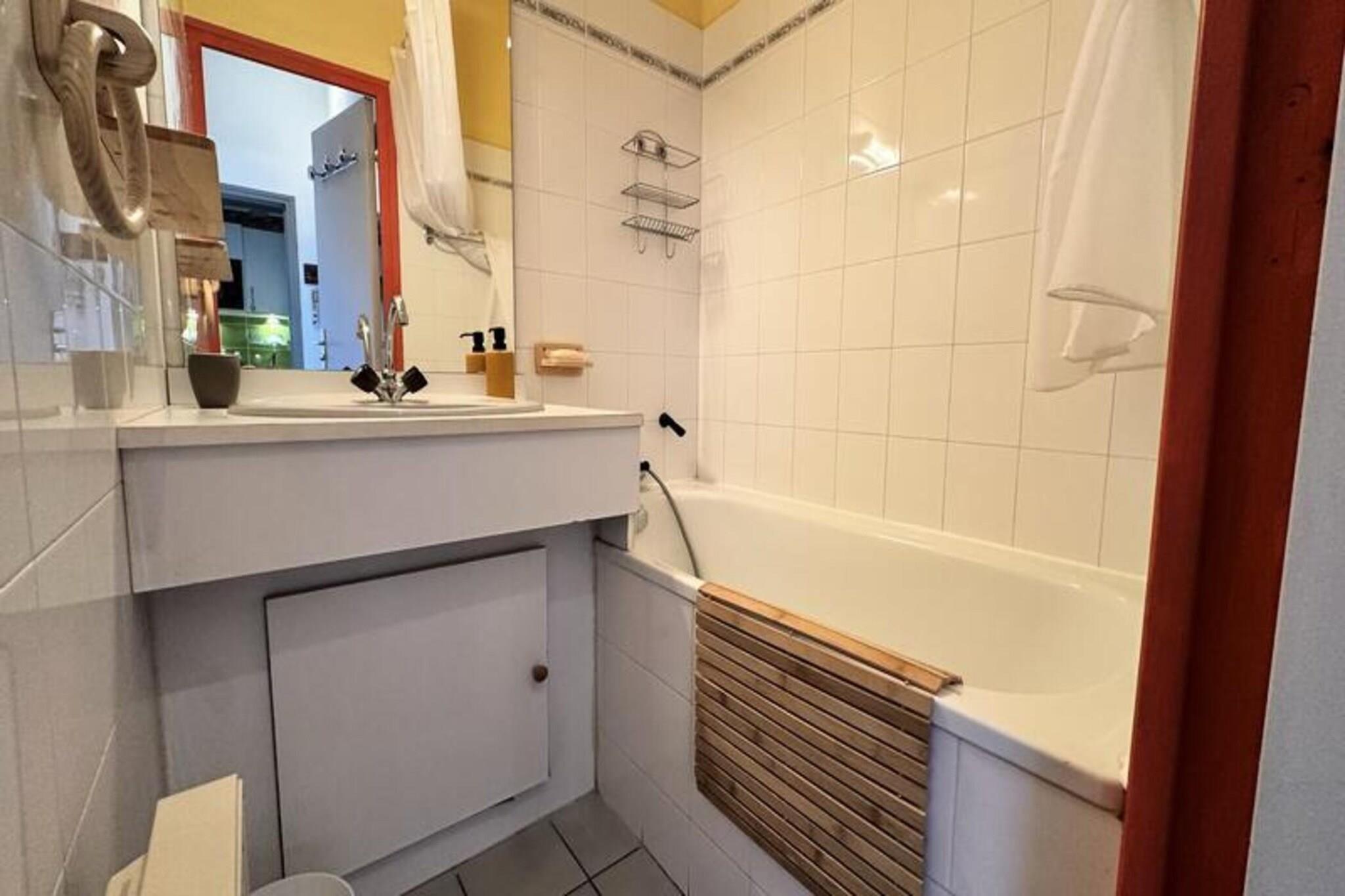 Denne charmerende lejlighed på 27 m², beliggende på første sal i en bolig omgivet af en smuk skovklædt park, tilbyder et indbydende sted for et bjergtilflugtssted. Lejligheden har plads til op til fire gæster med en 140 cm dobbeltseng, en 120 cm sovesofa og en 90 cm mezzaninseng egnet til et barn. Gæsterne kan nyde den solrige sydvendte balkon med en fantastisk udsigt over det omkringliggende landskab. Denne ikke-ryger og kæledyrsfri ejendom sikrer et rent, familievenligt miljø med privat parkering tilgængelig for ekstra bekvemmelighed. Perfekt beliggende kun 550 meter fra landsbyens centrum giver lejligheden nem adgang til en række butikker, restauranter og lokale attraktioner. En gratis shuttle-stop er placeret ved foden af ??boligen, som tilbyder ubesværet transport til skiløjperne, der ligger 4 km væk. Den livlige gågade i nærheden inviterer dig til at udforske dens charmerende caféer og markeder, hvilket gør den til en ideel base for at opdage regionen uanset årstiden. Lejligheden er udstyret med et moderne køkken med køleskab, opvaskemaskine, vaskemaskine, induktionskogeplader og små apparater som en Tassimo-kaffemaskine, brødrister og raclettegrill. Badeværelset har badekar og hårtørrer, mens toilettet er separat for ekstra privatliv. Yderligere muligheder, såsom leje af barneseng og slutrengøring, kan arrangeres for at forbedre dit ophold. Et refunderbart depositum på 400 EURO kræves ved ankomsten, hvilket sikrer en bekymringsfri og afslappende bjergferie.