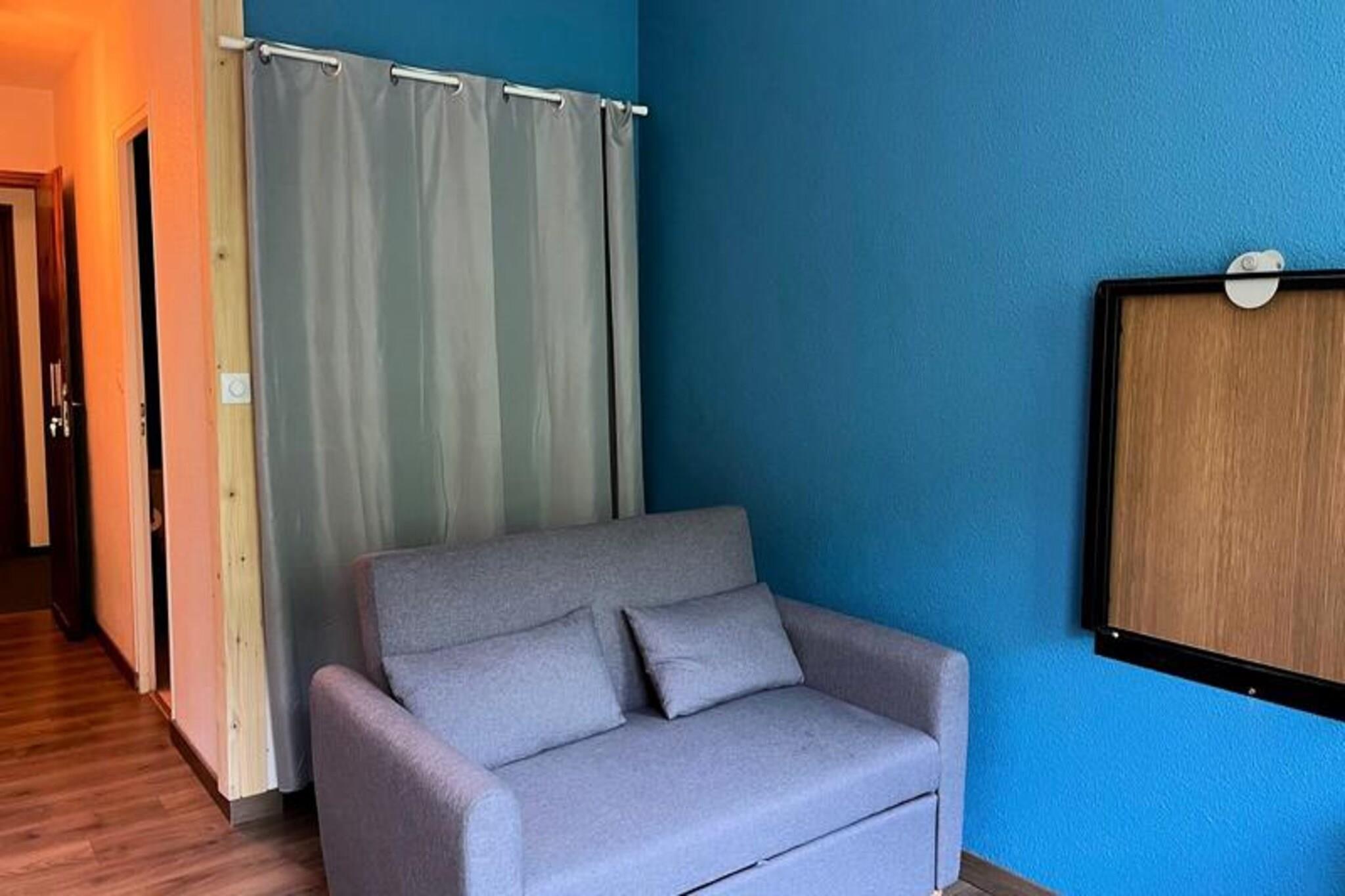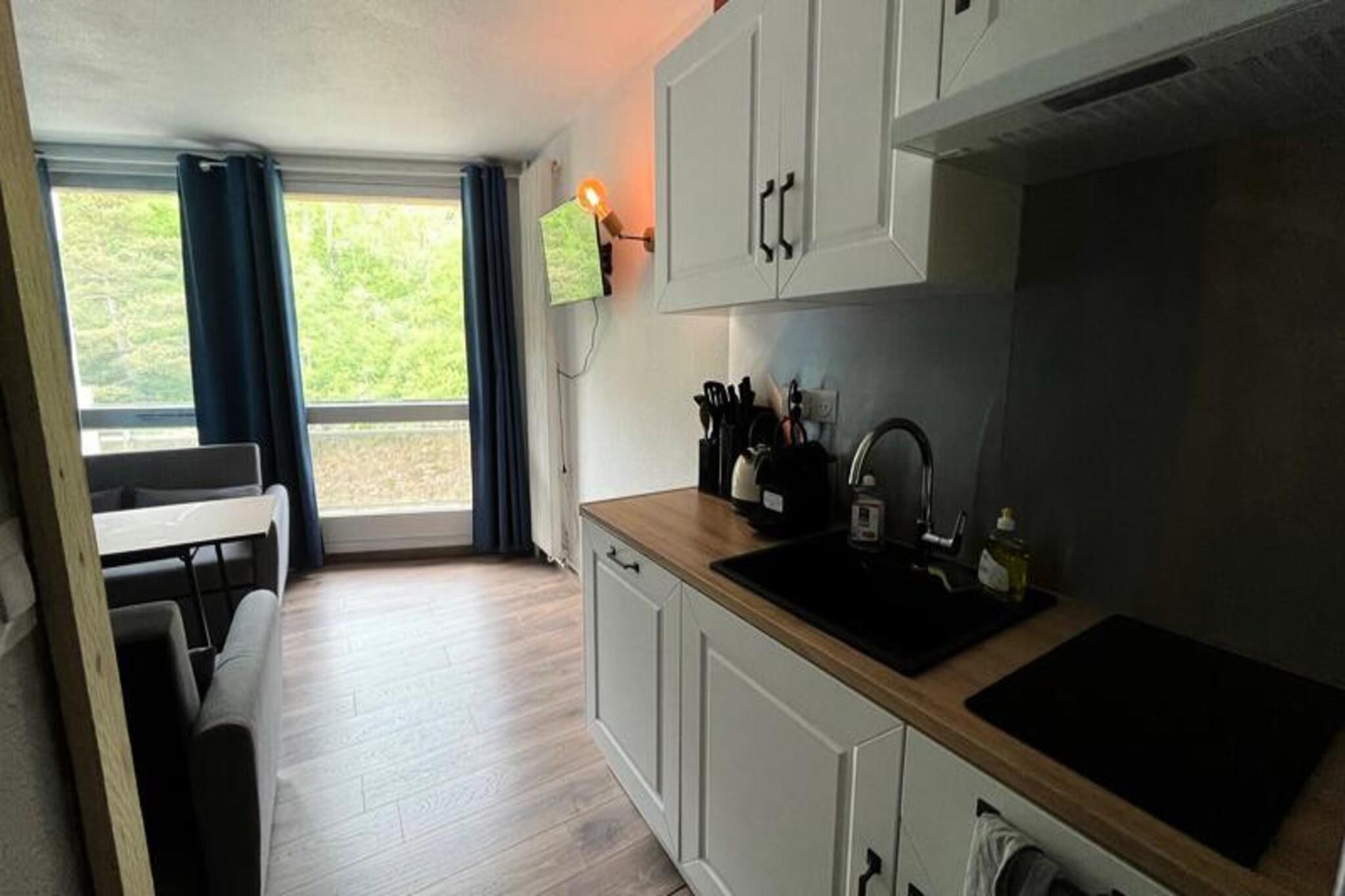 Denne hyggelige studiolejlighed på 15 m² er ideel til en familie eller gruppe af venner, der komfortabelt kan sove op til 4 personer. Det er udstyret med to små sovesofaer, et fjernsyn og en sydvendt balkon med en klar udsigt over de omkringliggende bjerge. Lejligheden ligger på 8. sal i en bygning med elevator, og det er en ikke-ryger enhed. Det giver nem adgang til alle de faciliteter, der er nødvendige for et behageligt ophold. Beliggende ved foden af ??de alpine skiløjper, tilbyder boligen direkte adgang til skiskoler, butikker og restauranter. Om sommeren forvandles skiløjperne til et downhill mountainbikeområde, der passer til alle niveauer, samt en række vandrestier. Lokale butikker, herunder udlejning af sportsudstyr, er kun en kort gåtur væk, hvilket gør det til et ideelt sted for både vinter- og sommeraktiviteter. Studiet har et funktionelt køkkenområde med køleskab/fryser, 2 kogeplader, ovn, mikroovn, Nespresso kaffemaskine og kedel, perfekt til at tilberede måltider under dit ophold. Badeværelset er udstyret med badekar og håndvask, med separat toiletfaciliteter. Derudover kan gæsterne nyde gratis parkering omkring boligen, og der er trådløs internetadgang i indkøbscentret.