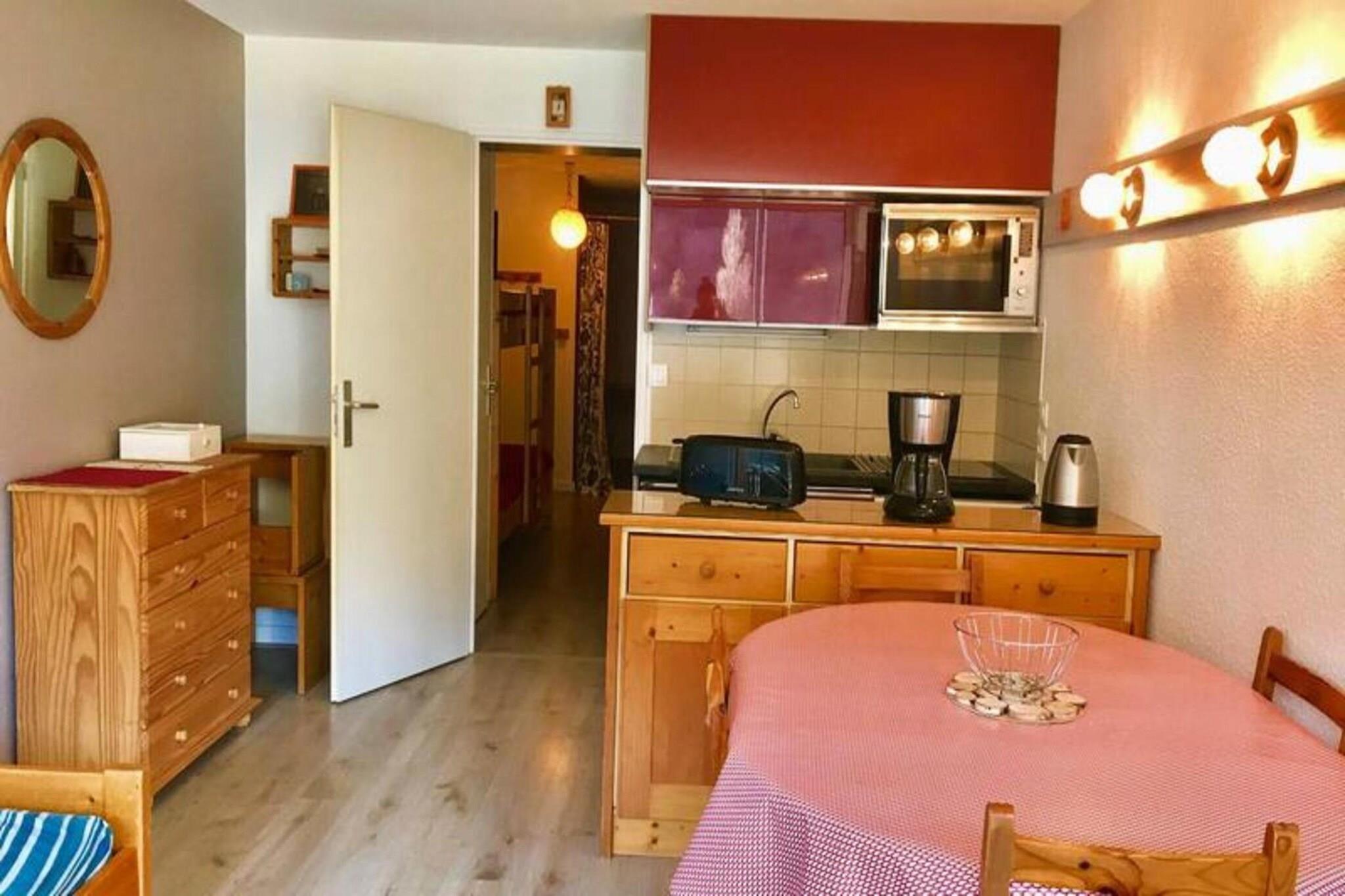 Denne hyggelige studiehytte i stueetagen tilbyder 33 m² plads, ideel til op til seks gæster. Lejligheden har en stue med en enkeltseng og en udtræksseng samt to kabineområder - et med køjesenge og et andet med to enkeltsenge. Udstyret med individuel elektrisk opvarmning og balkon, giver det et varmt og behageligt ophold. Bemærk venligst, at dette er en ikke-ryger ejendom, og slutrengøring er tilgængelig som en valgfri service. En barneseng kan også reserveres på forhånd for ekstra bekvemmelighed. Denne ejendom ligger 1,5 km fra byens centrum og 3 km fra pisterne og tilbyder nem adgang til lokale attraktioner. En gratis shuttle-service er tilgængelig i vintersæsonen for at tage dig til skiløjperne, mens det omkringliggende område byder på smukke vandre- og cykelruter. Boligen omfatter også en kollektiv garage til opbevaring af cykler og slæder, hvilket gør den til en fremragende base for friluftsentusiaster. Nærliggende caféer og butikker giver en smag af lokal kultur og køkken. Studiet indeholder et veludstyret køkken med køleskab, opvaskemaskine, ovn og to kogeplader, perfekt til at tilberede måltider efter en dag med eventyr. Badeværelset har badekar, og der er et separat toilet for ekstra privatliv. Reserveret parkering til boligen sikrer problemfri adgang, hvilket gør denne lejlighed til et fremragende valg for en afslappende bjergferie.