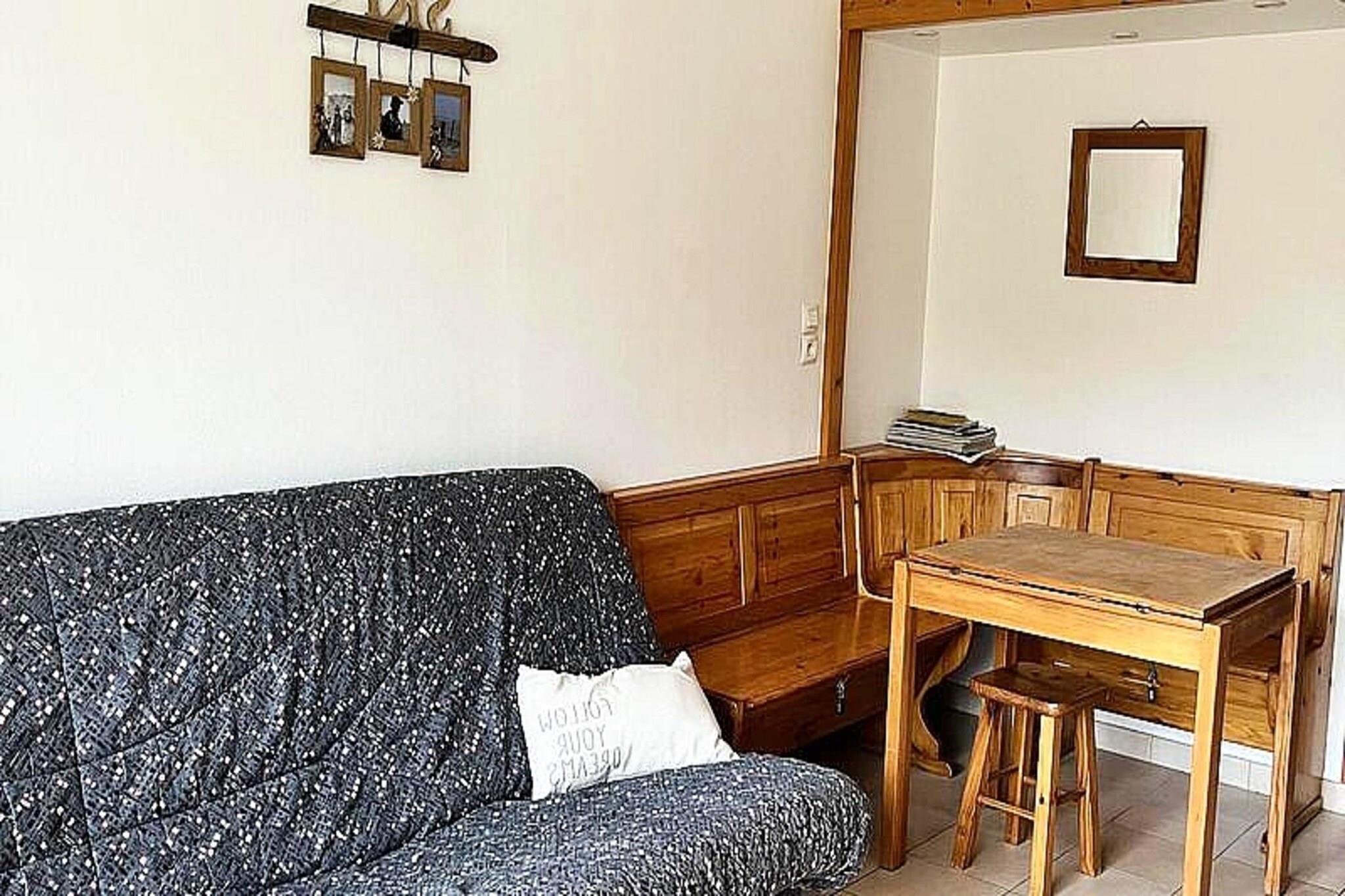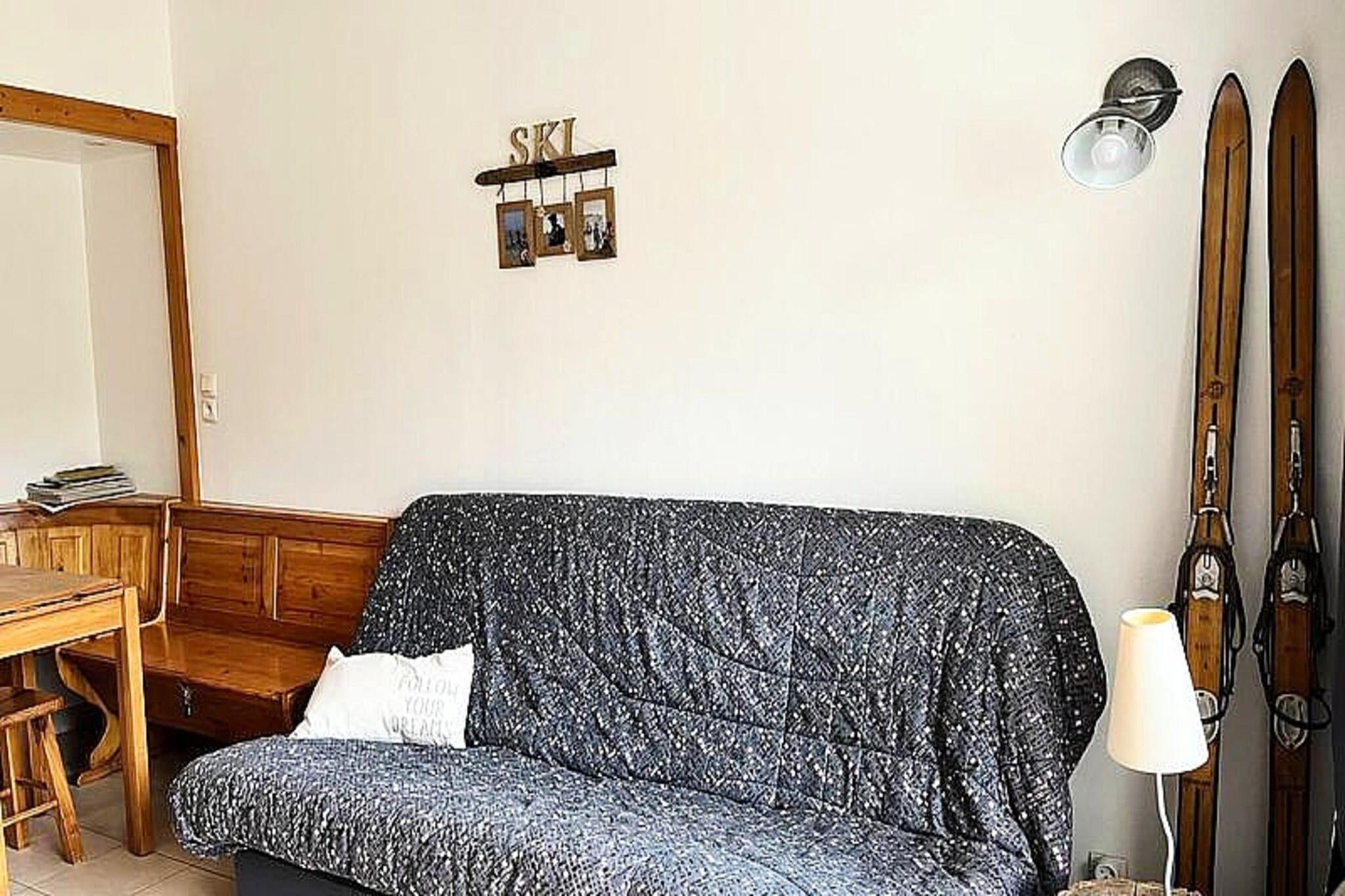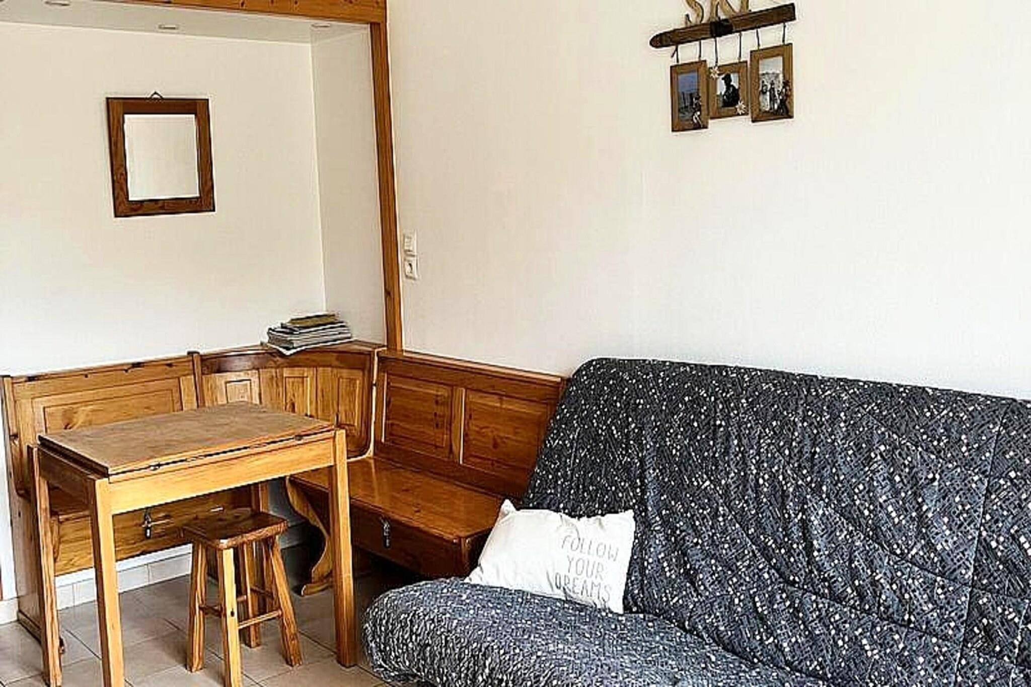 Denne charmerende studiolejlighed, beliggende ved foden af ??alpine skiløjper, tilbyder et hyggeligt ophold for op til 4 gæster. Lejligheden har en sovesofa (140 cm) og køjesenge til en person hver samt en spiseplads med en bænk. Det er ikke kæledyrsvenligt, hvilket sikrer et roligt og fredeligt miljø. Studiet er perfekt til en familie eller en gruppe af venner, der leder efter et behageligt tilflugtssted efter en dag med skiløb eller udendørs eventyr. Gæsterne vil nyde bekvemmeligheden ved butikker, restauranter og en skiskole i bygningskomplekset. Lejligheden ligger også i nærheden af ??forskellige sportsudstyrsudlejningsfirmaer, der henvender sig til både sommer- og vinteraktiviteter. I de varmere måneder forvandles skiløjperne til et downhill mountainbike-område, der passer til alle niveauer. Vandreentusiaster vil finde adskillige stier at udforske, hvilket gør det til en ideel destination hele året rundt. Det fuldt udstyrede køkken omfatter køleskab, vask, opbevaring og apparater såsom en TASSIMO-kaffemaskine, et fonduesæt og en raclette-enhed. Badeværelset er udstyret med badekar og toilet, hvilket giver gæsterne et afslappende og funktionelt rum til at slappe af. Studiet er også udstyret med varme for at sikre komfort i koldere årstider.