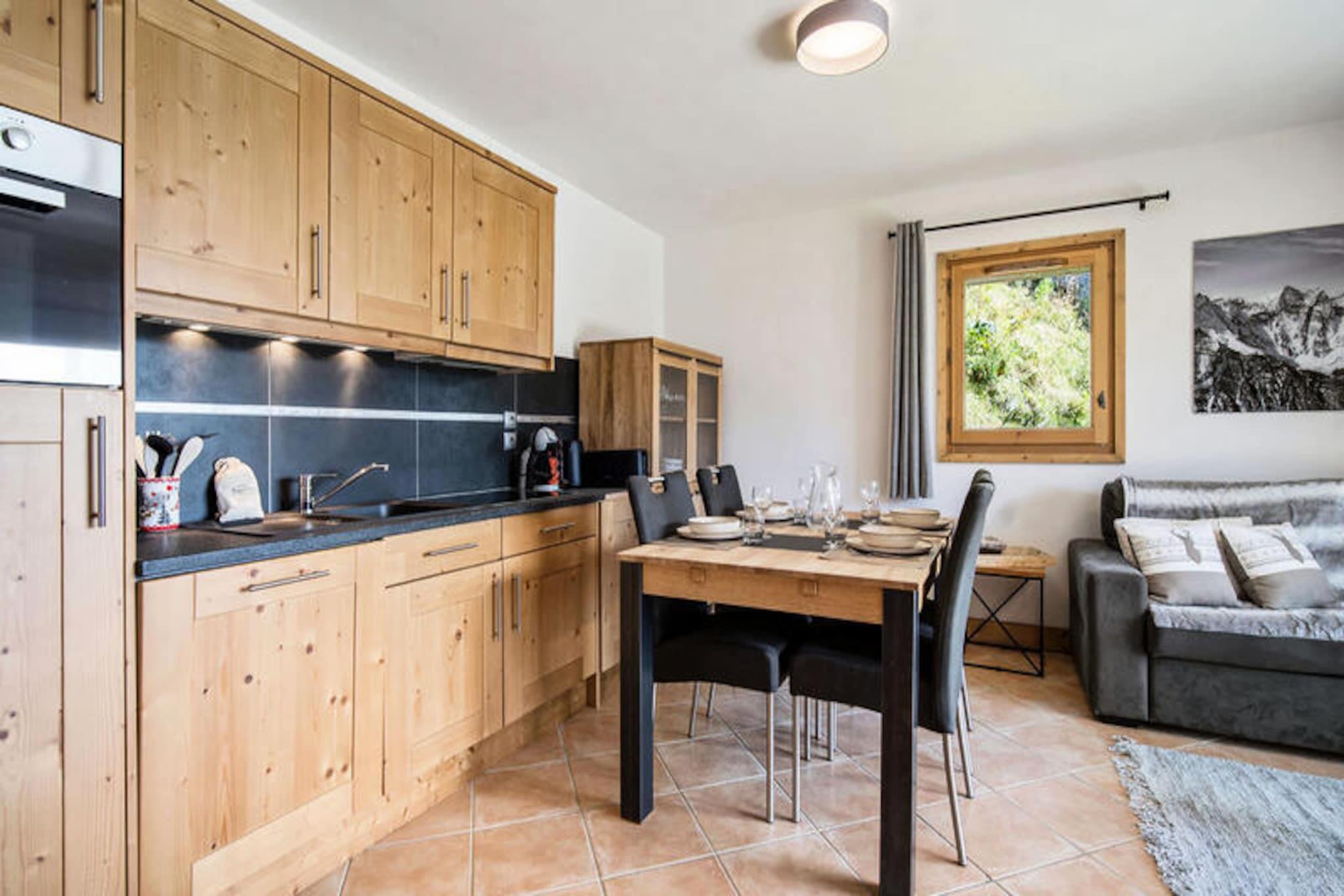 Højt over den charmerende landsby Bisanne 1500 inviterer dette alpine tilflugtssted dig til at opleve magien i de franske alper i enhver sæson. Med sin traditionelle savoyard-arkitektur af træ og sten blander La Perle des Alpes-residensen rustik charme med moderne komfort og tilbyder en betagende udsigt over Mont Blanc fra din private terrasse eller balkon. Uanset om du søger spændingen ved ski-in/ski-out-bekvemmelighed om vinteren eller roen på alpine vandrestier om sommeren, lover denne ejendom en uforglemmelig ferie. Lejligheden er designet til at rumme op til seks gæster og har en gennemtænkt planløsning med en hyggelig stue, et åbent køkken og to indbydende soveværelser. Soveværelset kan prale af en luksuriøs dobbeltseng, mens det andet soveværelse har to enkeltsenge, perfekt til familier eller venner. En sovesofa i opholdsstuen giver ekstra soveplads. Efter en dag med bjergeventyr kan du slappe af i badeværelsets afslappende badekar eller nyde varmen i din smukt indrettede opholdsstue. Moderne faciliteter såsom et skiskab, parkeringskælder og inkluderede tjenester som sengetøj, opredte senge ved ankomst og slutrengøring sikrer et problemfrit ophold. Residensens førsteklasses beliggenhed i skiområdet Espace Diamant betyder, at du kun er få skridt fra uberørte pister og naturskønne stier. Om sommeren kan du udforske de frodige alpine enge og nyde panoramaudsigten over Mont Blanc. Hotellets swimmingpool tilbyder et roligt sted at slappe af, mens du nyder udsigten over bjergene. Med sin kombination af naturlig skønhed, luksuriøse faciliteter og nem adgang til udendørsaktiviteter er denne lejlighed den perfekte base for at skabe varige minder i Alperne.