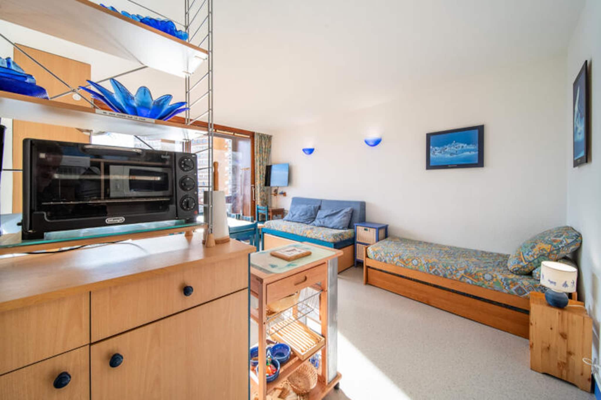 I hjertet af det pulserende Le Corbier-resort tilbyder dette charmerende studie et perfekt tilflugtssted for bjergentusiaster. Forestil dig at vågne op til synet af snedækkede tinder og træde ud på din sydøstvendte balkon for at nyde den friske alpine luft. Beliggende direkte på snefronten, med pisterne og ESF-mødestedet lige på den anden side af gaden, sikrer denne indkvartering, at du altid er i centrum af begivenhederne. Uanset om du er her for at stå på ski eller blot for at slappe af, vil den lyse og hyggelige atmosfære i dette retro-studie få dig til at føle dig hjemme. Det 36 m² store studie er omhyggeligt designet til at rumme op til seks gæster. Indgangsalkoven har køjesenge, perfekt til børn eller unge voksne, mens den rummelige opholdsstue har en sovesofa, der kan laves om til en komfortabel dobbeltseng og to ekstra enkeltsenge. Tekøkkenet er fuldt udstyret med alt, hvad du behøver for et hyggeligt ophold i bjergene, inklusive en raclettegrill til afterski-aftener. Et separat brusebad og toilet giver ekstra bekvemmelighed, mens det store opbevaringsskab sikrer rigelig plads til alle dine ejendele. Træd udenfor, og du vil finde dig selv omgivet af det bedste, Le Corbier har at byde på. Den opvarmede udendørs pool, som er tilgængelig for ugentlige ophold, tilbyder en afslappende måde at slappe af på efter en dag på pisterne. Butikker, restauranter og turistkontoret ligger kun få skridt væk, hvilket gør det nemt at udforske feriestedets livlige atmosfære. For familier er nærheden til ESF-skiskolen et stort plus, mens pisterne i sig selv kun ligger et stenkast væk, hvilket sikrer, at du nemt kan stå på ski ind og ud. Uanset om du søger eventyr på pisterne eller fredelige øjeblikke ved poolen, kombinerer dette studie bekvemmelighed, komfort og betagende bjergudsigt for at skabe en uforglemmelig alpin flugt.
