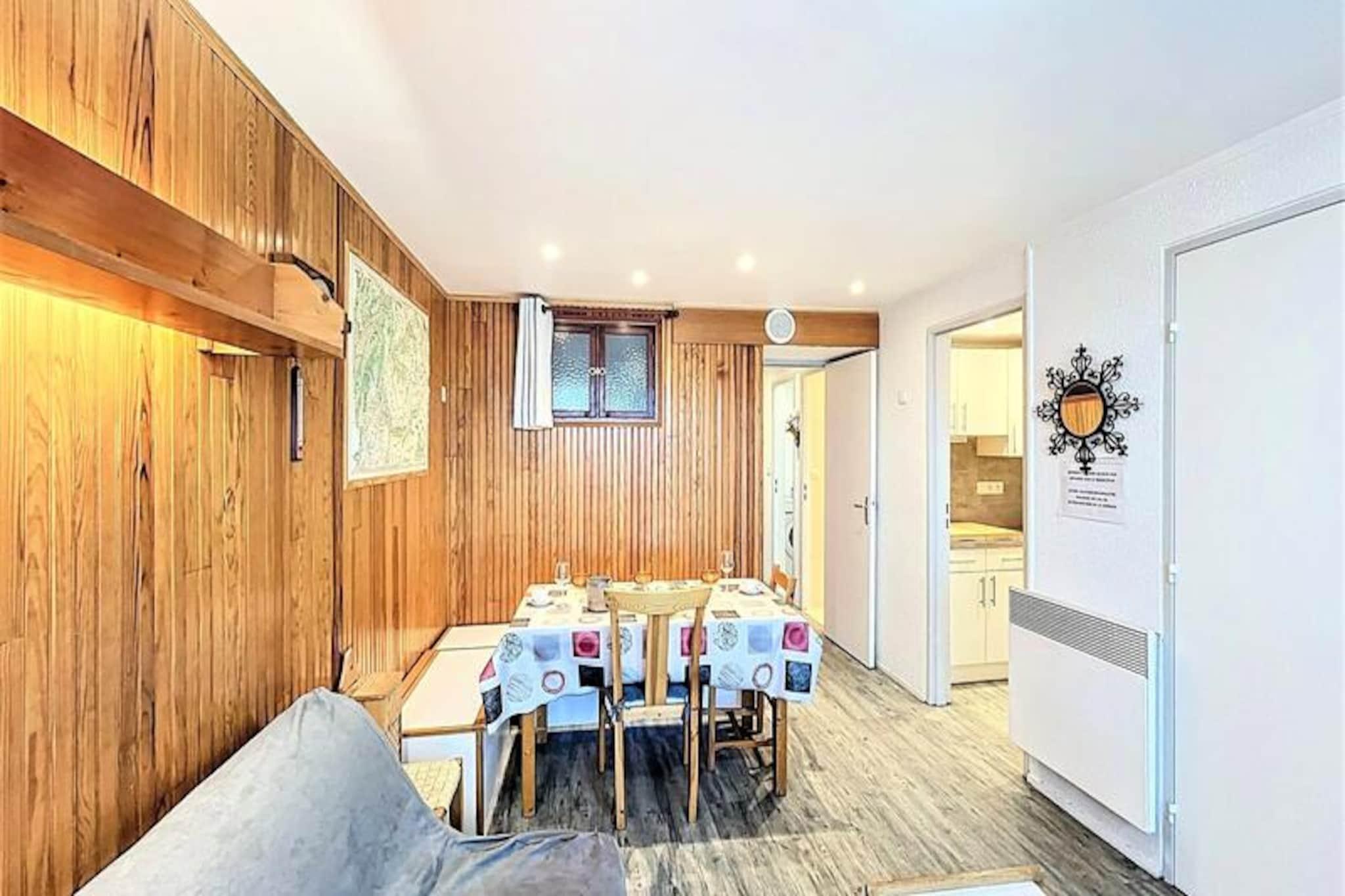 I den rolige, nedre del af resortet tilbyder denne charmerende 2-værelses lejlighed i Résidence Phenix et indbydende tilflugtssted for familier og venner, der søger en mindeværdig alpin ferie. Med sin bekvemme beliggenhed kun 100 meter fra La Voie Lactée-stoleliften og få skridt fra en delikatesseforretning, supermarked og legeplads, er alt hvad du behøver inden for rækkevidde. Den gratis shuttlebus sikrer problemfri adgang til det øvre resort og skiskolen, hvilket gør den til et ideelt valg for både begyndere og erfarne skiløbere.\n\nLejligheden, der for nylig er renoveret og har fået 2 stjerner af Ministeriet for Boligudvikling, har en gennemtænkt planløsning designet til komfort og praktisk anvendelighed. Den er på 37 m² og har plads til op til seks gæster med en hyggelig sovealkove med køjesenge, et soveværelse med en dobbeltseng og en stue med en dobbelt sovesofa. Det fuldt udstyrede tekøkken inkluderer et induktionskogeplade med 4 blus, opvaskemaskine, mikrobølgeovn og ovn, perfekt til at tilberede solide måltider efter en dag på pisterne. Moderne bekvemmeligheder såsom vaskemaskine/tørretumbler, elektriske persienner og et renoveret badeværelse med bruseniche bidrager til bekvemmeligheden.\n\nGæsterne kan nyde gratis adgang til den opvarmede swimmingpool, en dejlig måde at slappe af på efter udendørs eventyr. Ejendommen tilbyder også et skirum, udendørs parkering og tilgængelighed for kørestolsbrugere, hvilket sikrer et problemfrit ophold for alle. Kæledyr er velkomne under visse betingelser, hvilket gør det til en god mulighed for hele familien.\n\nUanset om du er her for at grave dig gennem uberørt sne, udforske det pulserende feriested eller slappe af i de rolige omgivelser, er denne lejlighed den perfekte base for din alpine flugt. Med sin blanding af komfort, bekvemmelighed og nærhed til vigtige faciliteter lover den en uforglemmelig ferie i hjertet af de franske alper.