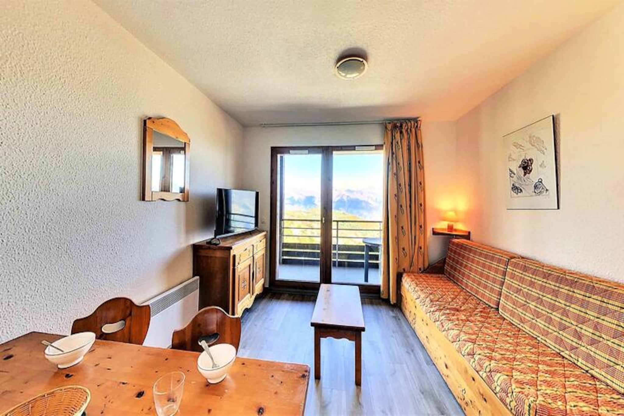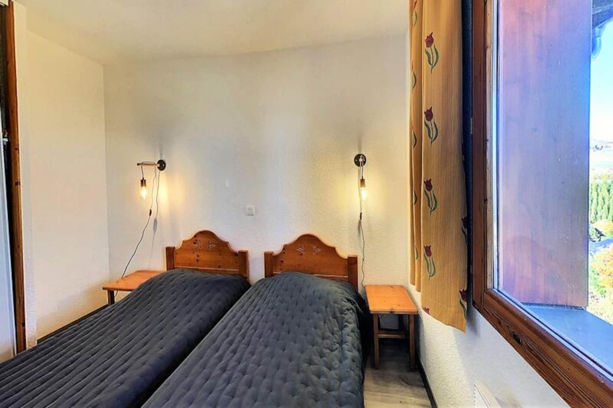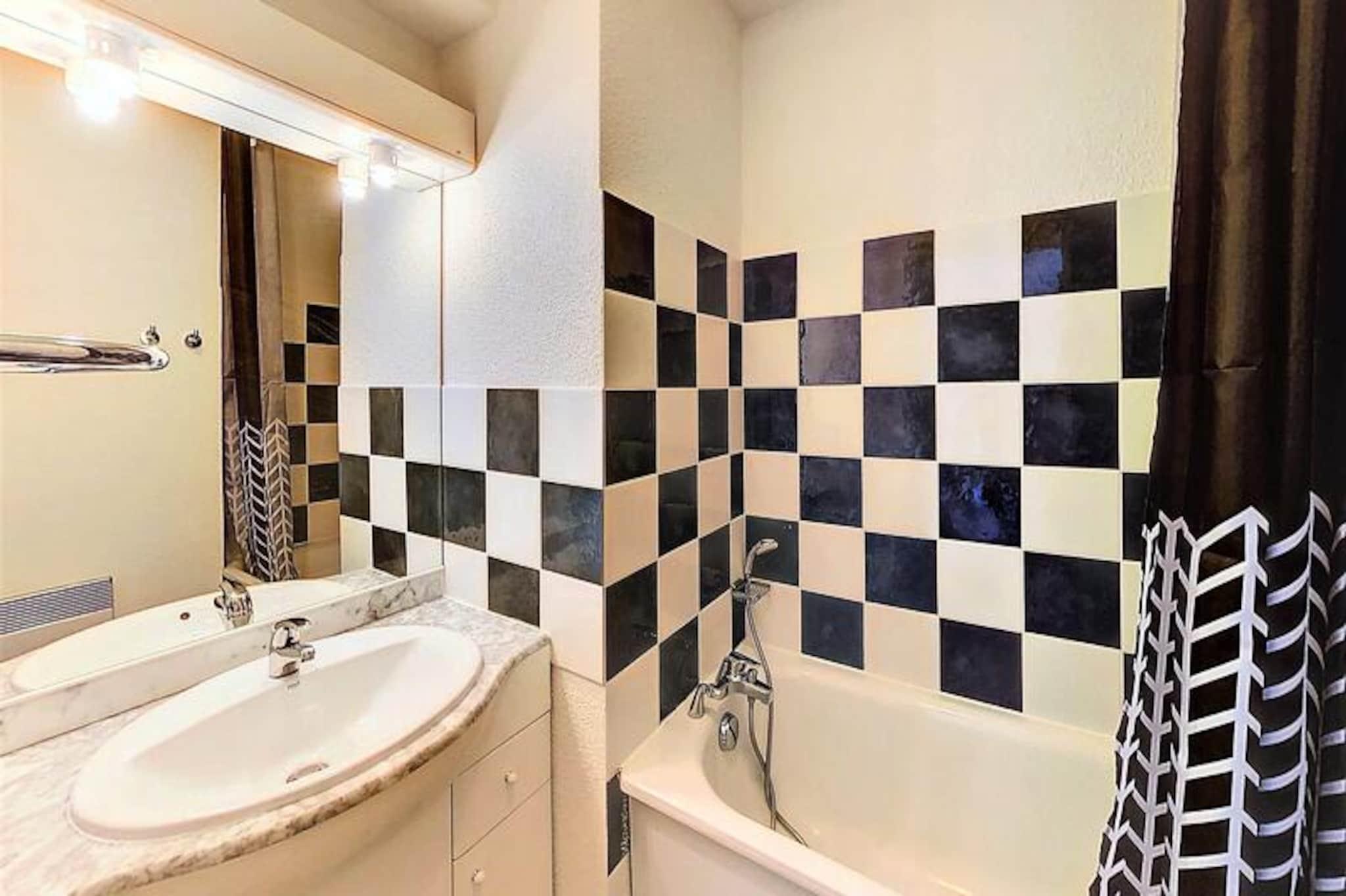 Højt over det travle feriested tilbyder denne charmerende lejlighed en rolig alpin oase med betagende udsigt over dalen. Beliggende i den fredelige Les Pistes A-residens, kun 50 meter fra de nærmeste pister og stolelift, er denne ejendom et paradis for skientusiaster. Med ski-in/ski-out adgang tilgængelig, når sneforholdene tillader det, begynder dine bjergeventyr lige uden for døren. Den rolige beliggenhed kombineret med bekvemmeligheden af ??nærliggende butikker og restauranter kun 100 meter væk sikrer en perfekt balance mellem ro og tilgængelighed. Lejligheden er designet til op til fire gæster og er på 31 m². Den har en hyggelig stue med sovesofa, et tv og en privat balkon, hvor du kan nyde den fantastiske bjergudsigt. Det veludstyrede tekøkken inkluderer keramisk kogeplade, mikrobølgeovn, køleskab, opvaskemaskine og kaffemaskine, hvilket gør det nemt at tilberede måltider efter en dag på pisterne. Et separat soveværelse med to enkeltsenge og rigelig opbevaringsplads sikrer afslappende nætter, mens det moderne badeværelse og separat toilet bidrager til komforten. For familier er der en barneseng tilgængelig, og lejligheden er omhyggeligt udstyret med dyner for at holde dig varm under dit ophold. Gæsterne har også gratis adgang til resortets opvarmede swimmingpool, perfekt til afslapning efter en dag med skiløb eller udforskning. Ejendommen tilbyder praktiske faciliteter såsom elevatorer, et skirum og parkering for foden af ??bygningen. En gratis shuttle-service gør det nemt at udforske resortet, og skiskolen ligger kun 250 meter væk, hvilket gør dette til et ideelt valg for familier og begyndere. Uanset om du er her for at grave dig gennem frisk puddersne, slappe af i de fredelige bjergomgivelser eller nyde den pulserende resortatmosfære, er denne lejlighed den perfekte base for en uforglemmelig alpin ferie. Lad charmen ved de franske alper fortrylle dig, mens du skaber varige minder i dette hyggelige tilflugtssted.