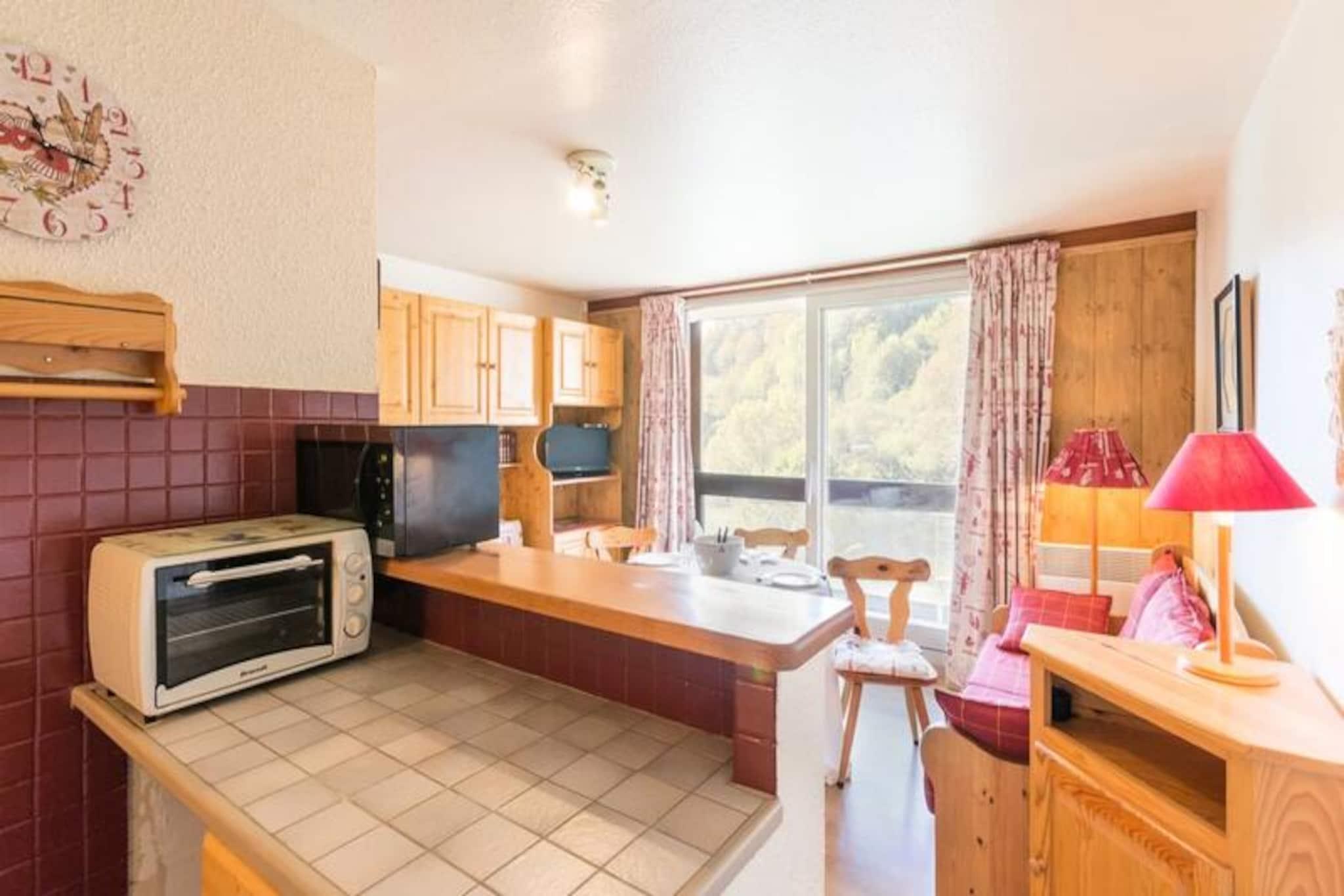 Forestil dig at vågne op til synet af solbeskinnede pister og træde direkte ud på sneen lige uden for døren. Denne charmerende studiolejlighed, beliggende i den eftertragtede Vostok Residence, tilbyder et hyggeligt alpint tilflugtssted med uovertruffen ski-in/ski-out adgang. Den perfekt beliggende altan mod syd på 4. sal tilbyder en betagende udsigt over pisterne, hvilket gør den til et ideelt valg for par eller små familier, der søger en mindeværdig bjergferie. Indenfor er det 31 m² store studio omhyggeligt designet til at rumme op til 5 gæster. Den varme opholdsstue med fyrretræsmøbler har en komfortabel dobbelt sovesofa, en enkeltseng og en alkove med forhæng og en dobbeltseng for ekstra privatliv. Et fladskærms-tv og rigelig opbevaringsplads sikrer et praktisk, men indbydende sted at slappe af efter en dag på pisterne. Tekøkkenet er udstyret med elektriske kogeplader, mikrobølgeovn og miniovn, perfekt til at tilberede solide måltider. Et moderne badeværelse med vaskemaskine og separat toilet bidrager til bekvemmeligheden. Gæsterne kan nyde gratis adgang til boligens opvarmede swimmingpool, en dejlig måde at slappe af på efter skiløb. Ejendommen har også et skirum i stueetagen, hvilket sikrer problemfri opbevaring. I nærheden finder du et minimarked, restauranter, en legeplads og ESF-skiskolen, hvilket gør denne beliggenhed utrolig familievenlig. Uanset om du er her for spændingen ved skiløb eller den rolige alpine atmosfære, tilbyder dette studie komfort, bekvemmelighed og uforglemmelig udsigt. Book dit ophold og oplev magien i de franske alper på første hånd.