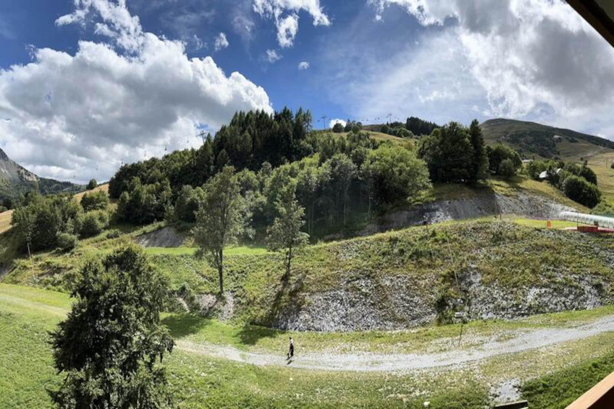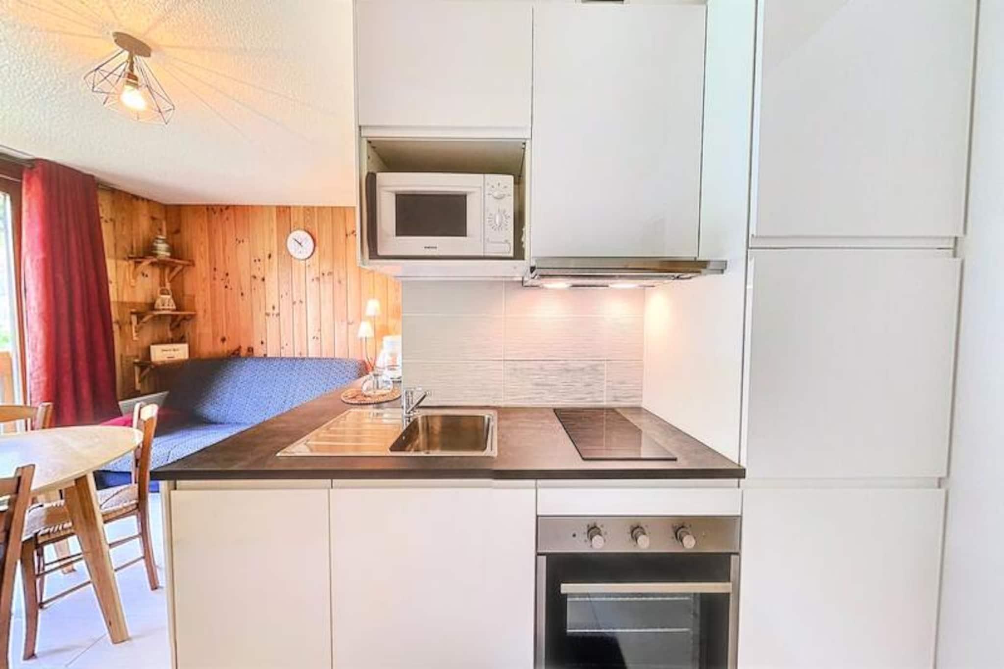 Højt over den charmerende alpelandsby Le Corbier tilbyder dette nyrenoverede studie et varmt og indbydende tilflugtssted til din næste bjergferie. Med sin sydvendte balkon med udsigt over pisterne vågner du op til en betagende udsigt og eventyrlyst lige uden for døren. Uanset om du er her for at grave dig gennem frisk sne eller nyde den friske bjergluft om sommeren, placerer denne bolig dig i hjertet af det hele. Indenfor er det 31 m² store studie omhyggeligt designet til at maksimere komfort og funktionalitet. Den lukkede alkove har hyggelige køjesenge, mens opholdsstuen har en komfortabel sovesofa og et fladskærms-tv, perfekt til at slappe af efter en aktiv dag. Tekøkkenet er fuldt udstyret med moderne apparater, herunder induktionskogeplade, ovn, mikrobølgeovn og endda en raclettegrill for en ægte smag af Alperne. Et rummeligt badeværelse med badekar og separat toilet bidrager til bekvemmeligheden, og der er dyner til en god nats søvn. Træd udenfor, og du er kun få øjeblikke fra pisterne, ESF-skiskolen og en række lokale faciliteter, herunder et minimarked, restauranter og en børnepasning. Efter en dag med skiløb eller vandreture kan du tage en dukkert i den opvarmede swimmingpool, som er gratis for gæster over tre år. For ekstra bekvemmelighed er der et skiskab i stueetagen, og Wi-Fi-hotspots kan lejes på det nærliggende turistkontor. Uanset om du planlægger en familieferie, en romantisk flugt eller et soloeventyr, tilbyder dette studie den perfekte blanding af komfort, bekvemmelighed og alpin charme. Book dit ophold og skab uforglemmelige minder i hjertet af de franske alper.