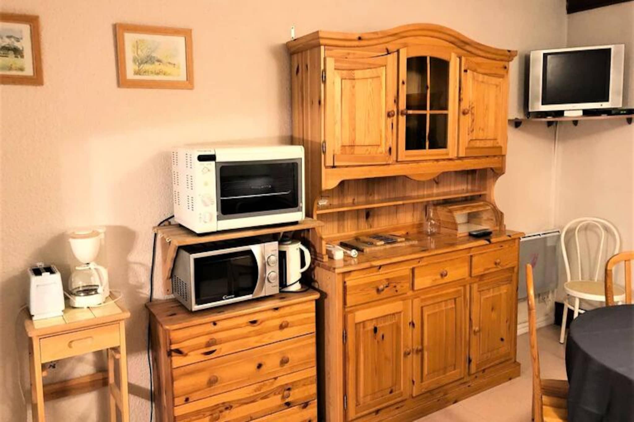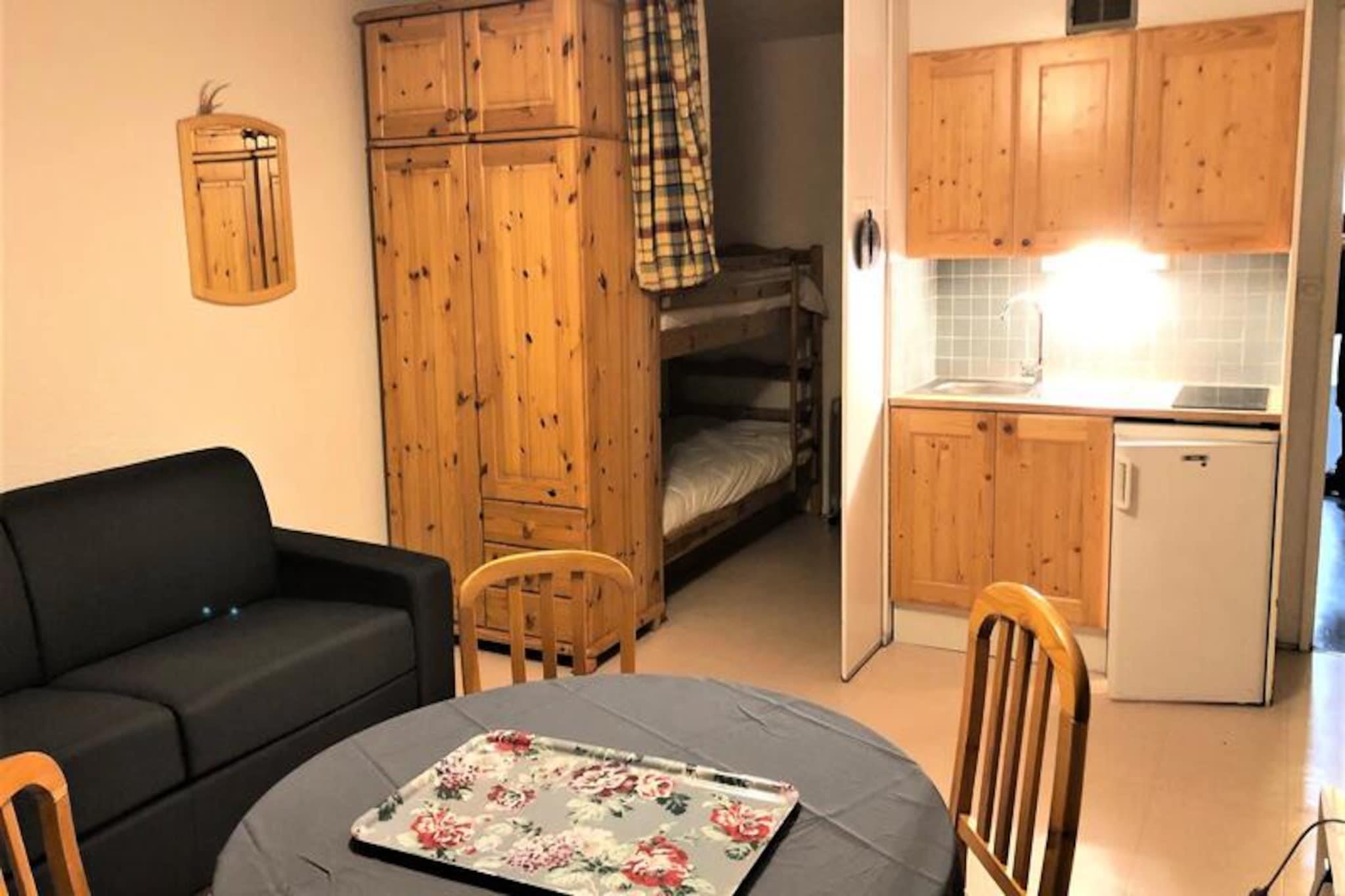 Forestil dig at vågne op til synet af snedækkede pister lige uden for dit vindue, klar til at begive dig ud på en dag med alpint eventyr. Denne charmerende studiolejlighed, beliggende i Vostok Residence, tilbyder et hyggeligt tilflugtssted for op til fire gæster med direkte adgang til ski-in/ski-out. Perfekt placeret ved foden af ??pisterne sikrer den, at du aldrig er langt fra begivenhedernes centrum, uanset om det er at stå på ski ned ad uberørte løjper eller udforske de livlige faciliteter i nærheden. Familier vil sætte pris på bekvemmeligheden ved at have ESF-skiskolen, en børnepasning og en legeplads lige ved hånden, mens selve boligen kan prale af gennemtænkte funktioner som en opvarmet swimmingpool og skibokse. Indenfor er det 31 m² store rum omhyggeligt designet til komfort og funktionalitet. Stuen, der er udsmykket med varme fyrretræsmøbler, har en dobbelt sovesofa, et tv og et stort karnapvindue, der indrammer en fantastisk udsigt over pisterne. En separat alkove med køjesenge giver ekstra sovepladser, hvilket gør den ideel til familier eller små grupper. Tekøkkenet er fuldt udstyret med keramisk kogeplade, mikrobølgeovn og ovn, perfekt til at tilberede solide måltider efter en dag på pisterne. Moderne bekvemmeligheder som vaskemaskine og rigelig opbevaringsplads bidrager til dit opholds bekvemmelighed. Ud over boligen finder du et minimarked, restauranter og en cateringvirksomhed i gåafstand, der sikrer, at alle dine behov bliver opfyldt. For dem, der søger afslapning, tilbyder den opvarmede swimmingpool en rolig tilflugtssted, mens den pulserende snefront inviterer dig til at fordybe dig i den livlige alpine atmosfære. Uanset om du er her for at snowboarde i frisk puddersne eller blot nyde den fredfyldte udsigt over bjergene, er denne studiolejlighed den perfekte base for en mindeværdig ferie i de franske alper.