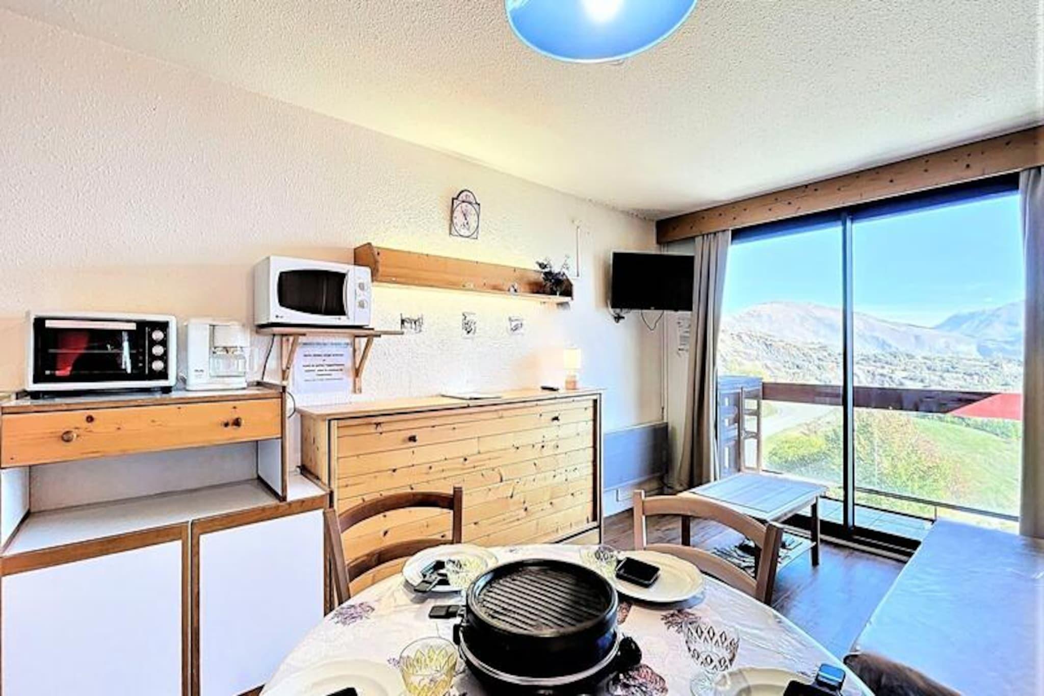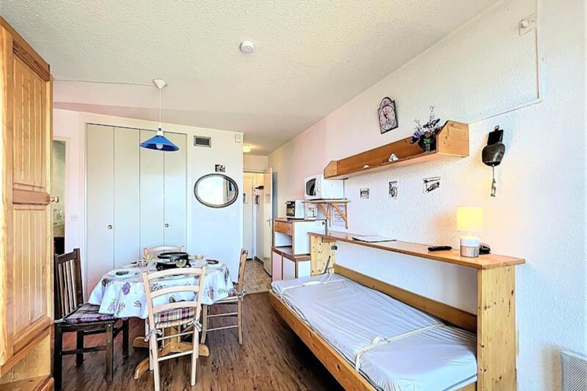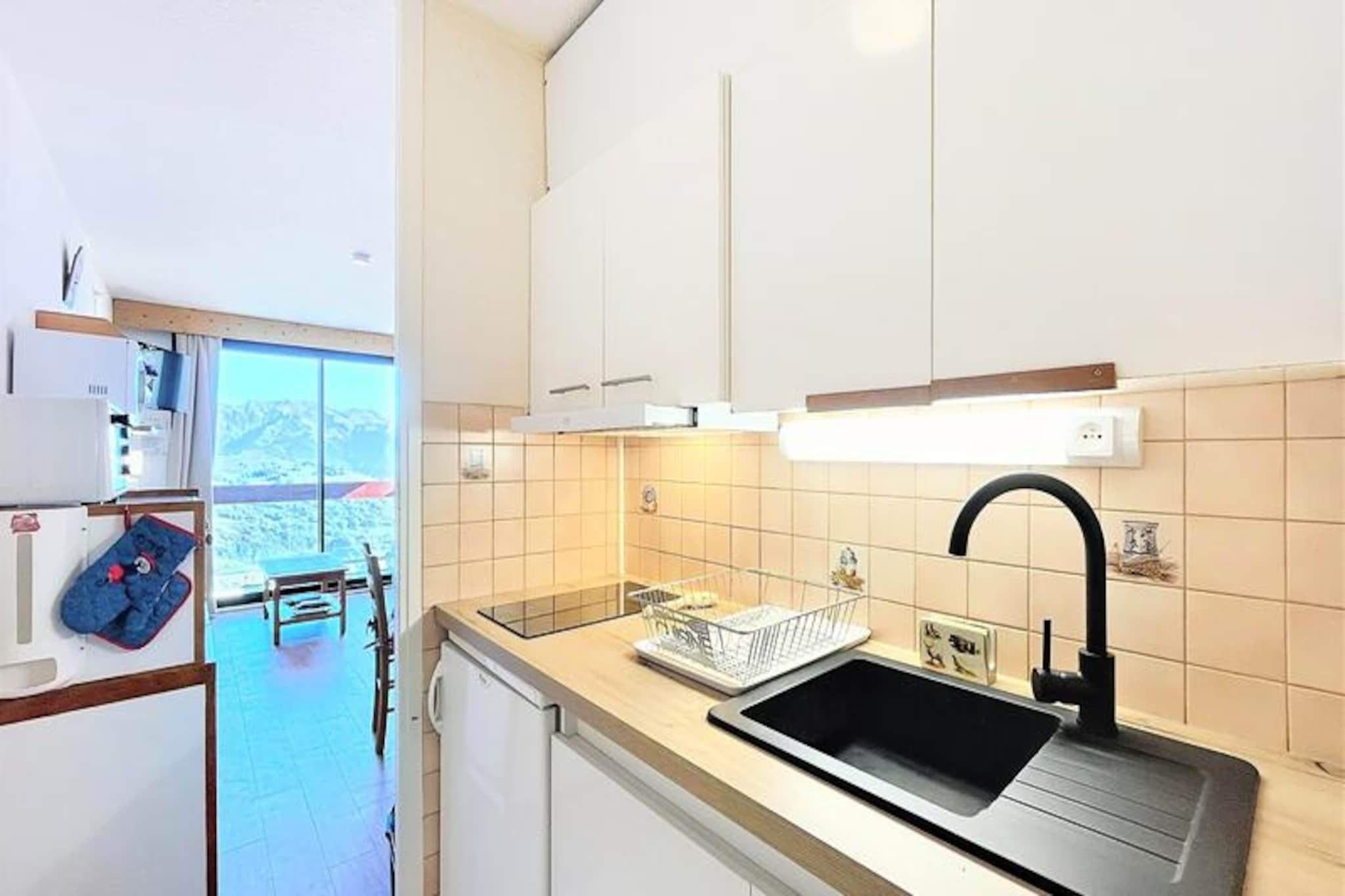 Højt over den fredfyldte Tarentaise-dal tilbyder denne charmerende alpine lejlighed et hyggeligt tilflugtssted for dem, der søger den perfekte ski-in/ski-out-oplevelse. Beliggende i den rolige LUNIK Residence, kun få skridt fra La Voie Lactée-stoleliften, hvilket sikrer ubesværet adgang til de uberørte skråninger i de franske alper. Fra den østvendte balkon kan gæsterne nyde en betagende udsigt over dalen og de omkringliggende tinder, hvilket gør hver morgen til en malerisk start på dagen. Indenfor er den velholdte 32 m² store lejlighed omhyggeligt designet til komfort og bekvemmelighed. Stuen har en dobbelt sovesofa med opbevaring, en enkeltseng, der kan foldes ned, og et fjernsyn, hvilket skaber et varmt og indbydende rum at slappe af i efter en dag på pisterne. Det fuldt udstyrede tekøkken har keramisk kogeplade, mikrobølgeovn, miniovn og essentielle apparater som kaffemaskine og brødrister, perfekt til at tilberede solide måltider. Soveværelset kan prale af en komfortabel dobbeltseng, mens det nyrenoverede badeværelse tilbyder en luksuriøs bruseniche. Et separat toilet bidrager til rummets praktiske anvendelighed. Gæsterne vil sætte pris på de ekstra faciliteter, herunder et skirum, udendørs parkering og adgang til en opvarmet swimmingpool - ideelt til afslappende afterskiing. Ejendommen har også seks elevatorer og en vicevært, der sikrer et problemfrit ophold. Bekvemt placeret i nærheden af ??en delikatesseforretning, et supermarked og et gratis shuttlebusstoppested, er alt hvad du behøver inden for rækkevidde. Uanset om du er her for at grave dig gennem frisk puddersne, udforske det pulserende feriested eller blot nyde den alpine charme, er denne lejlighed den perfekte base for en uforglemmelig bjergferie.