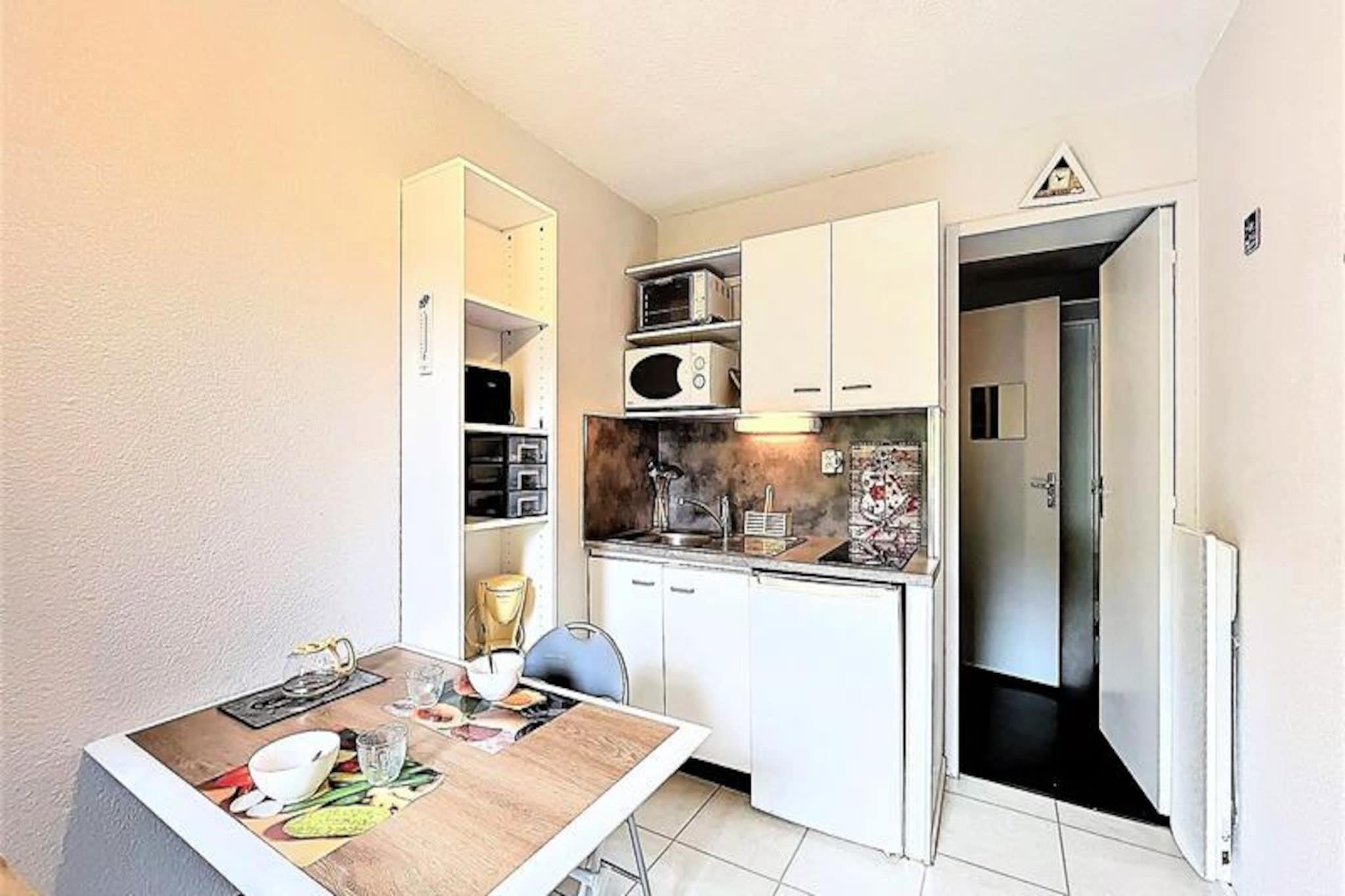 Højt over den charmerende alpelandsby Le Corbier tilbyder denne hyggelige studiolejlighed en intim oase for to, omgivet af de franske alpers betagende skønhed. Med sin sydvendte balkon vågner du op til en fantastisk udsigt over pisterne, perfekt til at nyde den friske bjergluft, inden du tager på en dag med eventyr. Uanset om du er her for spændingen ved skiløb eller roen i de alpine landskaber, placerer denne bolig dig i hjertet af det hele. Indenfor er det 14 m² store studio omhyggeligt designet til at maksimere komfort og funktionalitet. Tekøkkenet er fuldt udstyret med moderne apparater, herunder en keramisk kogeplade, miniovn, mikrobølgeovn og endda en raclettegrill for en ægte smag af regionen. Opholdsstuen har en komfortabel sovesofa og et fladskærms-tv, hvilket skaber et varmt og indbydende rum at slappe af i efter en dag på pisterne. Gæsterne har også adgang til en opvarmet swimmingpool, hvilket tilføjer et strejf af luksus til dit ophold. Beliggenheden er uovertruffen og tilbyder ski-in/ski-out bekvemmelighed og nærhed til vigtige faciliteter. Kun få skridt væk finder du ESF-skiskolen, dagpleje, restauranter og et minimarked. Et skirum i stueetagen sikrer, at dit udstyr altid er klar til det næste eventyr. Om sommeren forvandles området til et paradis for vandrere og naturelskere med stier, der fører til panoramaudsigter og fredfyldte alpine enge. Uanset om du søger en romantisk ferie eller et fredeligt tilflugtssted i bjergene, lover denne studiolejlighed i Le Corbier en uforglemmelig alpin oplevelse, der blander komfort, bekvemmelighed og magien i de franske alper.