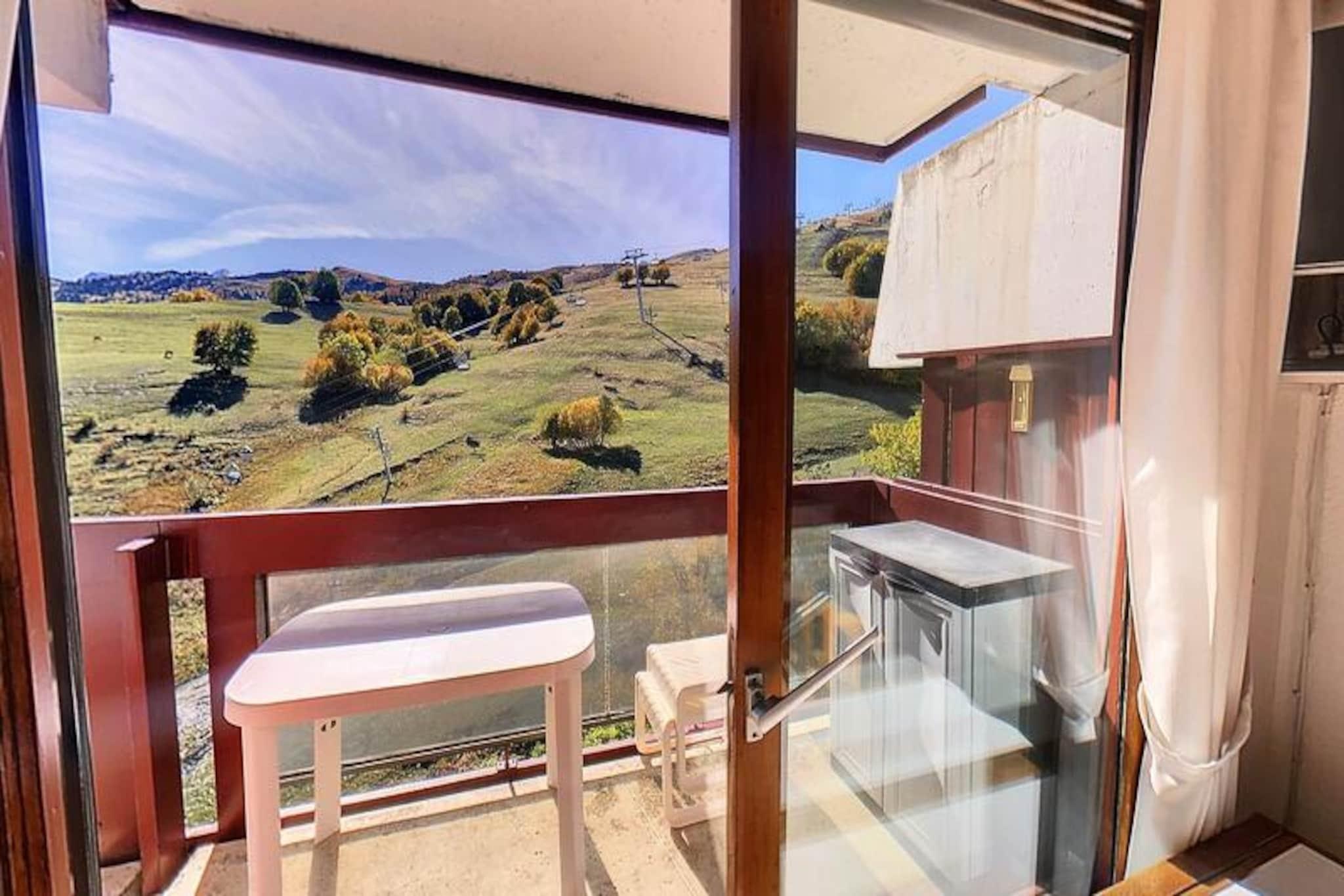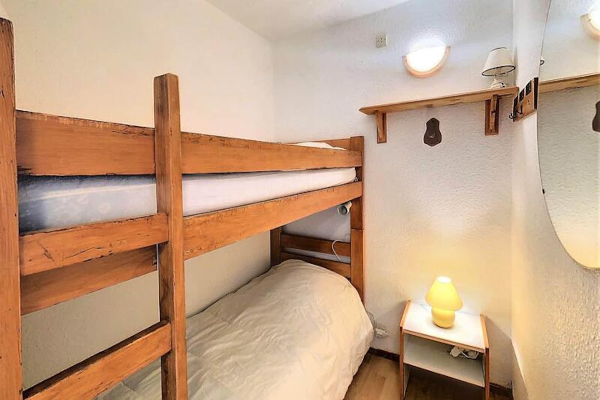 Højt over de fredelige skråninger i de franske alper tilbyder denne charmerende lejlighed i Lunik Residence et perfekt tilflugtssted for både skientusiaster og naturelskere. Beliggende i den nederste del af feriestedet, kan den prale af ski-in/ski-out adgang med La Voie Lactée stoleliften kun få skridt væk. Forestil dig at vågne op til den friske bjergluft, nippe til kaffe på din rummelige balkon og se de første skiløbere bane sig ned ad pisterne. Disse rolige omgivelser kombinerer det bedste af alpin charme med moderne bekvemmeligheder. \n\nLejlighedens gennemtænkte planløsning sikrer et behageligt ophold for op til seks gæster. Den lyse stue har en hyggelig dobbelt sovesofa, et fladskærms-tv og en spiseplads til seks personer, mens det fuldt renoverede køkken er udstyret med alt hvad du behøver, fra en keramisk kogeplade til en opvaskemaskine. Sovepladserne inkluderer et privat soveværelse med en dobbeltseng og påklædningsområde samt en sovealkove med køjesenge, perfekt til familier. Badeværelset og det separate toilet bidrager til bekvemmeligheden, og den store balkon tilbyder en fantastisk udsigt over de omkringliggende pister, hvilket gør det til et ideelt sted at slappe af efter en dag med eventyr. \n\nSelve boligen er rig på faciliteter, herunder seks elevatorer, et skirum, udendørs parkering og adgang til en opvarmet swimmingpool – gratis for gæster over tre år under dit ophold. Der ligger et minimarked og en cateringvirksomhed kun få skridt væk, og en gratis shuttlebus forbinder dig til den øvre del af resortet, ESF-skiskolen og snefronten. Uanset om du er på pisterne eller udforsker den charmerende alpelandsby, er alt hvad du behøver inden for rækkevidde. \n\nDenne lejlighed er mere end bare et sted at bo; det er en port til uforglemmelige alpine minder. Fra spændingen ved skiløb til den fredelige atmosfære i bjergene venter din perfekte ferie i hjertet af de franske alper.