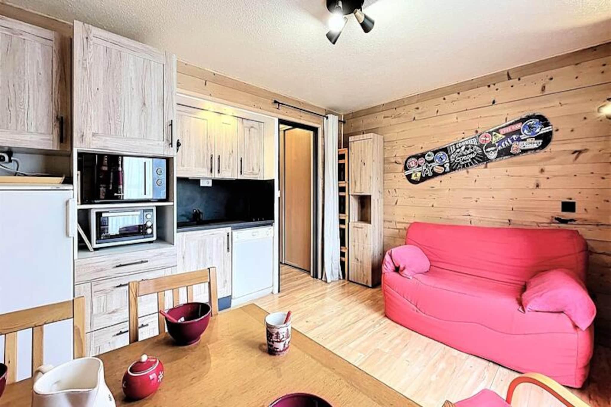 I hjertet af de franske alper, hvor pisterne møder himlen, tilbyder denne charmerende lejlighed i Zodiaque Residence en uforglemmelig alpin flugt. Forestil dig at vågne op til en fredfyldt udsigt over bjergene fra dit rolige soveværelse, træde ud på din vestvendte terrasse med udsigt over det livlige turistkontor og indånde den friske, forfriskende luft. Denne bolig er perfekt beliggende ved foden af ??pisterne og sikrer ubesværet ski-in/ski-out adgang, så du kan starte din dag i sneen uden forsinkelse. Familier vil sætte pris på den nærliggende dagpleje og ESF skiskole, hvilket gør den til et ideelt valg for alle aldre. \n\nIndvendigt er lejligheden omhyggeligt designet til at rumme op til seks gæster. Den hyggelige opholdsstue har et fuldt udstyret tekøkken med moderne apparater, herunder en raclettegrill og fondue-sæt til autentiske alpine spiseoplevelser. Sovesofaen kan omdannes til en komfortabel dobbeltseng, mens soveværelset har køjesenge til afslappende nætter. Et fladskærms-tv, rigelig opbevaringsplads og et spisebord til seks fuldender det indbydende rum. Det separate brusebad og toilet tilføjer bekvemmelighed, og balkonen tilbyder direkte adgang til pisterne for problemfri eventyr. \n\nUd over lejligheden kan gæsterne nyde gratis adgang til en opvarmet swimmingpool, perfekt til afslapning efter en dag på pisterne. Ejendommen er omgivet af essentielle faciliteter, herunder et minimarked, restauranter og en legeplads for børn, hvilket sikrer, at alt hvad du behøver er inden for rækkevidde. Uanset om du udforsker pisterne, forkæler dig selv med lokal mad eller blot nyder den alpine atmosfære, er denne ejendom den perfekte base for din bjergferie. \n\nLad Alpernes magi fortrylle dig, mens du skaber varige minder i dette hyggelige og veludstyrede tilflugtssted. Med sin uovertrufne beliggenhed og gennemtænkte faciliteter er denne lejlighed din port til en uforglemmelig ferie i hjertet af bjergene.