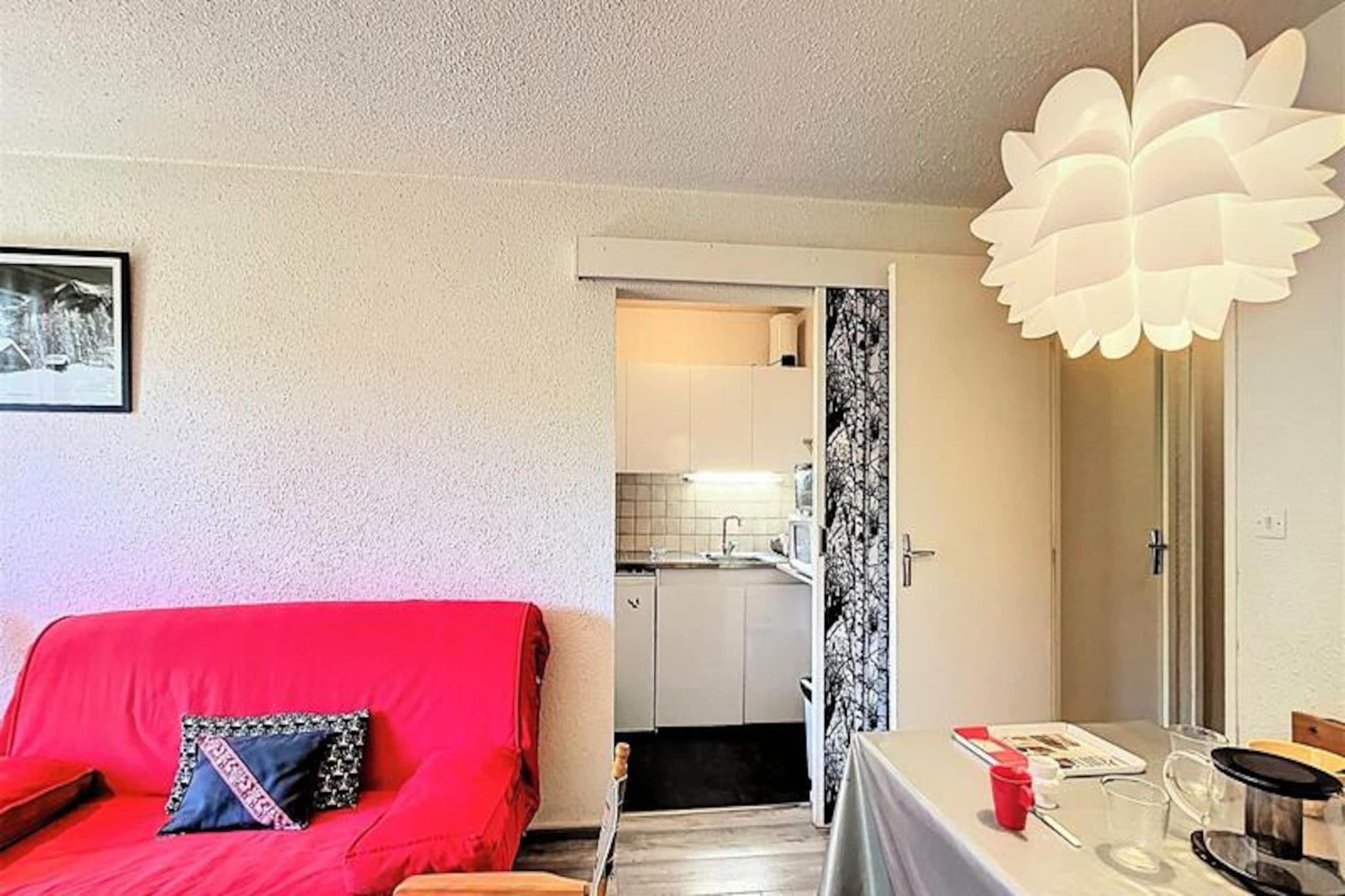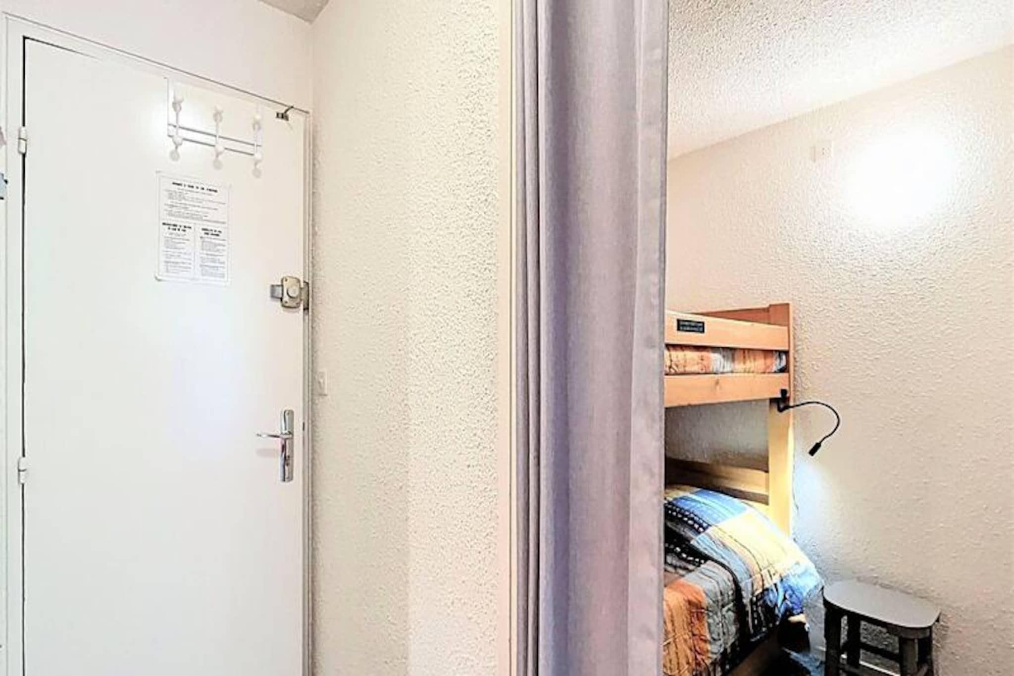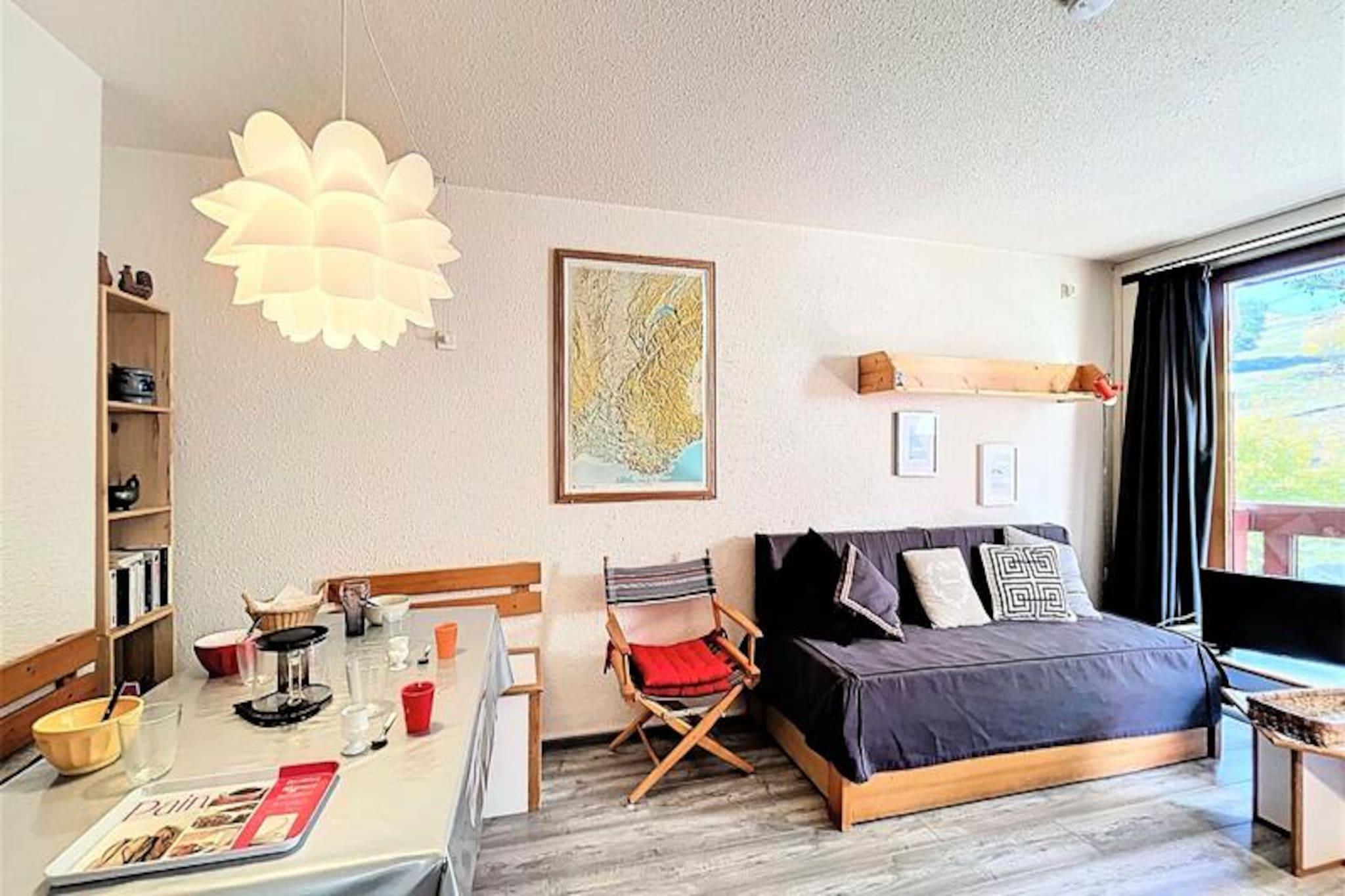 Under de glitrende tinder i de franske alper tilbyder denne hyggelige studiolejlighed i Orion Residence et roligt tilflugtssted for både skientusiaster og naturelskere. Beliggende ved foden af ??La Voie Lactée-stoleliften inviterer denne sydvendte perle dig til at vågne op til en betagende udsigt over pisterne og træde direkte ud på de uberørte pister. Uanset om du er her for at grave dig gennem frisk puddersne eller nyde den alpine charme, lover denne bolig en uforglemmelig bjergflugt. \n\nIndenfor er det 28 m² store studio omhyggeligt designet til at rumme op til 5 gæster. Entréen fører til en separat sovealkove med køjesenge og en udtræksseng, perfekt til familier eller små grupper. Opholdsstuen har en komfortabel dobbeltsovesofa, et tv og adgang til en privat balkon, hvor du kan slappe af med en varm drink efter en dag på pisterne. Tekøkkenet, der er udstyret med elektriske kogeplader, mikrobølgeovn og essentielle apparater, gør det nemt at tilberede solide måltider. Et separat badeværelse og toilet sikrer bekvemmelighed og privatliv. \n\nUd over lejligheden kan gæsterne nyde gratis adgang til en opvarmet swimmingpool under deres ophold, hvilket tilføjer et strejf af afslapning til deres alpine eventyr. Residensen tilbyder også skibokse, udendørs parkering og en vicevært for ekstra bekvemmelighed. Med et supermarked kun 10 meter væk og en cateringvirksomhed 20 meter væk, er alt hvad du behøver inden for rækkevidde. En gratis shuttlebus forbinder dig med den øvre del af resortet, inklusive ESF-skiskolen og snefronten. \n\nUanset om du er tiltrukket af spændingen ved skiløb, roen i bjergene eller charmen i de franske alper, er dette studie din port til en uforglemmelig ferie. Omfavn magien på pisterne og skab varige minder i disse idylliske alpine omgivelser.