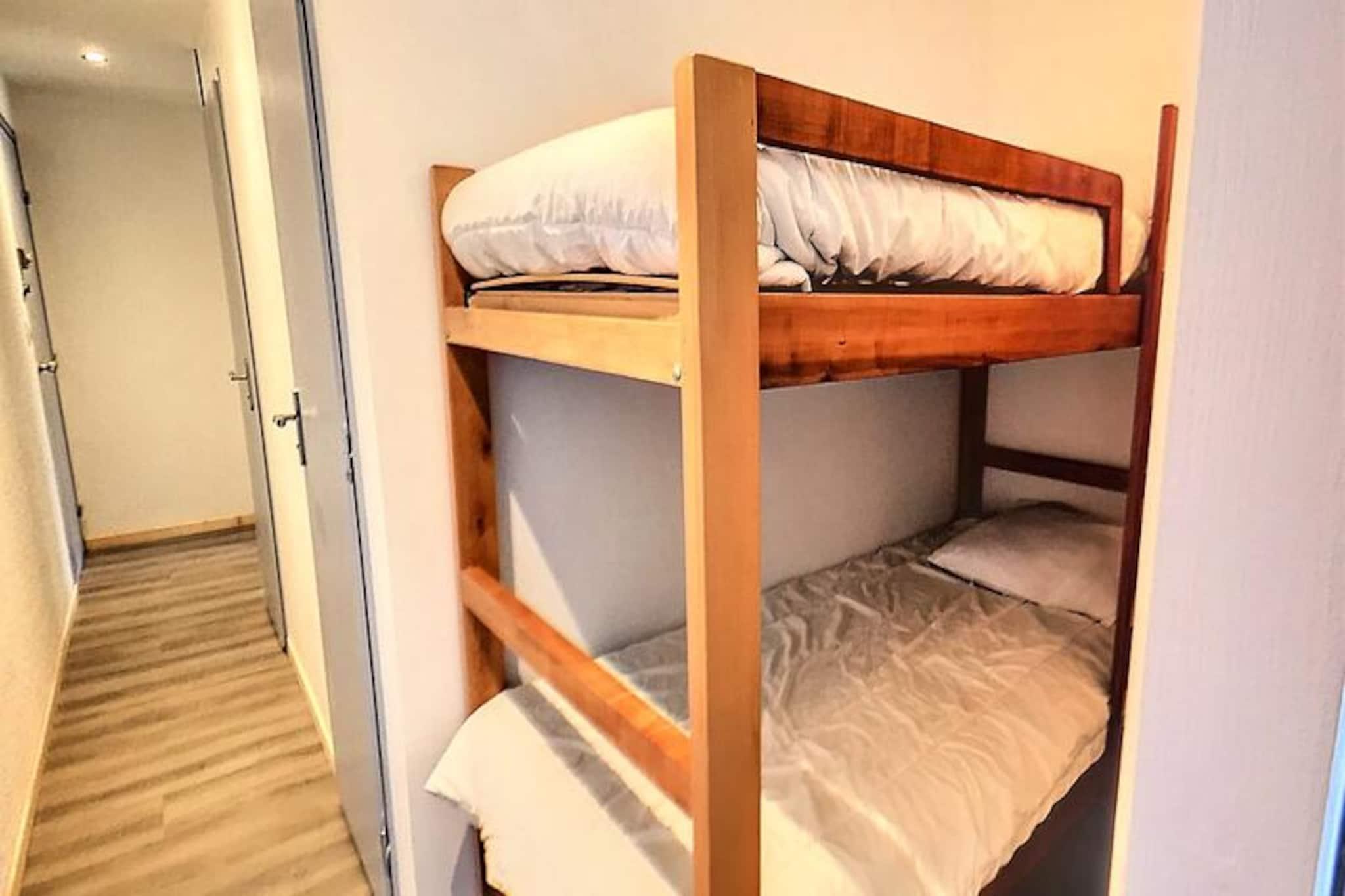 I hjertet af den pulserende Zodiaque Residence tilbyder dette charmerende alpine tilflugtssted en problemfri blanding af komfort og bekvemmelighed, perfekt til din næste bjergferie. Forestil dig at vågne op til en betagende udsigt over snefronten og pisterne fra din vestvendte balkon, mens de fredfyldte bjergudsigter fra soveværelset giver en rolig tilflugtssted. Uanset om du er her for skiløb eller sommervandreture, placerer denne bolig dig i centrum af det hele, med ski-in/ski-out adgang og nærhed til butikker, restauranter og ESF skiskole.\n\nLejligheden er designet til op til seks gæster og kan prale af en gennemtænkt planløsning med en hyggelig opholdsstue, et fuldt udstyret tekøkken og moderne bekvemmeligheder såsom et storskærms-tv og en vaskemaskine/tørretumbler. Sovearrangementet inkluderer et lukket soveværelse med en dobbeltseng, en sovealkove med køjesenge og en sovesofa i stuen, hvilket sikrer komfort for familier eller vennegrupper. Køkkenet er en fryd for madentusiaster med keramisk kogeplade, ovn, opvaskemaskine og endda raclette- og fonduesæt, der giver en ægte alpin madoplevelse.\n\nTræd udenfor og udforsk den livlige feriestedsatmosfære med et minimarked, en dagpleje, en legeplads og restauranter kun et stenkast væk. Efter en dag på pisterne kan du slappe af ved den opvarmede swimmingpool, som er tilgængelig for gæster over tre år, eller benytte dig af skiboksen, der er bekvemt placeret i stueetagen. Om sommeren forvandles området til et paradis for vandrere og naturelskere med fantastiske stier og panoramaudsigt.\n\nUanset om du søger spændende vintersport eller et fredeligt sommerophold, lover denne renoverede og fuldt udstyrede lejlighed et mindeværdigt ophold i hjertet af de franske alper. Lad bjergenes skønhed og bekvemmeligheden ved denne bolig skabe uforglemmelige øjeblikke for dig og dine kære.