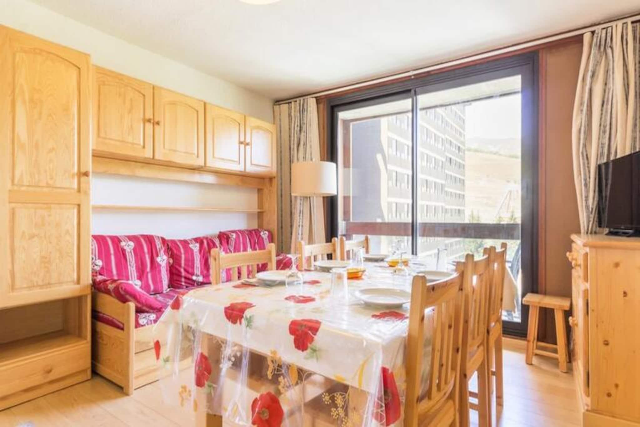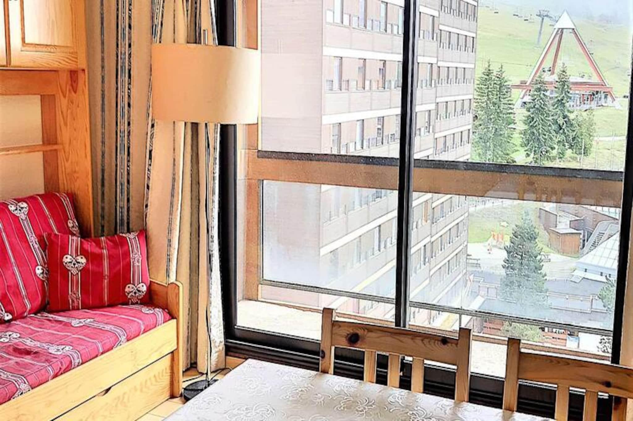 Højt over Tarentaise-dalen tilbyder denne charmerende lejlighed i Vanguard Residence en problemfri alpin flugt for familier og grupper. Beliggende på 12. sal, tilbyder den syd-vestvendte balkon en betagende udsigt over pisterne, mens ski-in/ski-out-adgangen sikrer, at du altid er få skridt væk fra eventyr. Med en legeplads og ESF børneskiskole kun få meter væk er denne beliggenhed perfekt til både erfarne skiløbere og unge skiløbere. Indenfor har den 47 m² store lejlighed komfortabel plads til op til syv gæster, med mulighed for at huse otte børn. Den rummelige planløsning inkluderer et fuldt udstyret køkken med opvaskemaskine, ovn, mikrobølgeovn og køleskab/fryser, perfekt til at tilberede solide måltider efter en dag på pisterne. Stuen kan prale af en hyggelig dobbeltsovesofa og et fjernsyn, mens soveværelset har en queensize-seng, adgang til balkon og eget brusebad. Et andet soveværelse med fire køjesenge har udsigt over pisterne, hvilket gør det ideelt til børn eller venner. Separat badeværelse og toiletfaciliteter øger bekvemmeligheden. Gæsterne kan nyde gratis adgang til boligens opvarmede swimmingpool, perfekt til afslapning efter en dag på ski eller udforskning. Bygningen tilbyder også gratis Wi-Fi, skibokse og udendørs parkering, hvilket sikrer et problemfrit ophold. I nærheden finder du en delikatesseforretning, et supermarked og en dagpleje, hvilket gør dette til en ideel base for familier. Uanset om du er her for at sno dig gennem Paradiskis legendariske pister eller blot slappe af i den rolige alpine atmosfære, kombinerer denne lejlighed komfort, bekvemmelighed og en fantastisk udsigt for en uforglemmelig bjergferie.