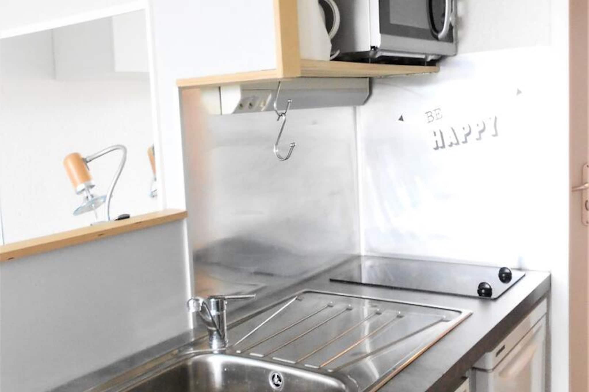Højt over Tarentaise-dalen tilbyder denne charmerende studiolejlighed et hyggeligt tilflugtssted for op til fire gæster i hjertet af de franske alper. Beliggende i Le Vanguard-residensen på 15. sal, kan den prale af en nordvendt balkon med betagende udsigt over bjergene, perfekt til at nyde den rolige alpine atmosfære. Uanset om du er her for at stå på ski eller en sommerferie, er denne ejendom en ideel base for dine eventyr. \n\nDet fuldstændig renoverede 22 m² store studio er omhyggeligt designet til komfort og bekvemmelighed. Opholdsstuen har en udtræksseng (160 cm) og en sovesofa (140 cm), suppleret med et fladskærms-tv og et klapbord for at maksimere pladsen. Tekøkkenet er udstyret med moderne apparater, herunder induktionskogeplader, mikrobølgeovn, miniovn og endda en raclettegrill for en ægte smag af regionen. En høj stol og barneseng er også tilgængelige, hvilket gør den familievenlig. Badeværelset har vaskemaskine og hårtørrer for ekstra praktisk anvendelighed. Gratis Wi-Fi sikrer, at du forbliver forbundet under hele dit ophold.\n\nBeliggende ved foden af ??pisterne tilbyder residensen ski-in/ski-out adgang, et skirum og nærhed til vigtige faciliteter. Et supermarked, cateringfirma og ESF børneskiskole ligger kun få skridt væk, mens en opvarmet swimmingpool tilføjer et strejf af luksus til dit ophold. Om sommeren gør de omkringliggende stier og legepladser det til et fremragende valg for både familier og naturelskere.\n\nMed sin uovertrufne beliggenhed, moderne komfort og fantastiske udsigt er denne studiolejlighed din port til uforglemmelige alpine minder. Uanset om du snor dig gennem frisk puddersne eller vandrer blandt vilde blomster, er hvert øjeblik her gennemsyret af bjergenes magi.