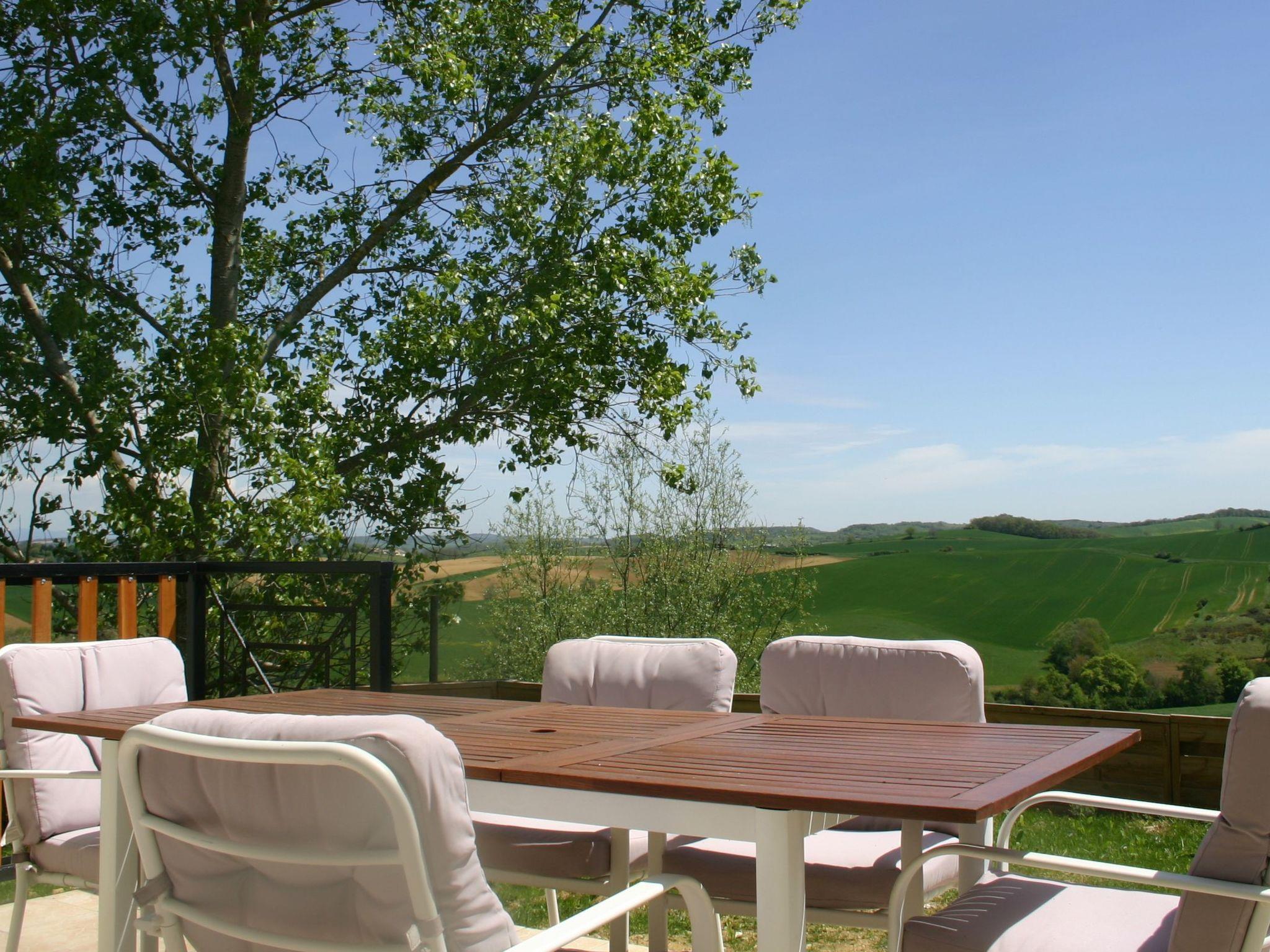 Our gite Calmont is made up of a well equipped kitchen and dining area leading through to a comfortable lounge. The lounge has a wood burning stove for those cooler evenings and leads onto the private terrace and BBQ area, where you live the alfresco life style whilst relaxing with the stunning views over your own private garden area. You can access the rest of the large gardens and swimming pool from the terrace.