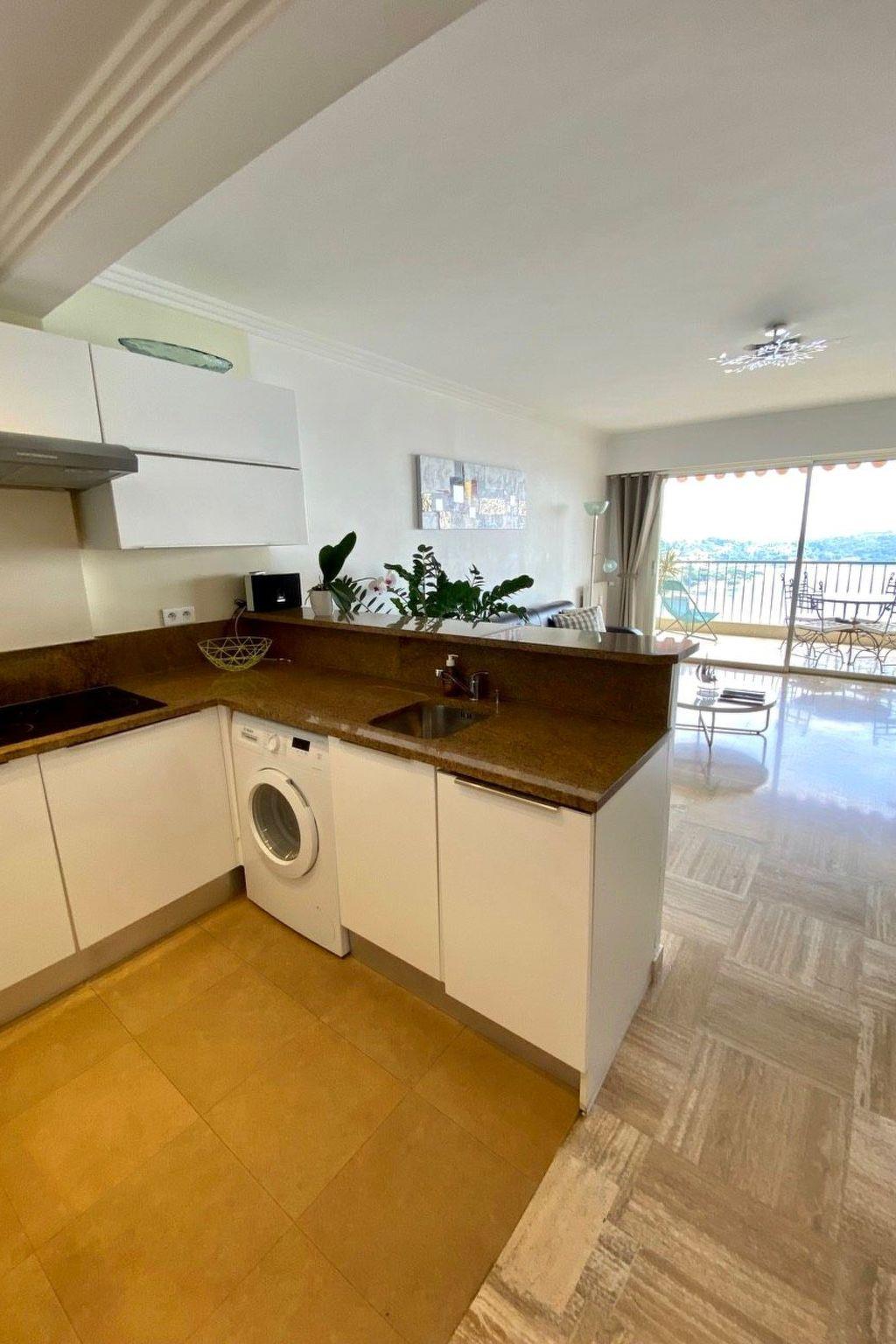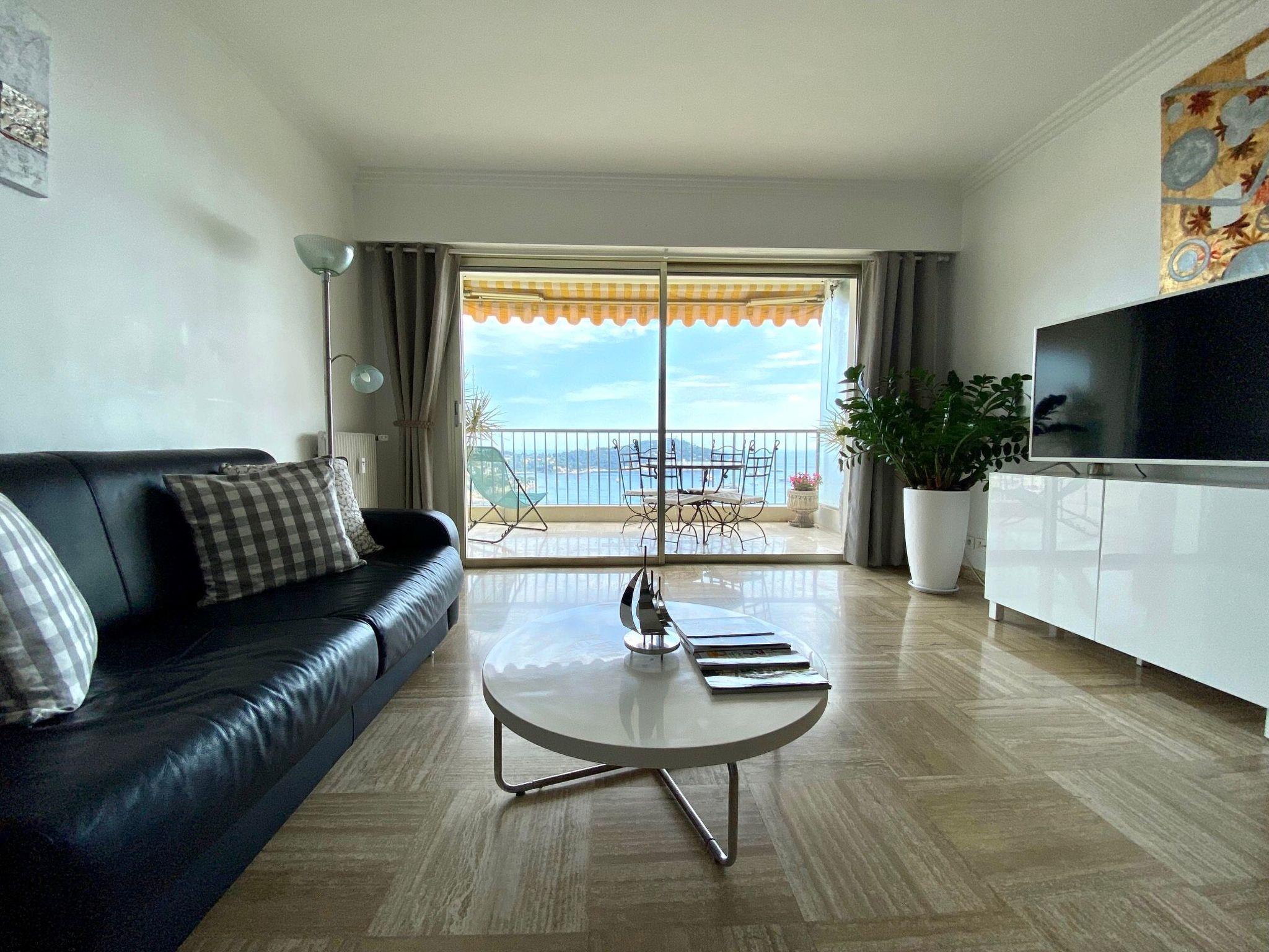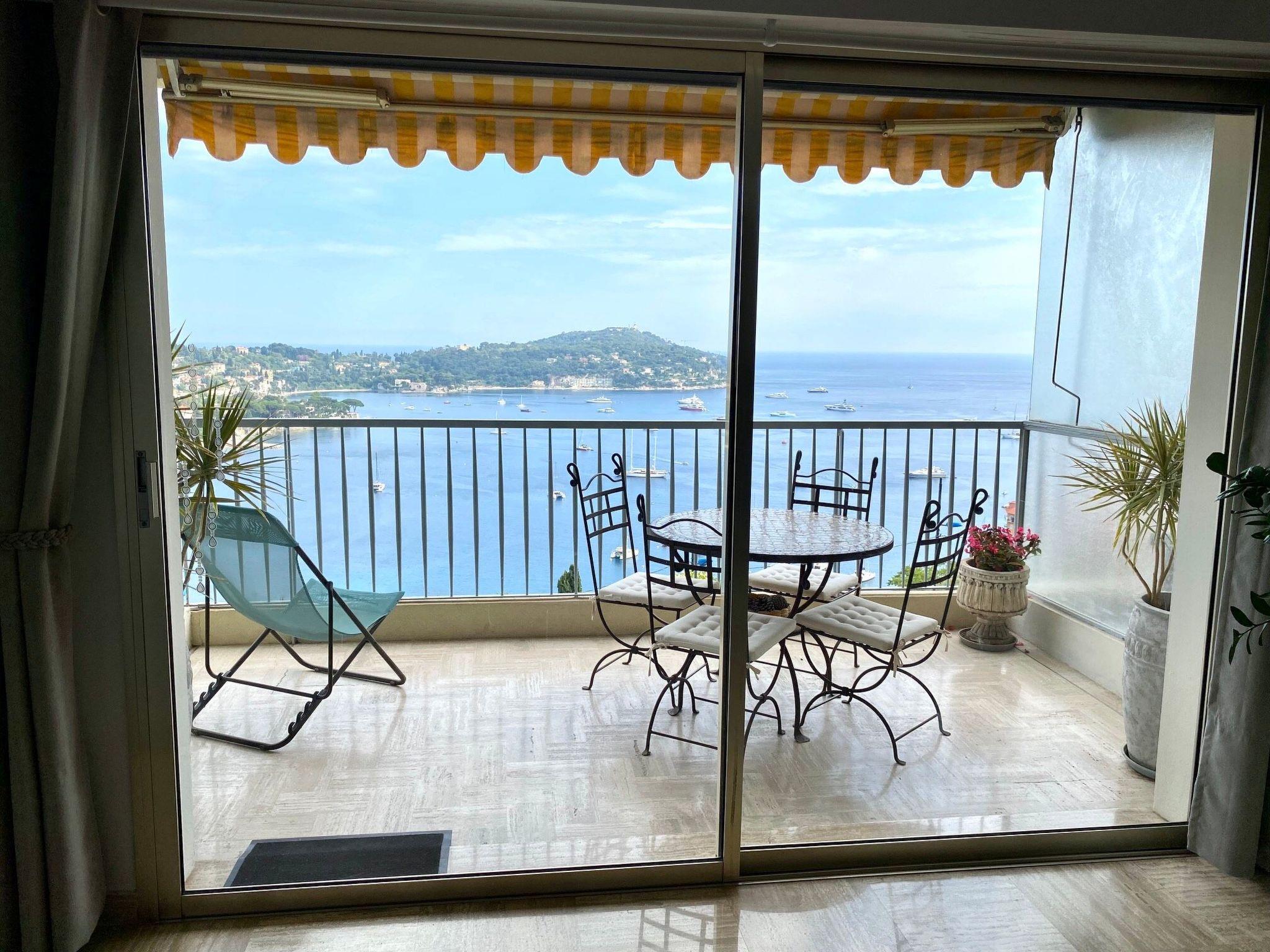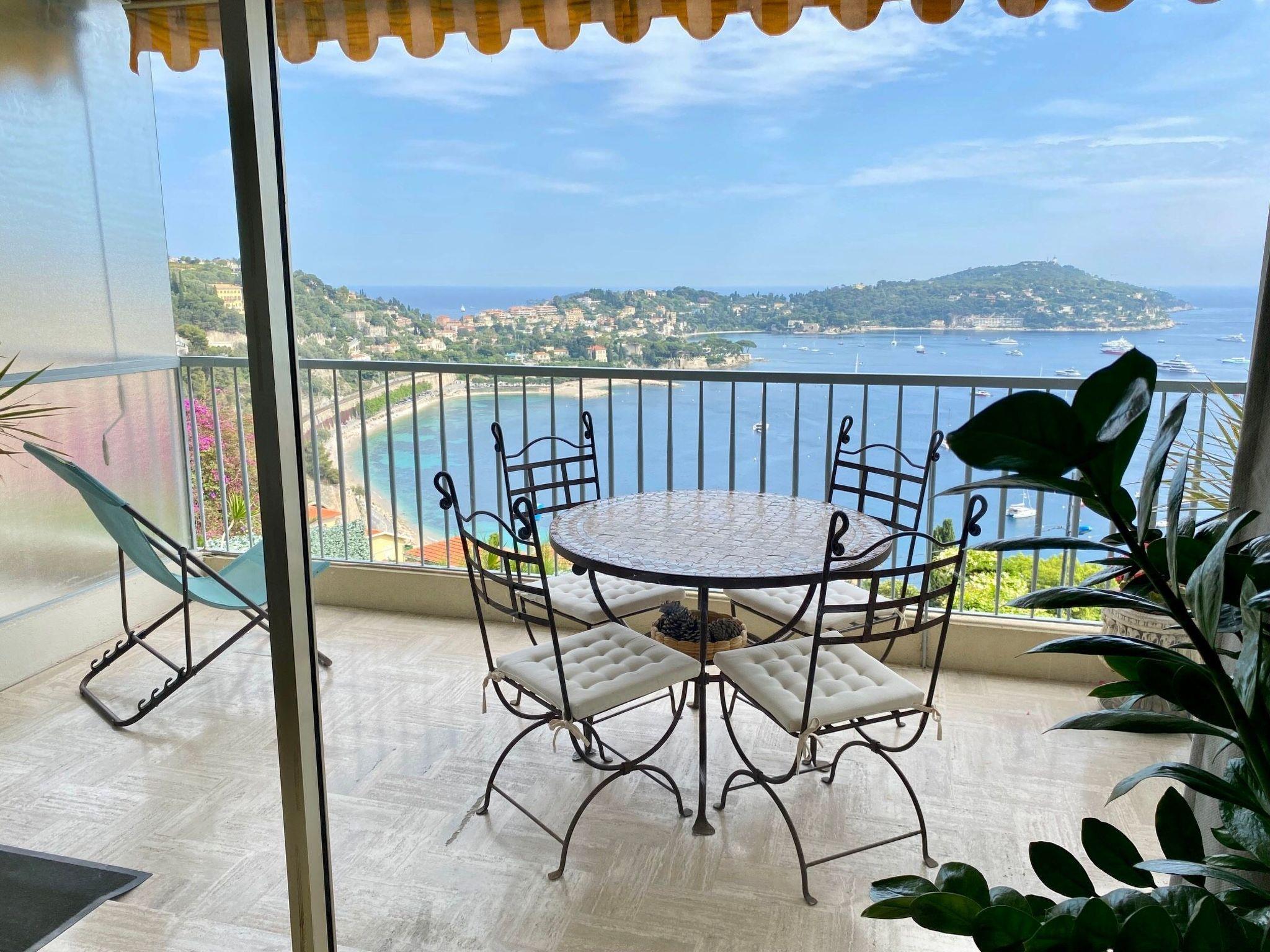 Flat with spacious terrace and panoramic view, very close to the old town The flat is located near the old town of Villefranche sur Mer, in a well-kept and secure luxury residence with a private car park and a communal pool with park.
