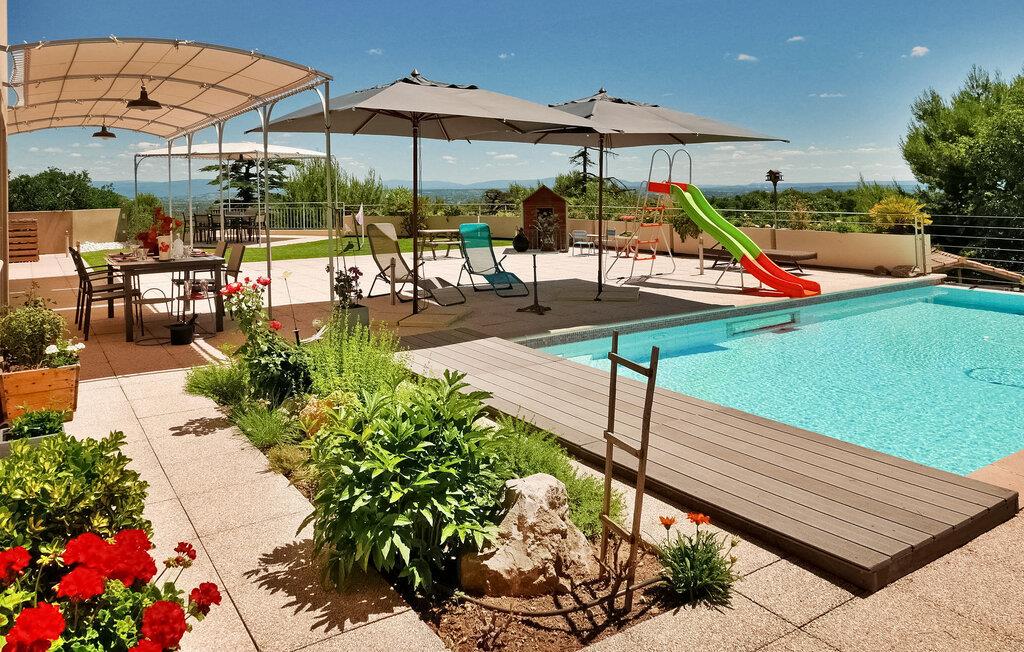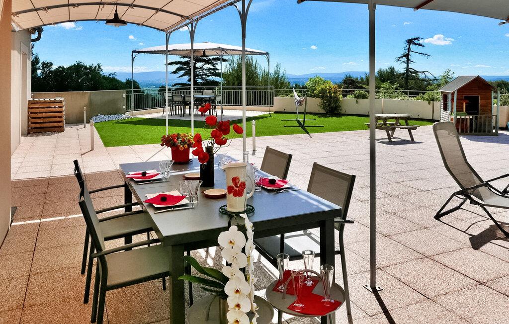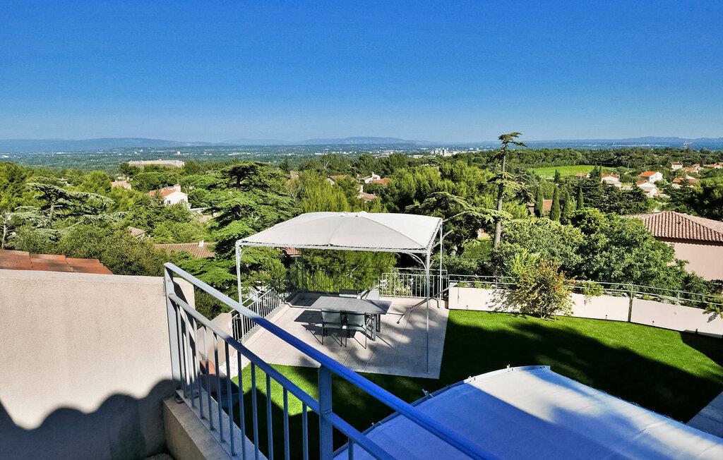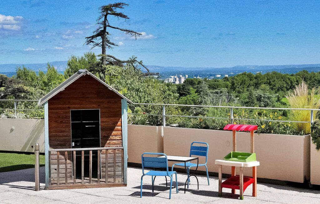 Denne ferievilla i Villeneuve lez Avignon tilbyder panoramaudsigt fra Ventoux til Alpilles-bjergkæden. Ejendommen består af et hovedhus med tre soveværelser (6 sovepladser) og en uafhængig lejlighed med aircondition (2 til 4 sovepladser). Hovedhuset har en rummelig stue, der åbner til terrassen og swimmingpoolen. Det omfatter et fuldt udstyret åbent køkken, spiseplads og opholdsområde. Ovenpå er der tre soveværelser med aircondition, et badeværelse og et separat toilet. Haveniveauet rummer et stort legeområde i garagen og vaskefaciliteter. Den selvstændige lejlighed ligger i haveniveau og kan rumme op til 4 gæster. Det har en opholdsstue med aircondition med sofa, spiseplads, åbent køkken og et soveværelse med aircondition og en dobbeltseng. Udenfor ligger villaen på en uindhegnet grund med forskellige niveauer af jord. Den ekspansive terrasse har udsigt over den fantastiske udsigt og omfatter en pergola, børnespil og en infinity-pool. Villaen er beliggende på højderne af Villeneuve lez Avignon, i et roligt boligområde. De nærmeste butikker ligger ca. 1 km væk. Det historiske centrum af Villeneuve er omkring 3 km og den berømte middelalderby Avignon er omkring 5 km.