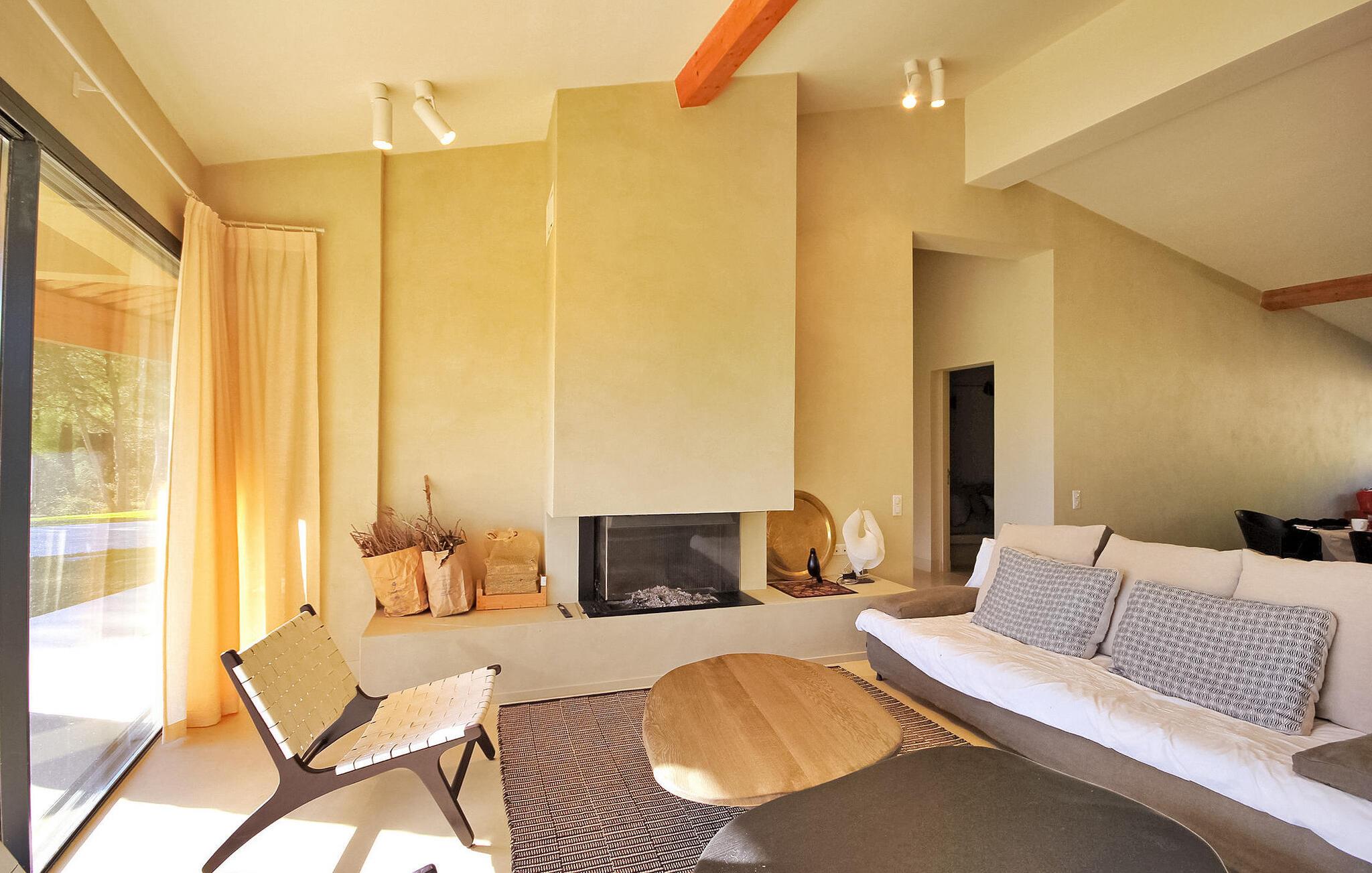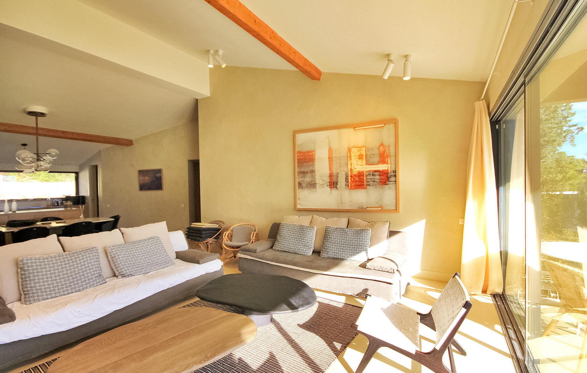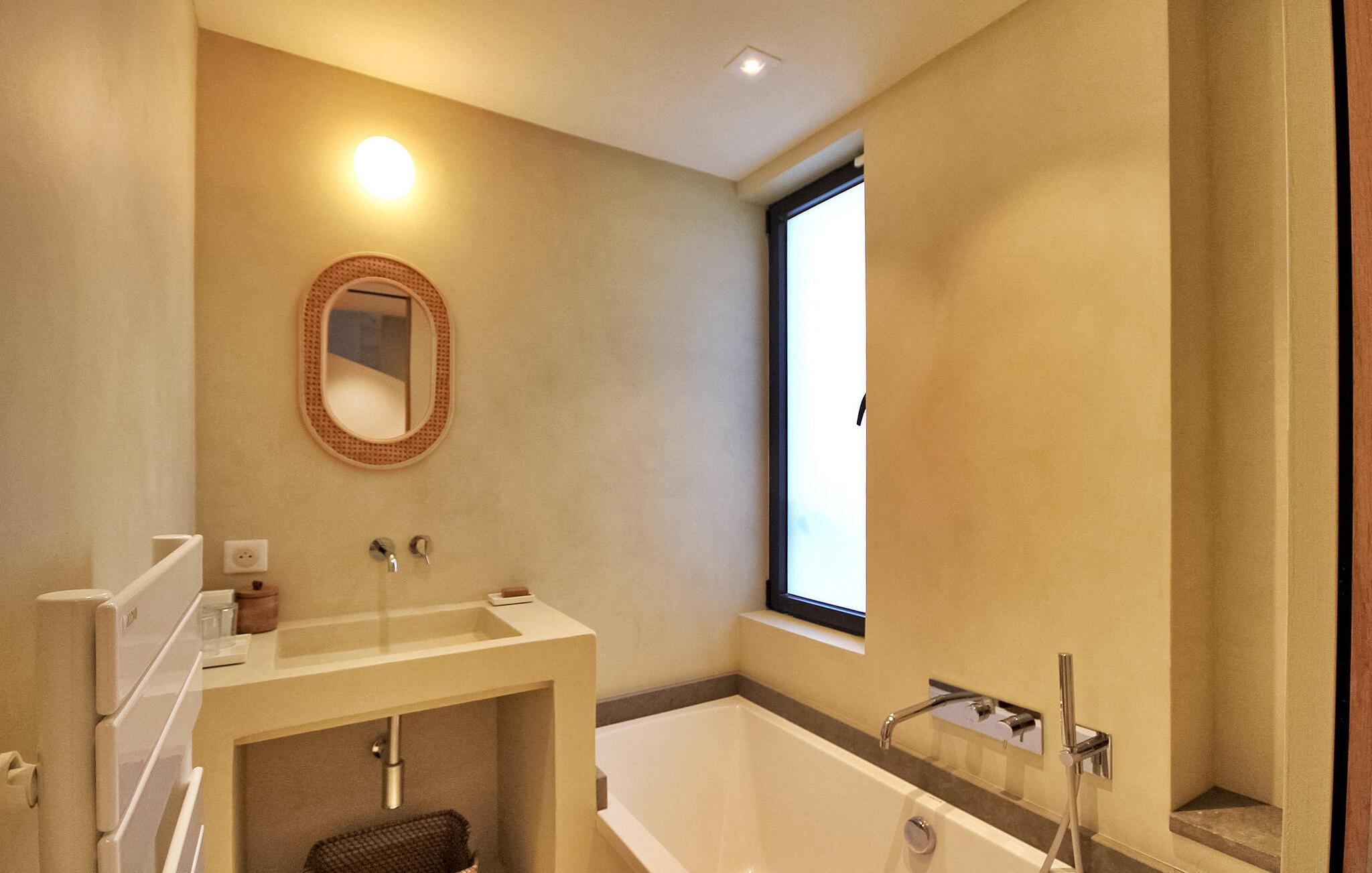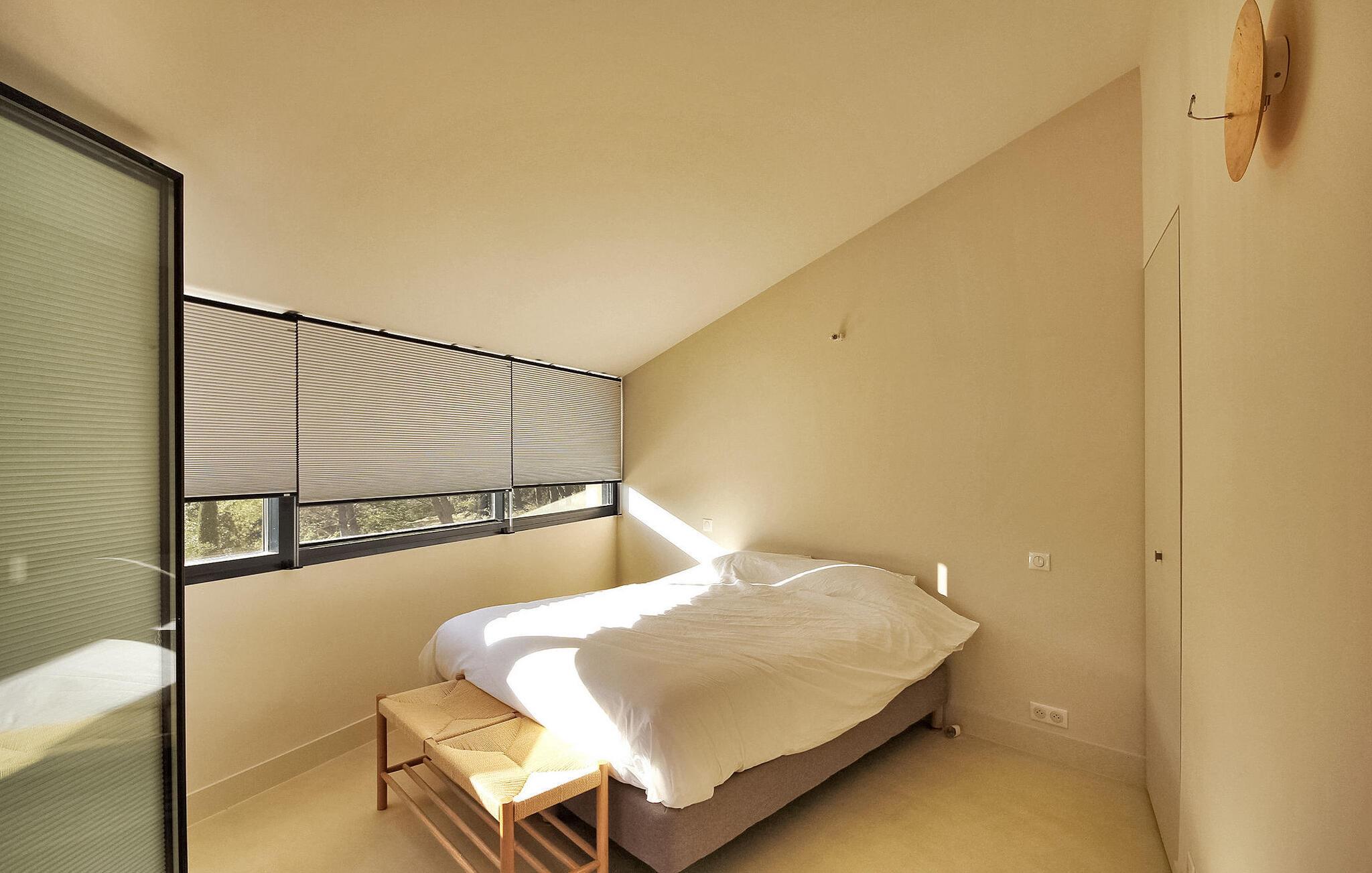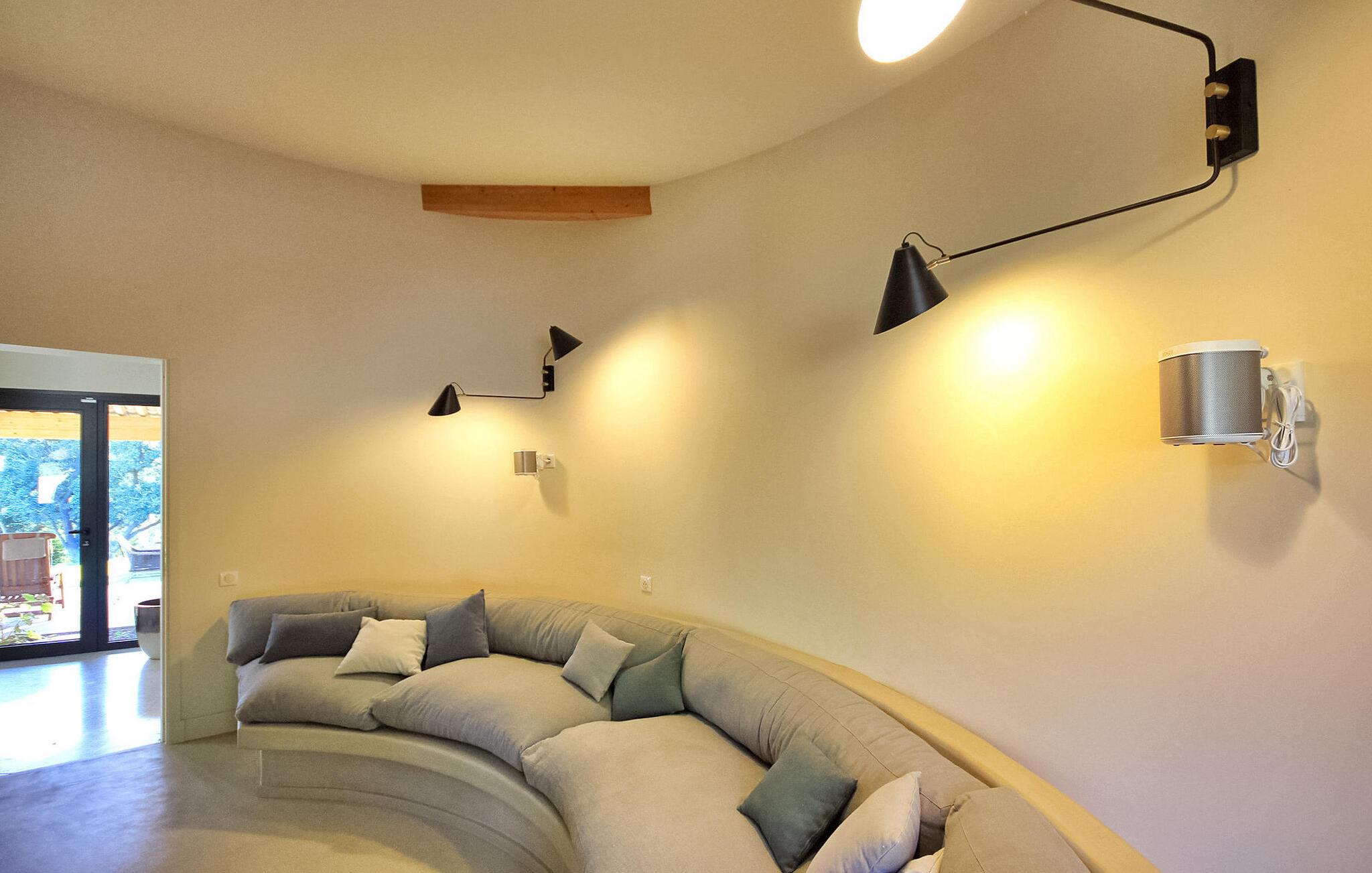 Denne klimatiserede ferievilla i Villeneuve-les-Avignon ligger i et fredeligt boligområde, ca. 2 km fra landsbyens centrum med butikker og restauranter. Villaen har et moderne, komfortabelt interiør og en privat pool. Den rummelige opholdsstue åbner ud til terrassen og haven og giver udsigt over det oplyste Fort Saint-André i Villeneuve les Avignon om aftenen. Stueetagen består af opholds- og spisepladser, et åbent køkken med kvalitets hvidevarer, en tv-stue med en halvrund sofa og flere soveværelser. Derudover er der et separat badeværelse og gulvkøling i hele soveværelserne og opholdsstuen. Ovenpå er der et soveværelse med eget badeværelse med aircondition og en terrasse. Udenfor er der en privat pool (8,5 mx 2,5 m) sikret med en alarm, liggestole, en anlagt have og en grill til gæsternes brug. Huset ligger i et fredeligt boligområde, ca. 2 km fra Villeneuves historiske centrum og dets butikker og restauranter. Den smukke middelalderby Avignon ligger lige på den anden side af Rhône-floden, 5 km.