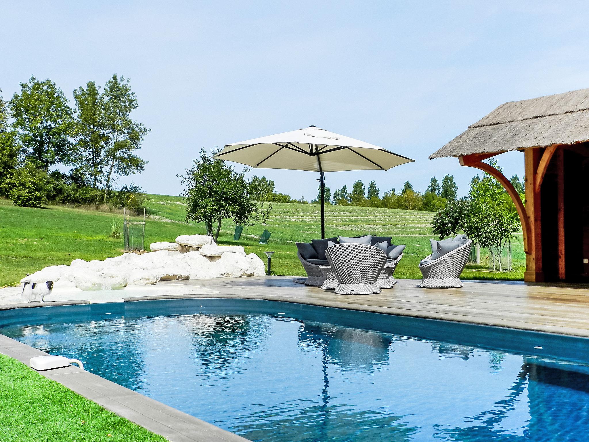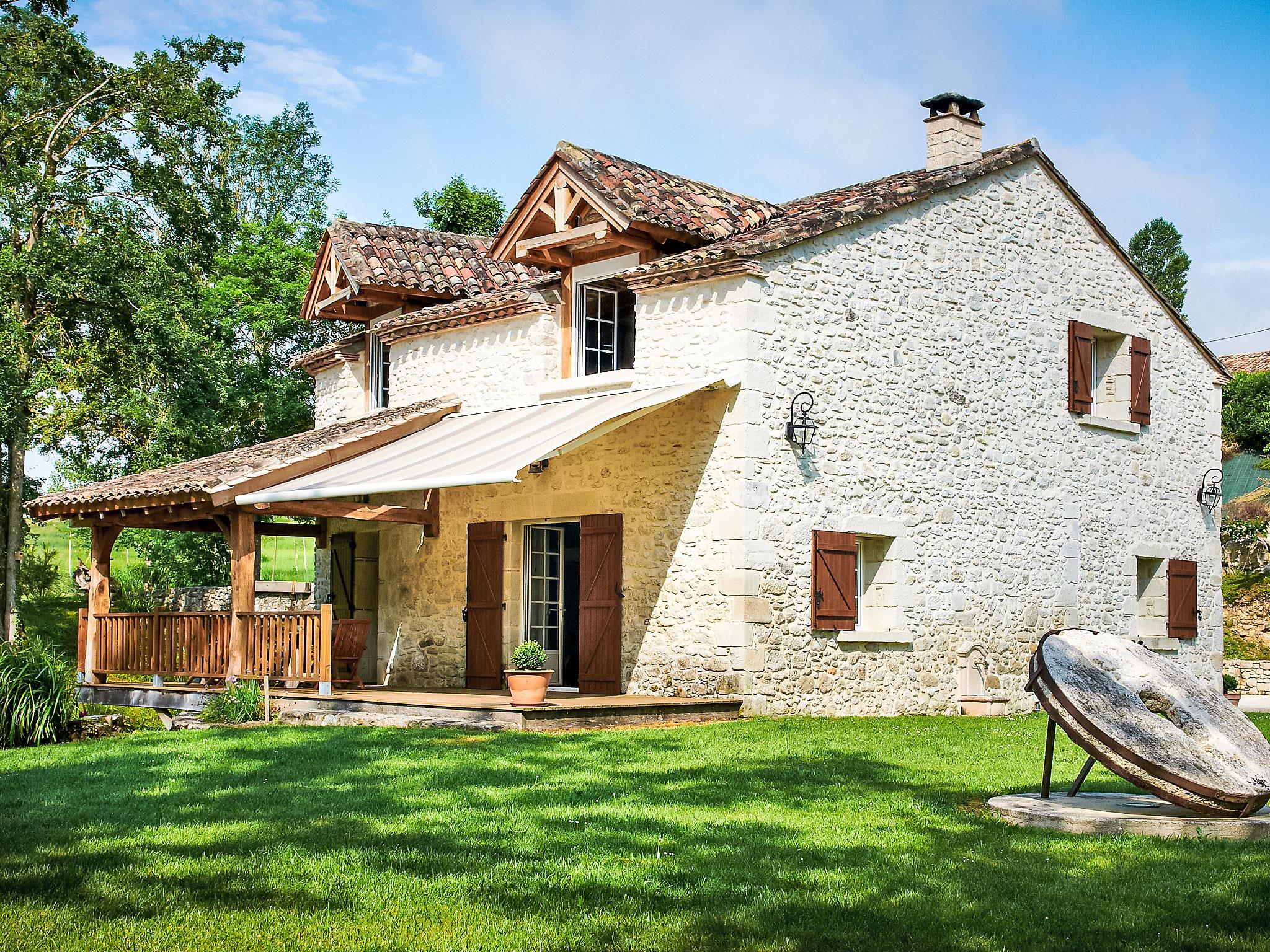 Beautiful, cosy, comfortable windmill "Moulin de Rabine", built in 1817. Outside the resort, 4 km from the centre of Cancon, in a quiet position, 7 km from the lake, in the countryside. Private: property 7'000 m2, well-kept garden with lawn, natural pond, swimming pool heated (11 x 5 m, depth 145 cm, seasonal availability: 15.May. - 30.Sep.) with alarm system. Paddling pool, outdoor shower, pool house, parking at the house on the premises. Shop 3 km, grocery 3 km, supermarket 3 km, restaurant 3 km, bus stop "Bourg" 14 km, sandy beach "Lac de Lougratte" 7 km. Golf course (18 hole) 8 km, riding stable 5 km. Nearby attractions: Villeneuve sur Lot 14 km, Aéroport de Bergerac 40 km, Agen 50 km, Cahors 80 km, Bordeaux 130 km. Hiking paths: Parc naturel régional des Causses/Quercy. Please note: car recommended. Airfield 40 km from the property. This old flour mill is in working order, the millstones and mechanisms are visible from the inside through glass slabs. Note: possibility of fishing in the pond. Warning: unsecured pond, children must remain under the supervision of parents. Treehouse (9 mq) for adults and children.