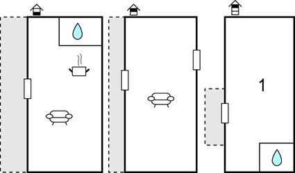Badeværelse 3m2 (nr. 1) - WC. Varmt og koldt vand. Bruser