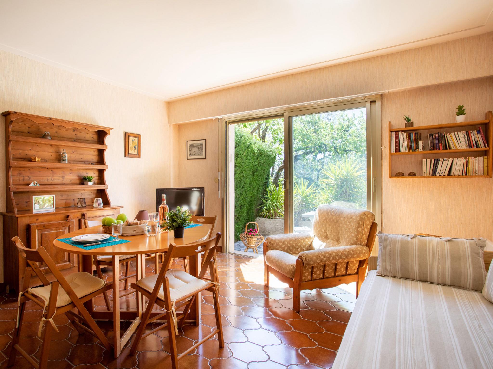1-room studio 34 m2 on 1st floor, south-west facing position. Living/dining room with 1 double sofabed (1 x 140 cm, length 190 cm), 1 pull-out bed (2 pers. 2 x 90 cm, length 190 cm), TV (flat screen). Exit to the terrace. Open kitchen (2 hot plates, dishwasher, toaster, kettle, microwave, electric coffee machine). Shower/WC. Electric heating. Terrace 8 m2, south facing position and west facing position. Terrace furniture. Partial view of the sea and the garden. Facilities: washing machine, iron, hair dryer. Internet (WiFi, free). Parking (1 car) at 150 m. Please note: non-smokers only. Smoke alarm. Offer by a private individual according to Art. 155, IV of CGI. 06161001026YD