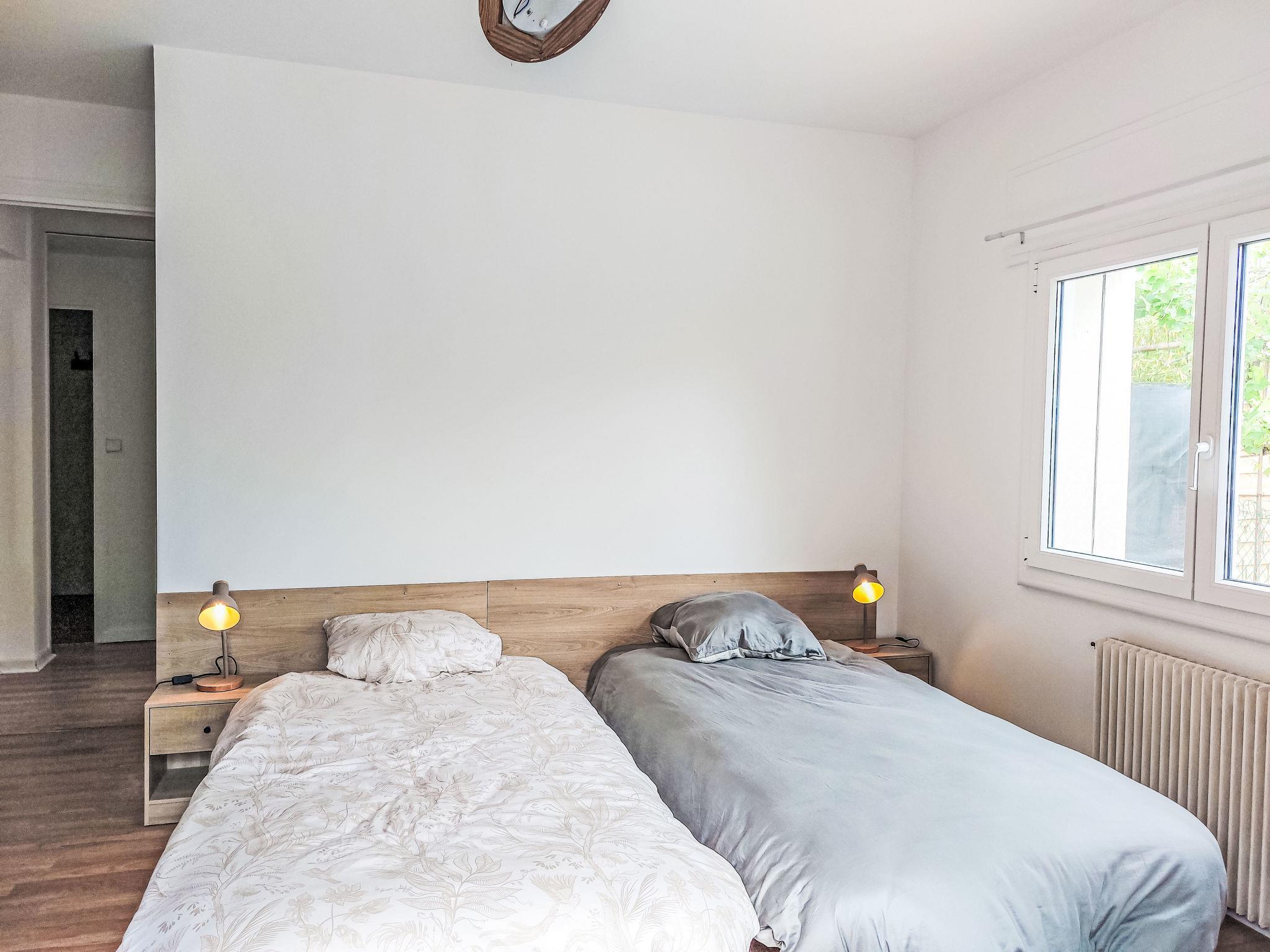 "Villeneuve Plage", 4-room house 90 m2. Comfortable furnishings: living/dining room with TV. Exit to the terrace. 1 room with 1 french bed (140 cm, length 200 cm). 1 room with 2 beds (90 cm, length 190 cm). Studio with 1 french bed (140 cm, length 190 cm), shower/WC. Exit to the terrace. Kitchen in the entrance (oven, dishwasher, 4 gas rings, toaster, kettle, microwave, freezer, electric coffee machine). Exit to the garden. Shower/WC, sep. WC. Gas heating. Terrace 25 m2 partly roofed, south facing position. Terrace furniture. View of the garden. Facilities: washing machine. Internet (WiFi, free). Parking (2 cars). Please note: non-smoking house. 1 pet/ dog allowed. Smoke alarm. No internal connecting door between the separated properties. Offer by a commercial proprietor according to Art. 155, IV, CGI 06161001634HM