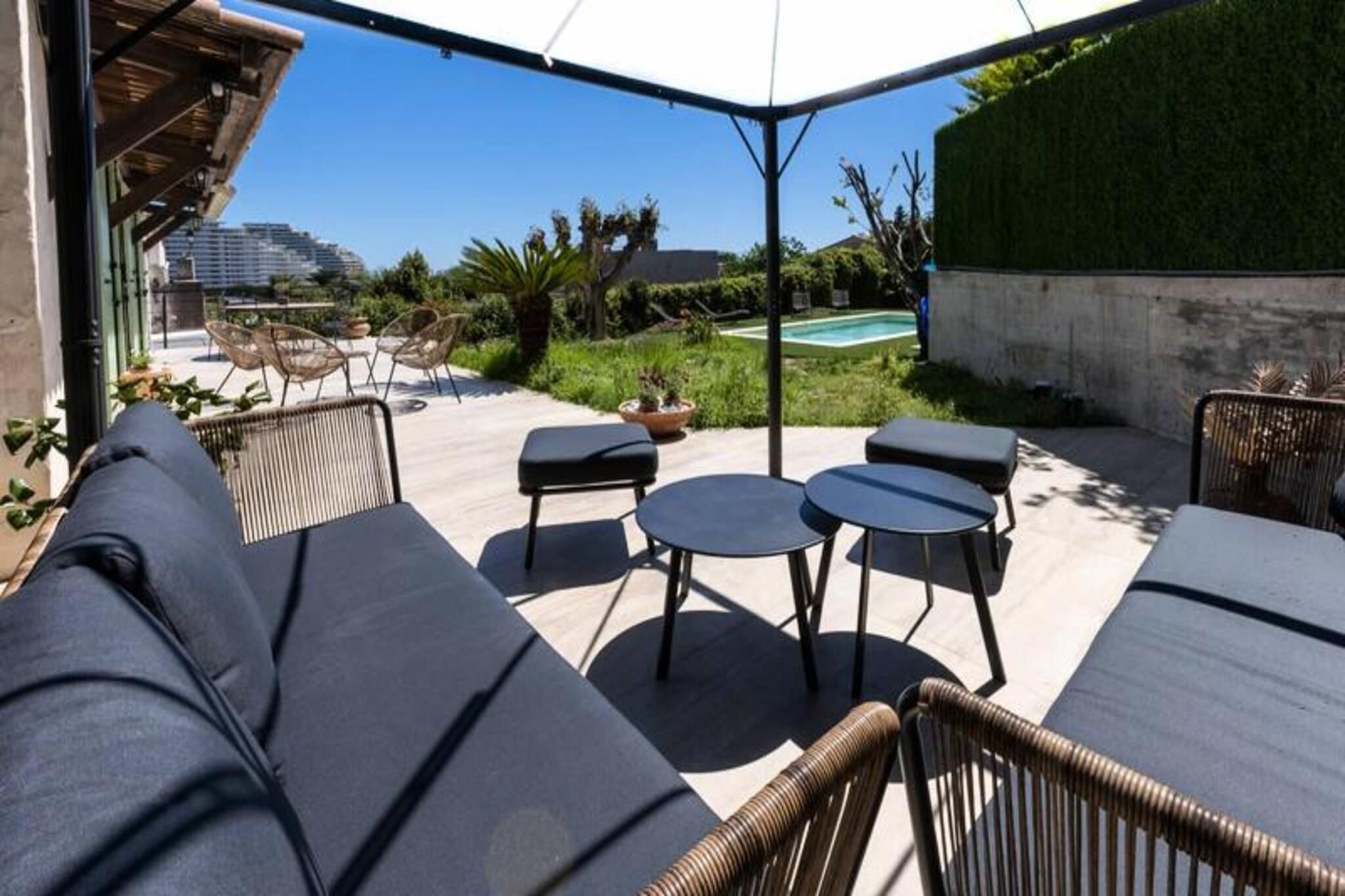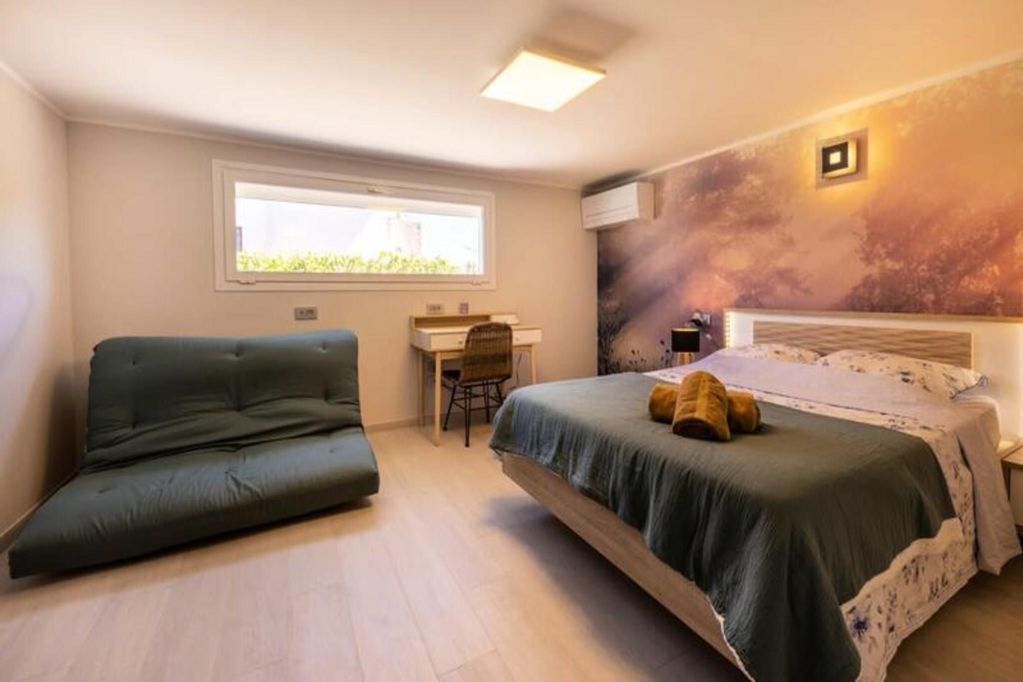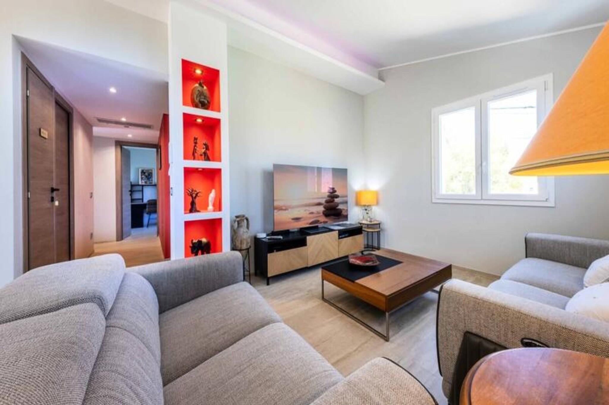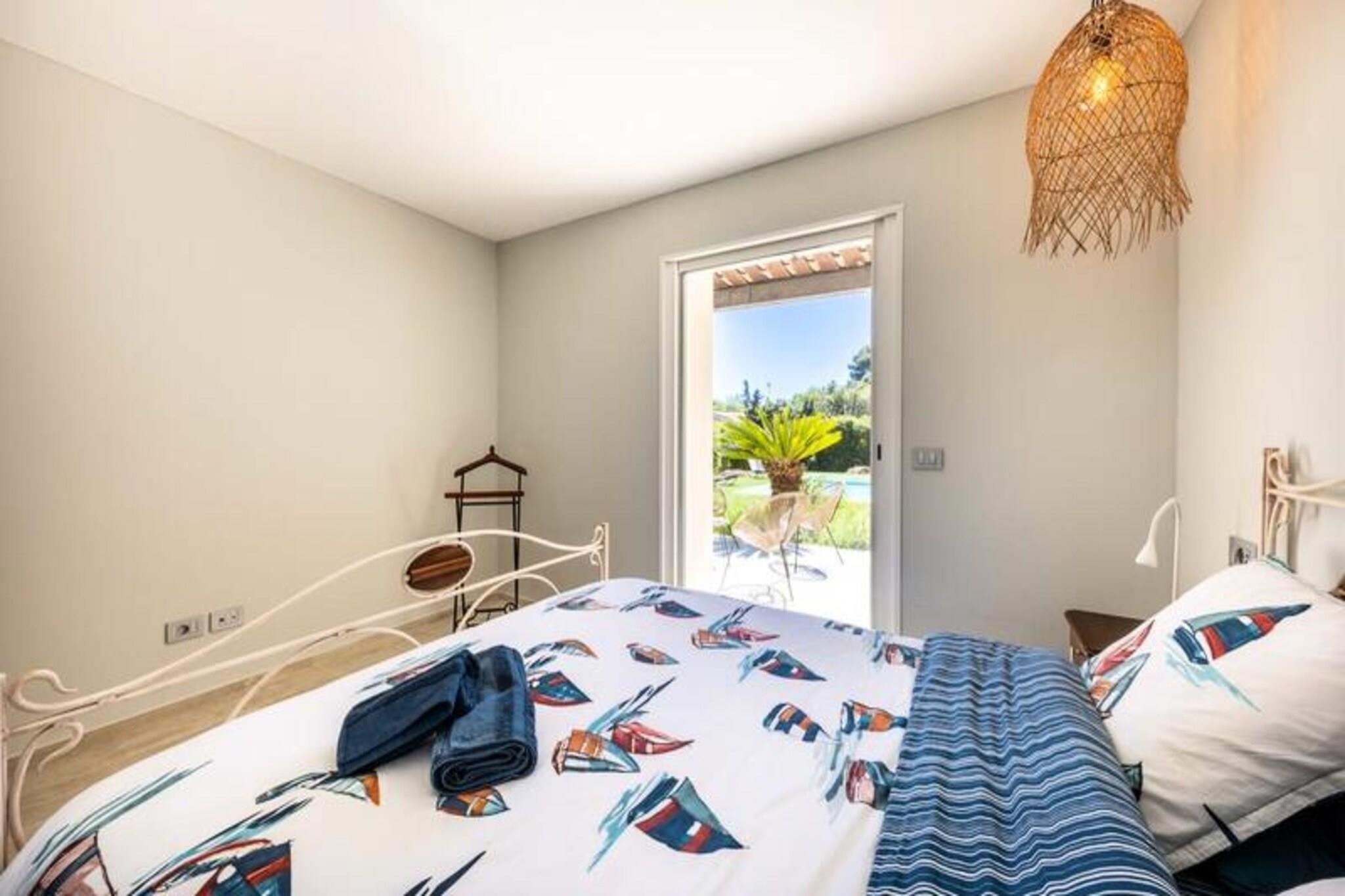 Denne luksuriøse villa i Villeneuve Loubet tilbyder en virkelig uforglemmelig ferieoplevelse. Villaen har fire soveværelser, hver med sit eget private badeværelse, og rummer komfortabelt gæster. Nyd en privat swimmingpool, en rummelig terrasse med fantastisk havudsigt, et veludstyret fitnesscenter og en afslappende sauna. Bemærk venligst, at kæledyr ikke er tilladt. Oplev skønheden ved den franske riviera! Udforsk den charmerende by Villeneuve Loubet, slap af på sandstrandene i Baie des Anges, og besøg den pulserende Marina Baie des Anges. Nyd nem adgang til lokale butikker, restauranter og togstationen for bekvem rejse langs Côte d'Azur. Denne fantastiske villa kan prale af en smukt anlagt have med en pergola og komfortable udendørs siddepladser. Den rummelige stue har et køkken i åbent plan, perfekt til underholdning. Forkæl dig selv med de luksuriøse faciliteter, herunder et privat fitnesscenter og sauna, hvilket sikrer et virkelig afslappende og foryngende ophold.