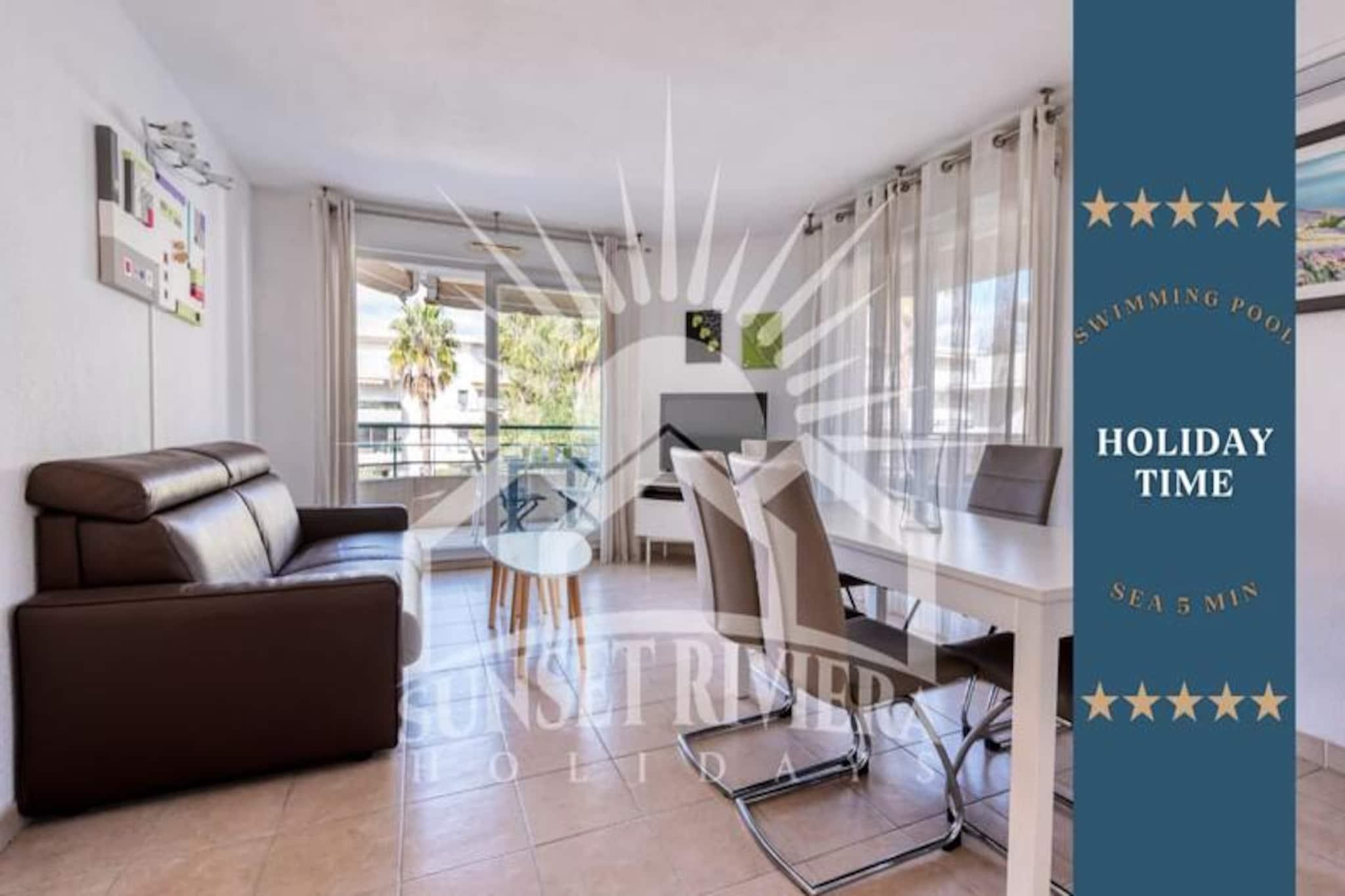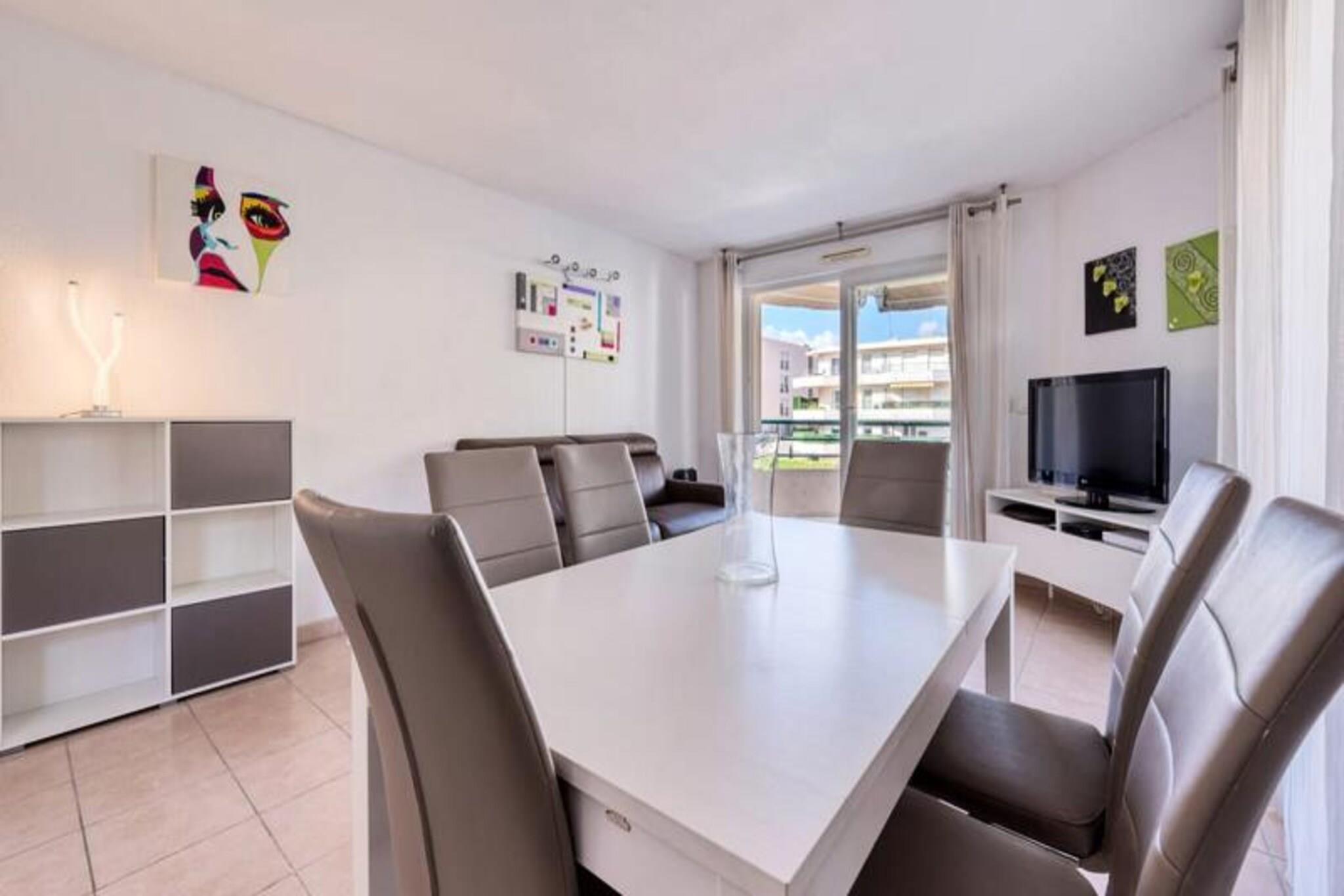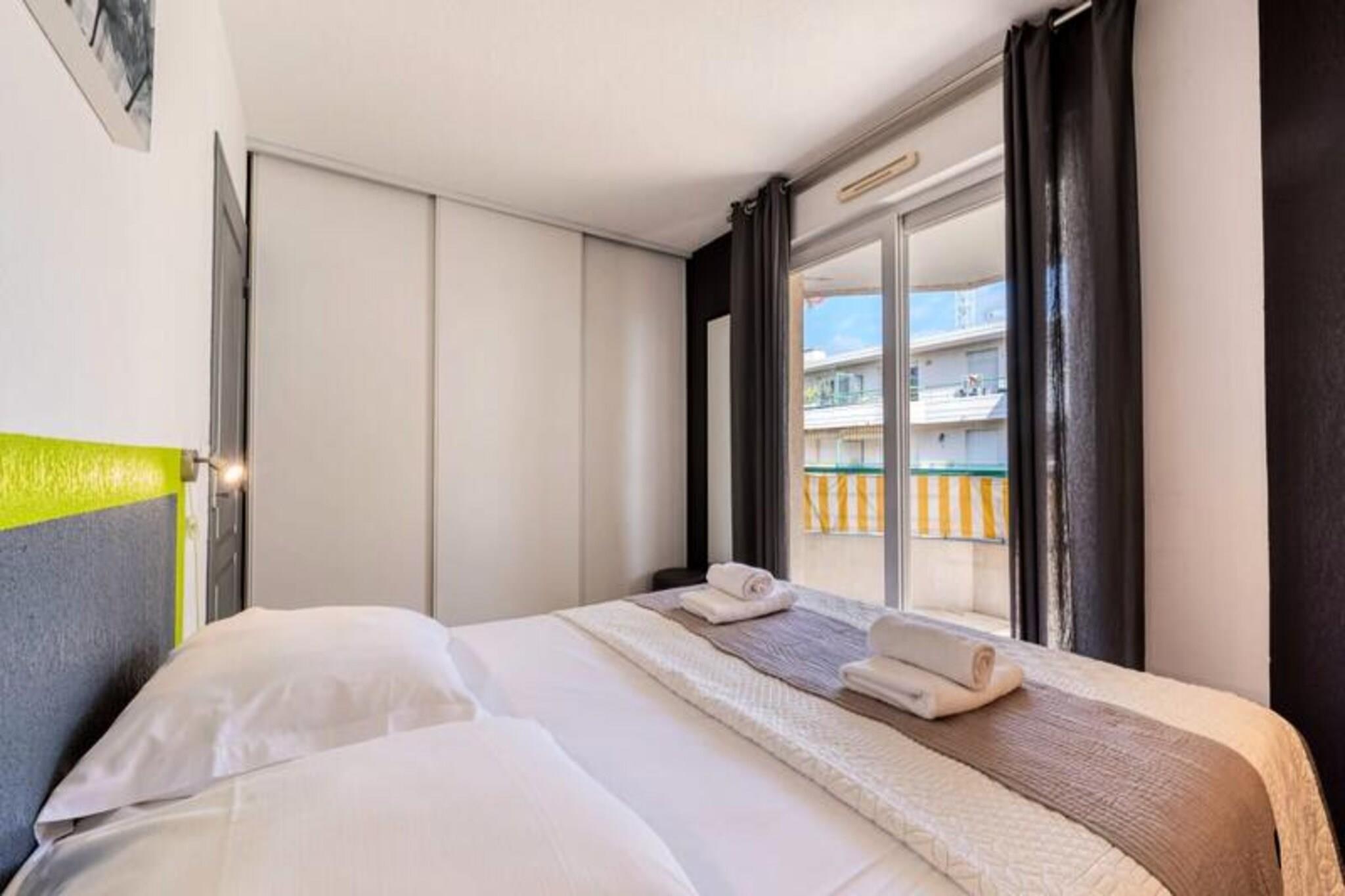 Denne komfortable lejlighed med aircondition tilbyder et fredeligt ophold med to soveværelser, herunder et med en 160 cm seng og det andet med en enkeltseng. Lejligheden kan rumme op til 4 gæster eller 6 mod et ekstra gebyr og tilbyder endda plads til to babyer under 3 år. Gæsterne vil nyde en møbleret terrasse med udsigt til swimmingpoolen samt adgang til en kælderparkeringsplads. Boligen omfatter en swimmingpool (sæsonbestemt), hvilket sikrer afslapning under dit ophold. Lejligheden er ikke kæledyrsvenlig, og der kræves et depositum ved ankomst. Lejligheden er ideelt beliggende, kun 5 minutters gang fra butikker og mindre end 10 minutter fra strandene. Det er også tæt på den berømte Marina Baie des Anges og i gåafstand fra Villeneuve Loubet togstation. Området er omgivet af forskellige caféer, restauranter og markeder, der tilbyder masser af muligheder for at spise og udforske. Med sin førsteklasses beliggenhed er denne lejlighed perfekt til at nyde både det pulserende kystliv og fredelige afslapning. Lejligheden er fuldt udstyret med et amerikansk køkken med komfur, mikroovn-grillovn, køleskab med fryser, opvaskemaskine og Nespresso kaffemaskine. Badeværelset er udstyret med badekar, håndvask og separat toilet samt ekstra bekvemmeligheder som håndklædetørrer og hårtørrer. Lejligheden tilbyder også WiFi, en vaskemaskine og linned af høj kvalitet for at sikre et behageligt og bekvemt ophold.