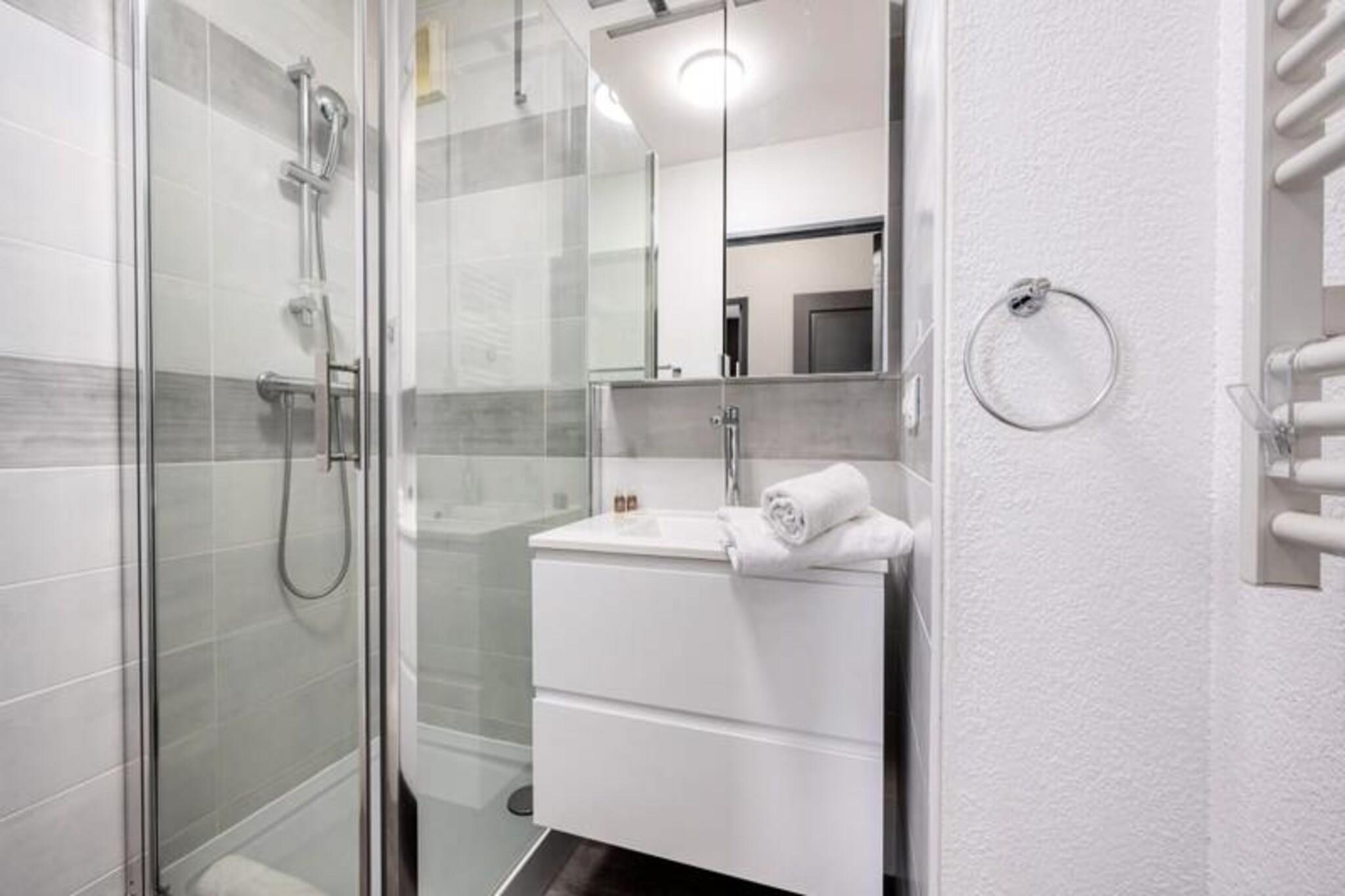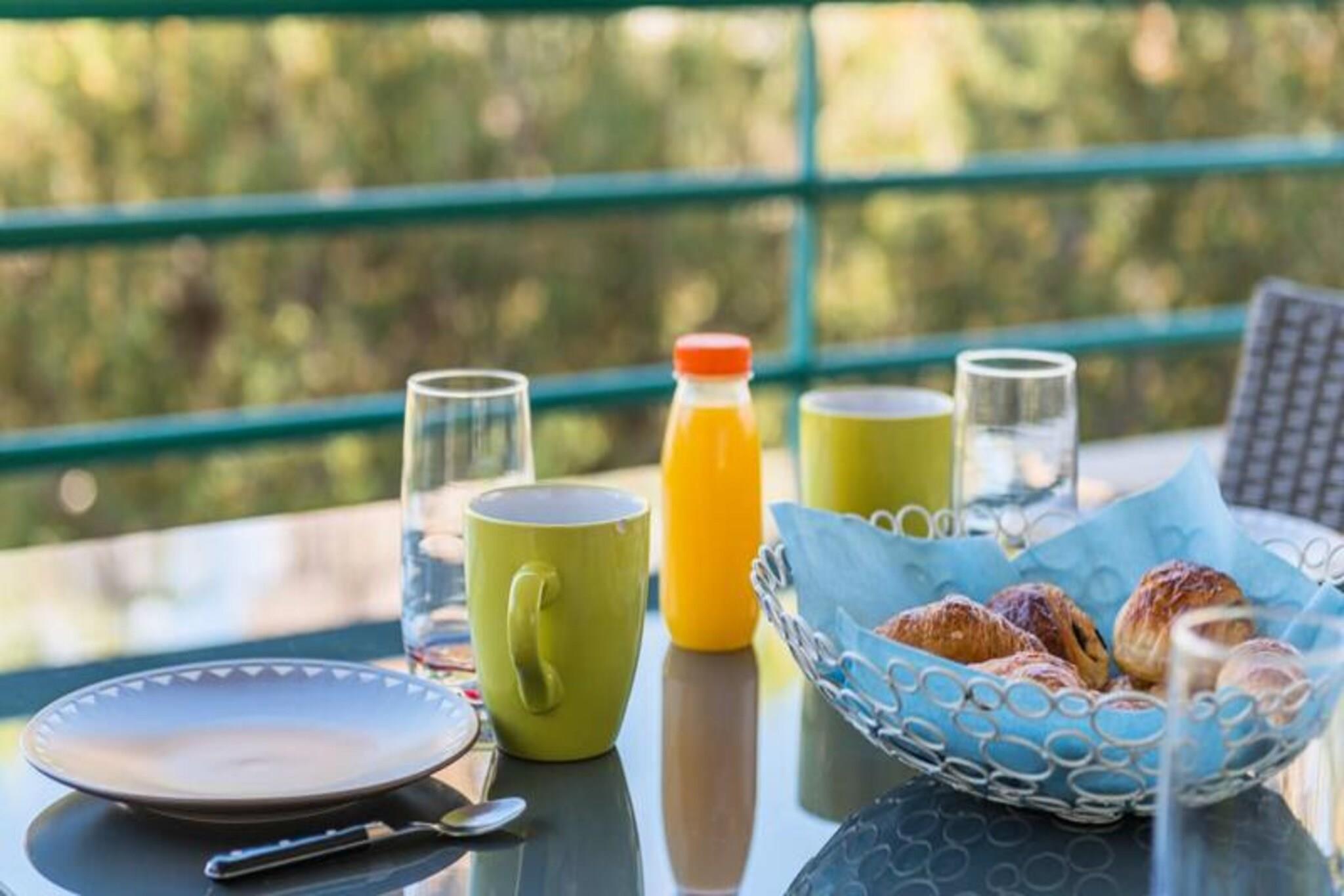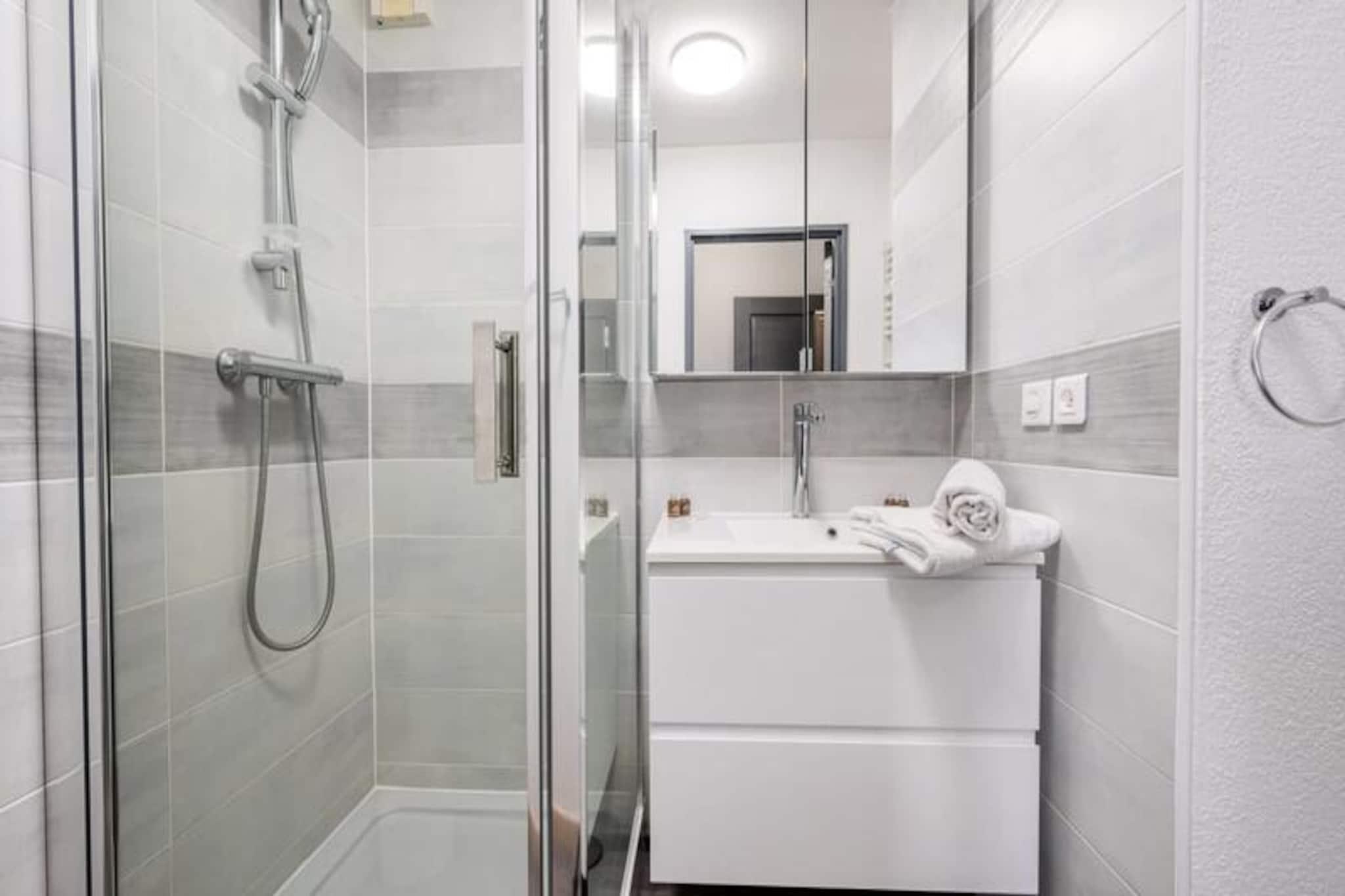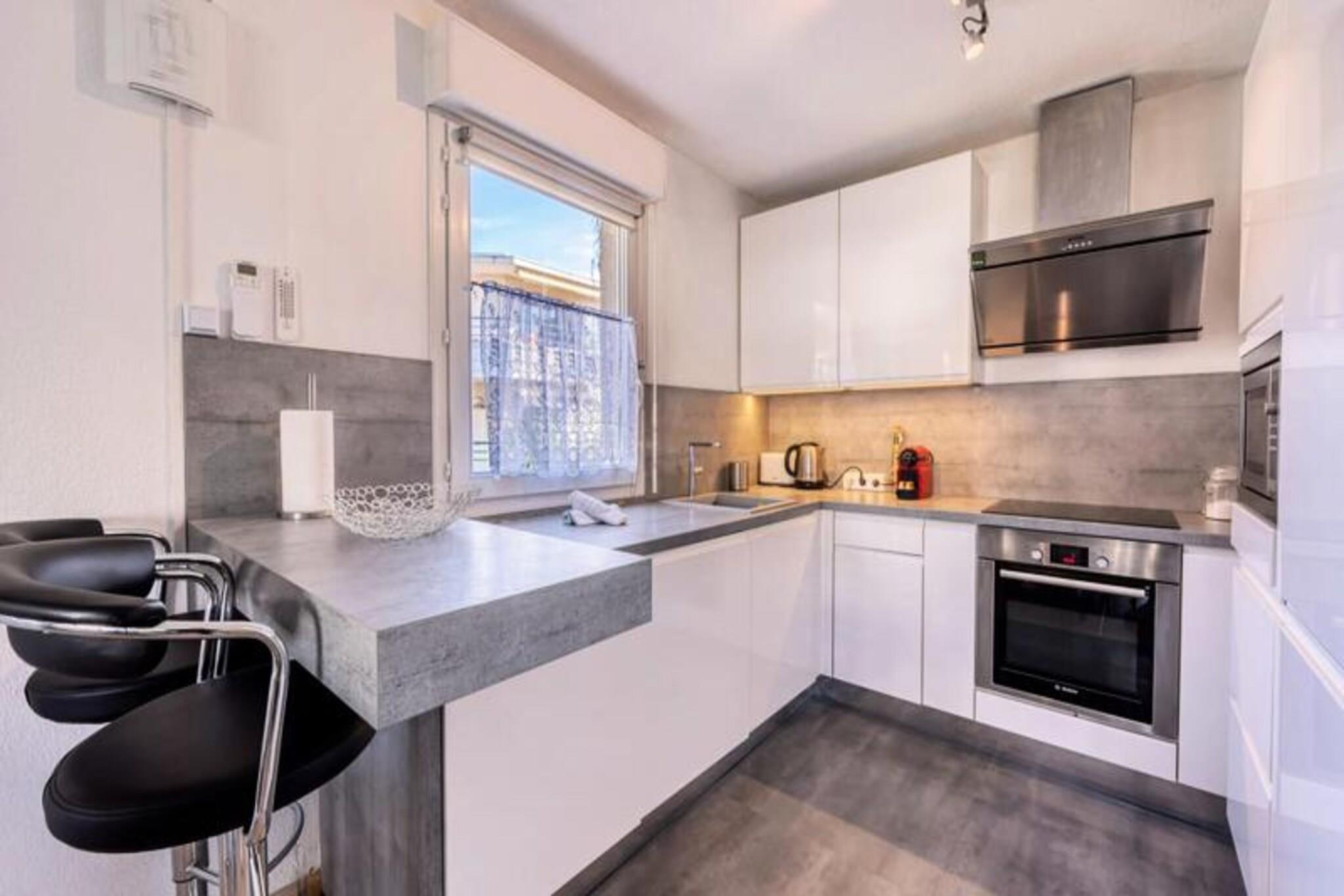 Denne komfortable lejlighed med aircondition tilbyder et fredeligt ophold med to soveværelser, herunder et med en 160 cm seng og det andet med en enkeltseng. Lejligheden kan rumme op til 4 gæster eller 6 mod et ekstra gebyr og tilbyder endda plads til to babyer under 3 år. Gæsterne vil nyde en møbleret terrasse med udsigt til swimmingpoolen samt adgang til en kælderparkeringsplads. Boligen omfatter en swimmingpool (sæsonbestemt), hvilket sikrer afslapning under dit ophold. Lejligheden er ikke kæledyrsvenlig, og der kræves et depositum ved ankomst. Lejligheden er ideelt beliggende, kun 5 minutters gang fra butikker og mindre end 10 minutter fra strandene. Det er også tæt på den berømte Marina Baie des Anges og i gåafstand fra Villeneuve Loubet togstation. Området er omgivet af forskellige caféer, restauranter og markeder, der tilbyder masser af muligheder for at spise og udforske. Med sin førsteklasses beliggenhed er denne lejlighed perfekt til at nyde både det pulserende kystliv og fredelige afslapning. Lejligheden er fuldt udstyret med et amerikansk køkken med komfur, mikroovn-grillovn, køleskab med fryser, opvaskemaskine og Nespresso kaffemaskine. Badeværelset er udstyret med badekar, håndvask og separat toilet samt ekstra bekvemmeligheder som håndklædetørrer og hårtørrer. Lejligheden tilbyder også WiFi, en vaskemaskine og linned af høj kvalitet for at sikre et behageligt og bekvemt ophold.