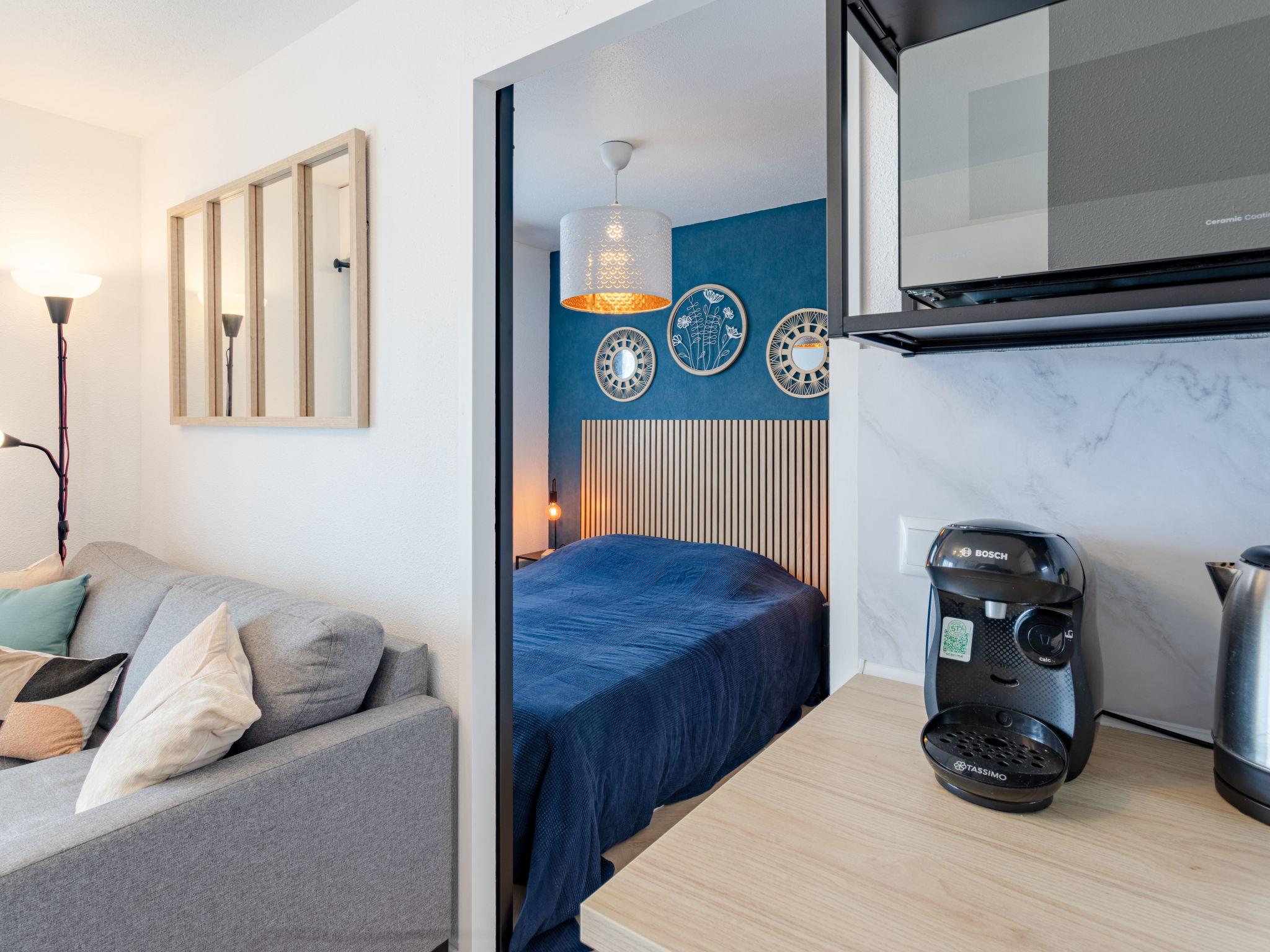 2-room apartment 22 m2 on 4th floor. Living/dining room with TV (flat screen). Exit to the balcony. 1 room with 1 french bed (140 cm, length 190 cm). Kitchenette (2 ceramic glass hob hotplates, toaster, kettle, microwave, electric coffee machine, Capsules for coffee machine (Tassimo) extra). Bath/WC. Electric heating. Balcony 2 m2. Balcony furniture. Facilities: Internet (WiFi, extra). Please note: 1 small pet/ dog allowed. Smoke alarm. Offer by a private individual according to Art. 155, IV of CGI.