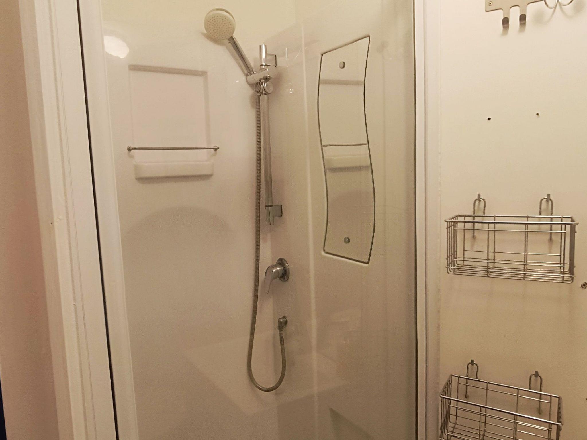 The interior of the flat has been carefully designed to ensure a comfortable stay. It has a cosy bedroom with a comfortable 140cm x 200cm bed, perfect for relaxing after a day of exploring. The bathroom with shower and WC promises convenience and simplicity. The kitchen is equipped with everything you need to prepare meals, including a two-plate cooker, mini-oven, microwave, Nespresso and filter coffee makers, as well as a variety of cooking utensils. A seating area with a sofa bed and a small coffee table complete the interior.
