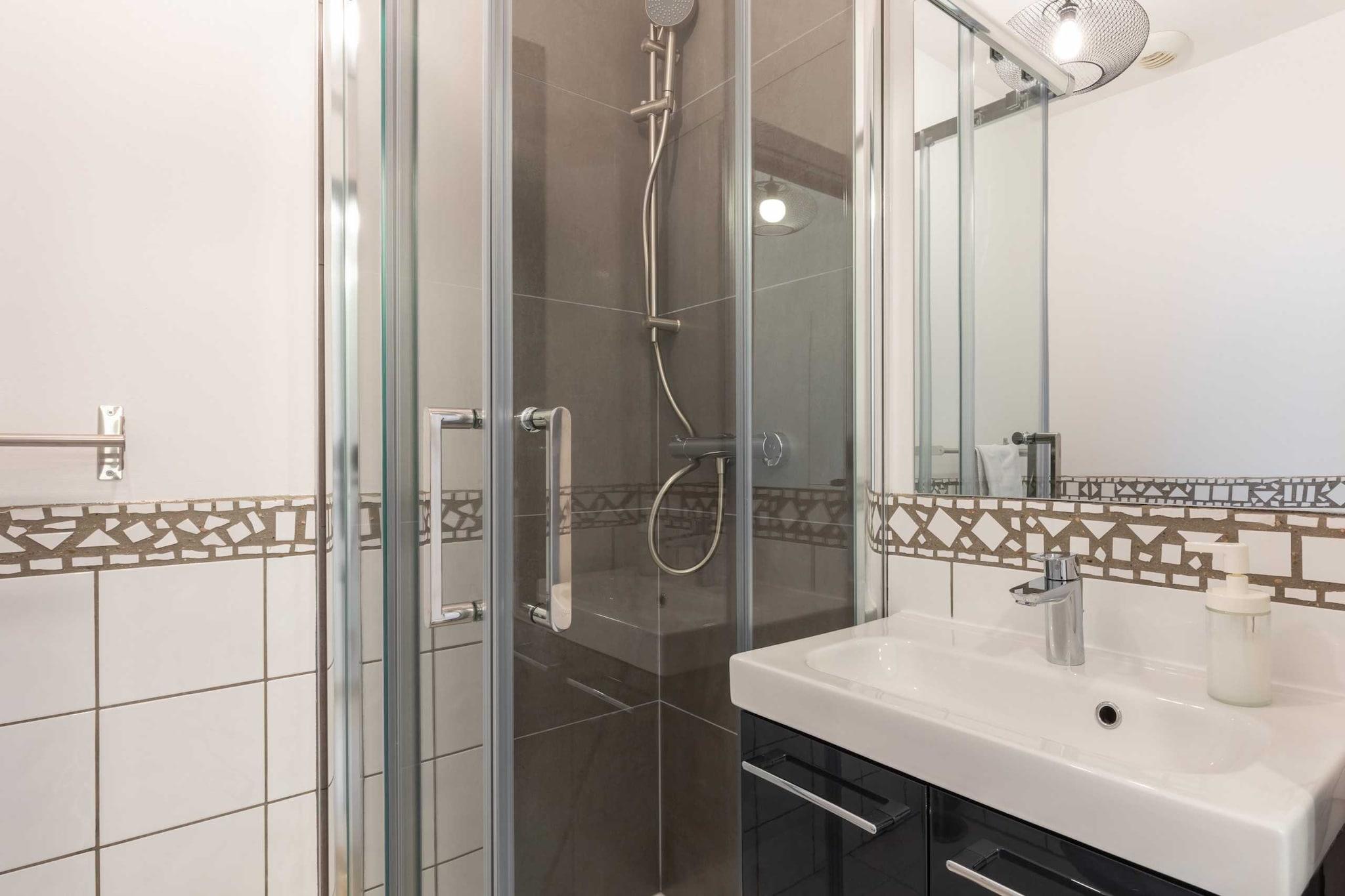 Stueetage: (Stue(dobbeltsovesofa, Fjernsyn), Køkken(elkedel, brødrister, kaffemaskine, mikrobølgeovn, køleskab, , ), soveværelse(varme, Queen Bed), soveværelse(dobbeltseng, varme), badeværelse(bruser, håndvask, toilet, føntørrer, Håndklæder inkl., , , , ), badeværelse(bruser, håndvask, toilet, føntørrer, Håndklæder inkl., , , , )) , , Internetadgang, strygejern, Cleaning Disinfection, Cleaning products, Enhanced cleaning practices, High touch surfaces disinfected, Long term stays allowed