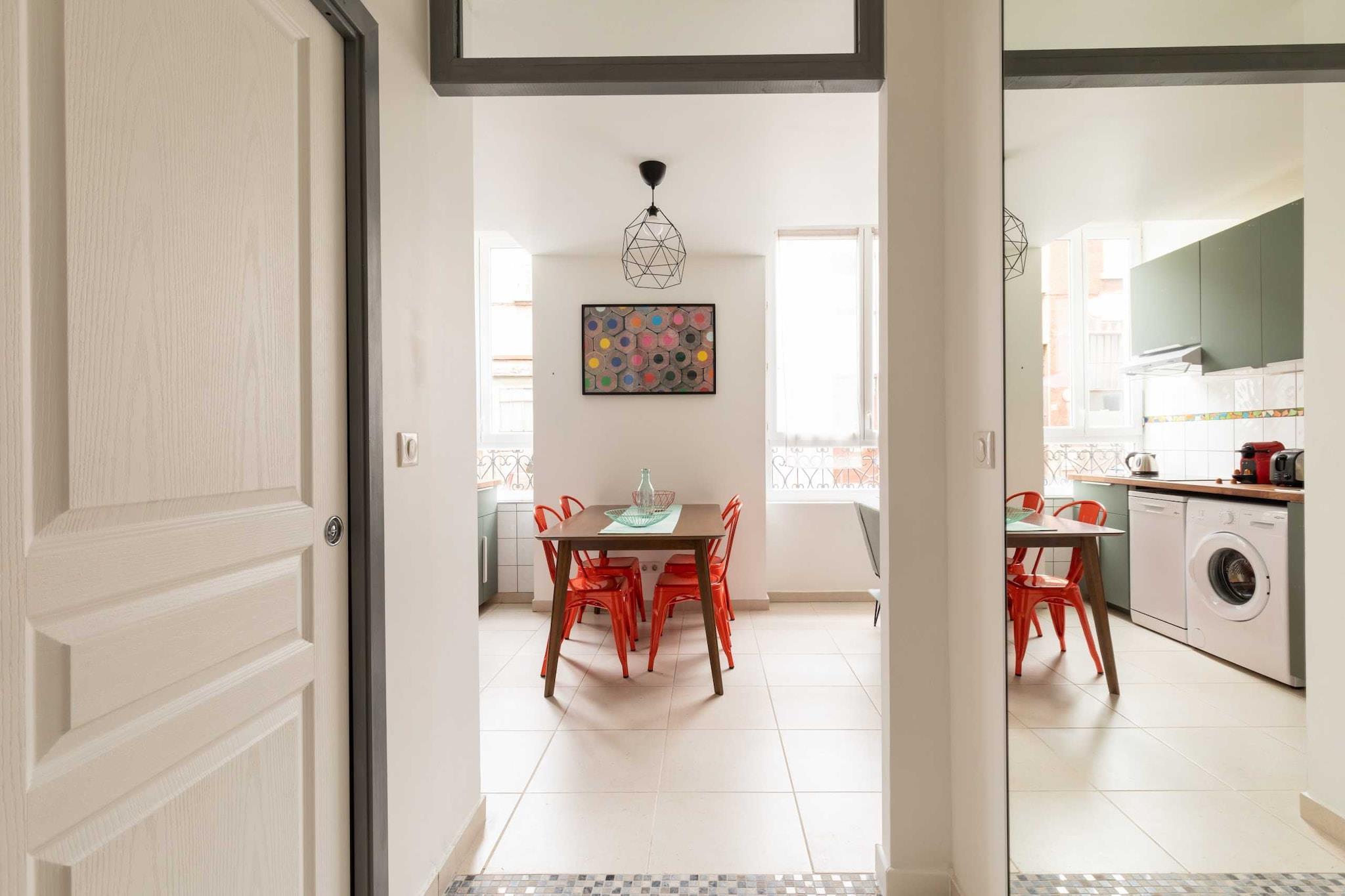 Du vil bo i vores smukke lejlighed, typisk for Lyon. Den er designet og indrettet af en anerkendt arkitekt og er skabt for at give dig en behagelig og komfortabel oplevelse. Lejligheden ligger lige ved Charpennes metrostation (linje A og B), hvorfra du kan nå Presqu'île på 5 minutter og Part-Dieu stationen på 3 minutter. Du er også kun få minutter fra Brotteaux-kvarteret, hvor du kan nyde det livlige liv i Lyon. Hvert eneste detalje tæller: komfortabelt sengetøj, linned og håndklæder, hårtørrer osv. Nyd dit ophold! ### Bemærk Rengøringsgebyret inkluderer rengøring ved ankomst og efter afrejse, samt husholdningslinned og håndklæder, toiletartikler og kaffe til din ankomst. Indtjekning i lejligheden foregår selvstændigt fra kl. 17.00. Tidlig indtjekning fra kl. 14.00 er mulig mod et ekstra gebyr på +20 EURO. Ved afrejse bedes du efterlade boligen i samme stand, som du fandt den ved ankomst. Rengøringsgebyret vil blive opkrævet igen, hvis afrejsetidspunktet ikke overholdes.