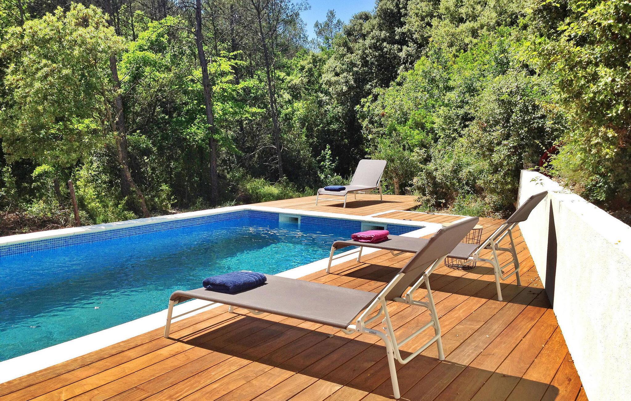 Denne moderne villa i Vins-sur-Caramy tilbyder et fredfyldt feriested. Beliggende i et fredeligt boligområde, er det kun en kort gåtur til landsbyen. Villaen har en veludstyret stueetage, som omfatter et åbent køkken med moderne bekvemmeligheder, en hyggelig spiseplads med rigelige siddepladser og et komfortabelt opholdsrum med underholdningsmuligheder. Stueetagen har også et ensuite soveværelse. Både soveværelset og opholdsstuen åbner ud til en terrasse og byder på smuk udsigt over den omkringliggende natur. Når man bevæger sig ned ad en trappe, afslører det nederste niveau et andet soveværelse og et børneværelse med køjesenge, begge med adgang til en terrasse, hvilket skaber et indbydende udendørsrum. Udendørs kan villaen prale af et sikret poolområde udstyret med en alarm, der tilbyder et perfekt sted til afslapning og leg i de varmere måneder. Udendørsområdet omfatter forskellige terrasser, komfortable siddepladser, liggestole, en hængekøje og en Weber Gasgrill til dejlige al fresco spiseoplevelser. Bemærk venligst, at kun villaens stueetage har aircondition. Vins-sur- Caramy ligger mellem Carcès og Brignoles ved siden af floden Caramy. Villaen ligger 300 m fra landsbyen (bageri, købmand, lille restaurant). Marked lørdag morgen på Brignoles. GR-stier, vandrestier i nærheden. Fiskeri ved Carcès-søen (10 km). Brignoles årlige middelalderfestival omkring den 15. august. Alle butikker i Brignoles ved 9 km.