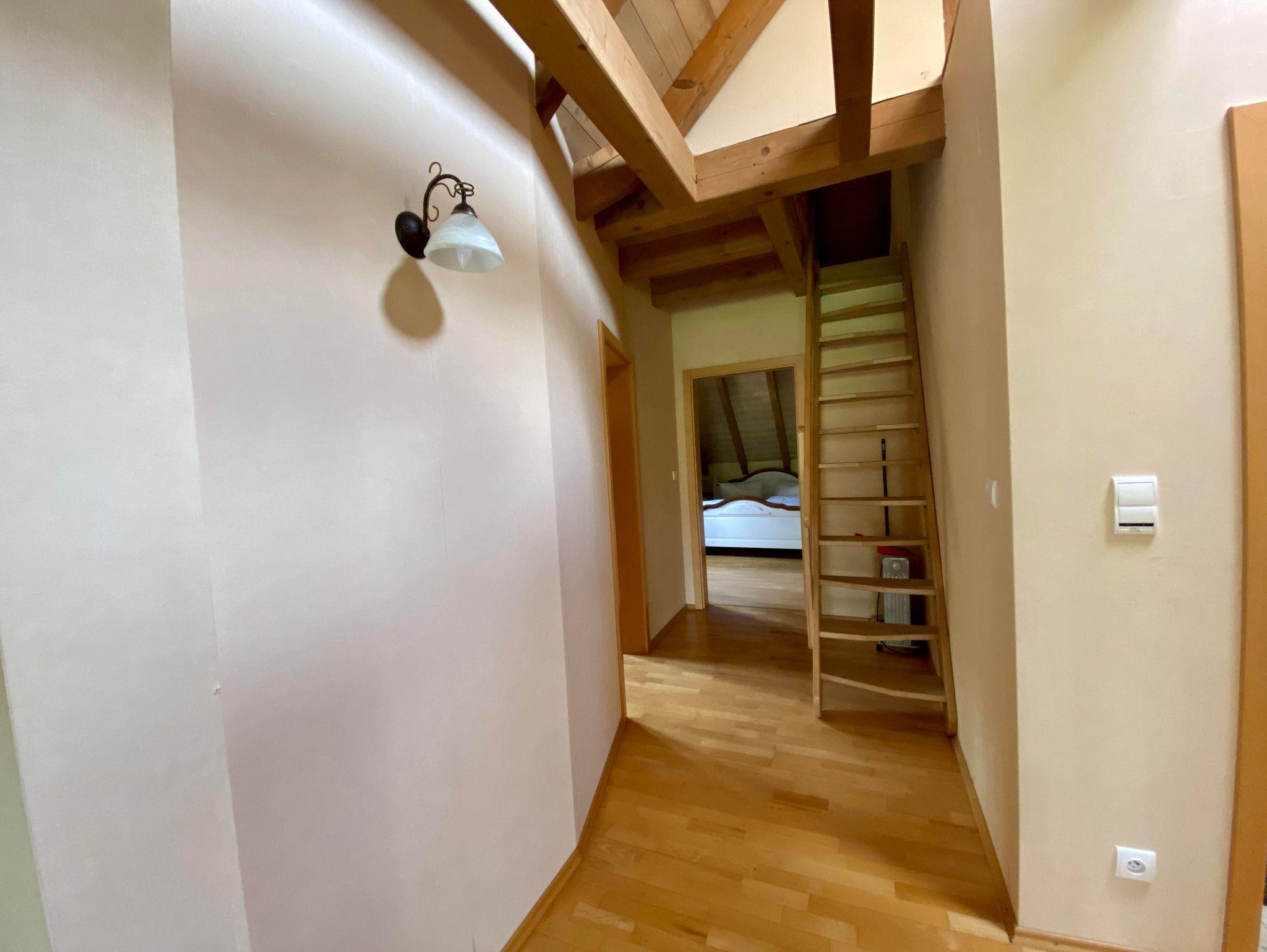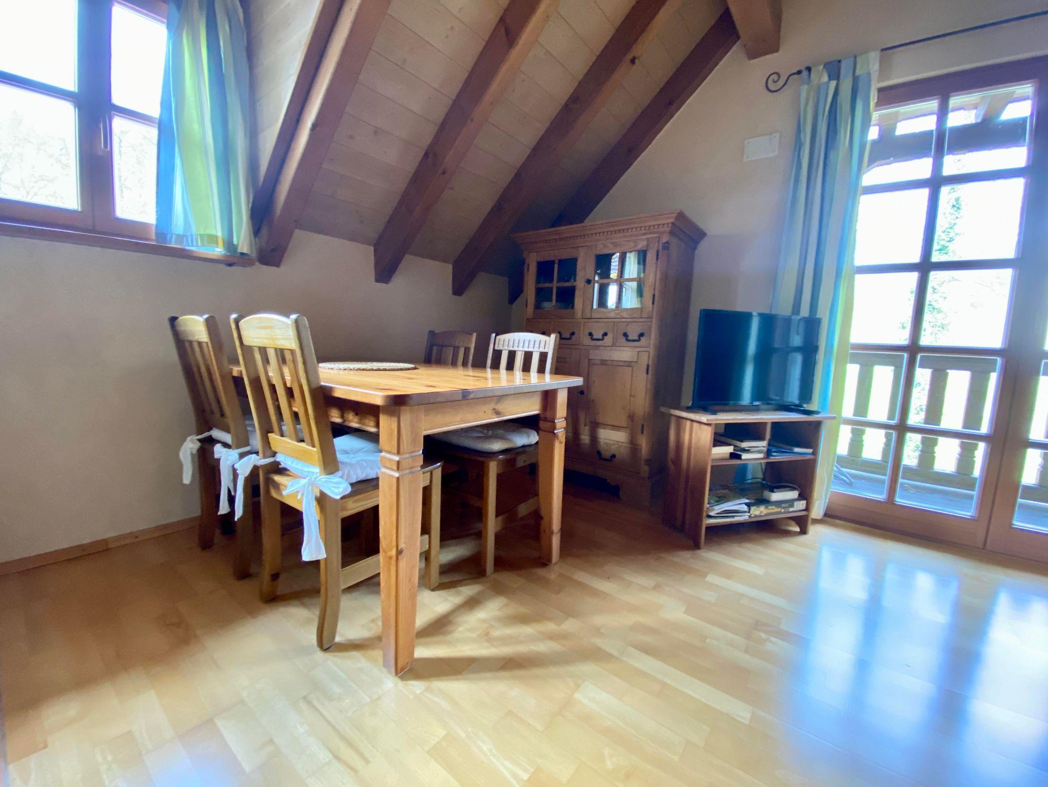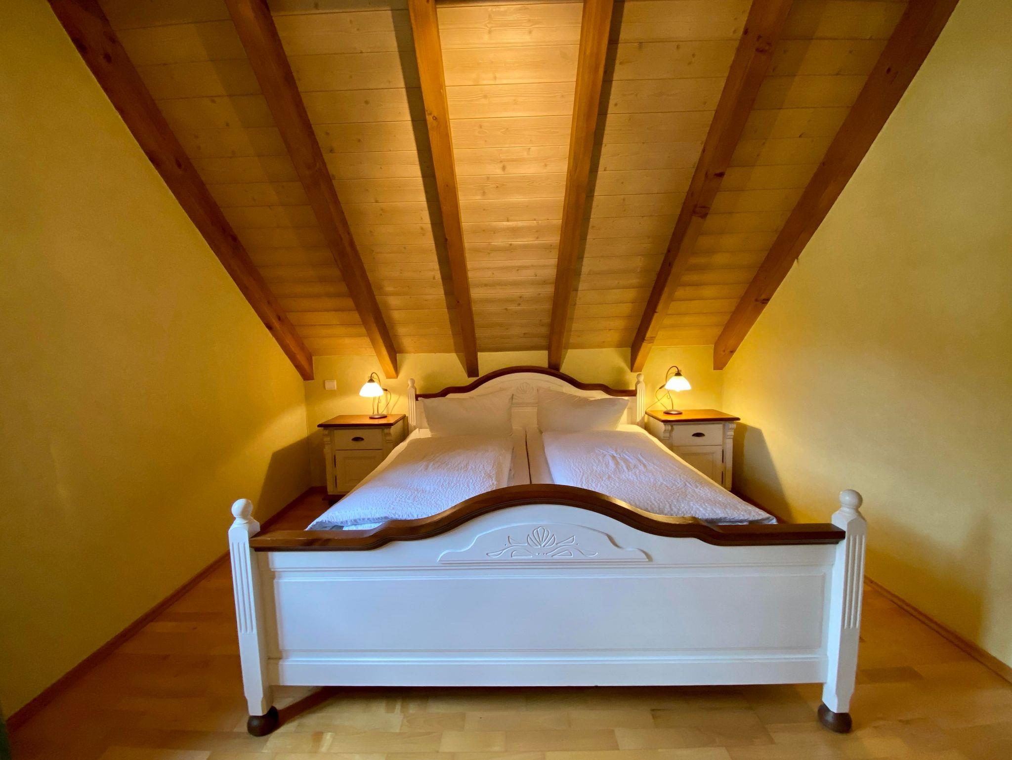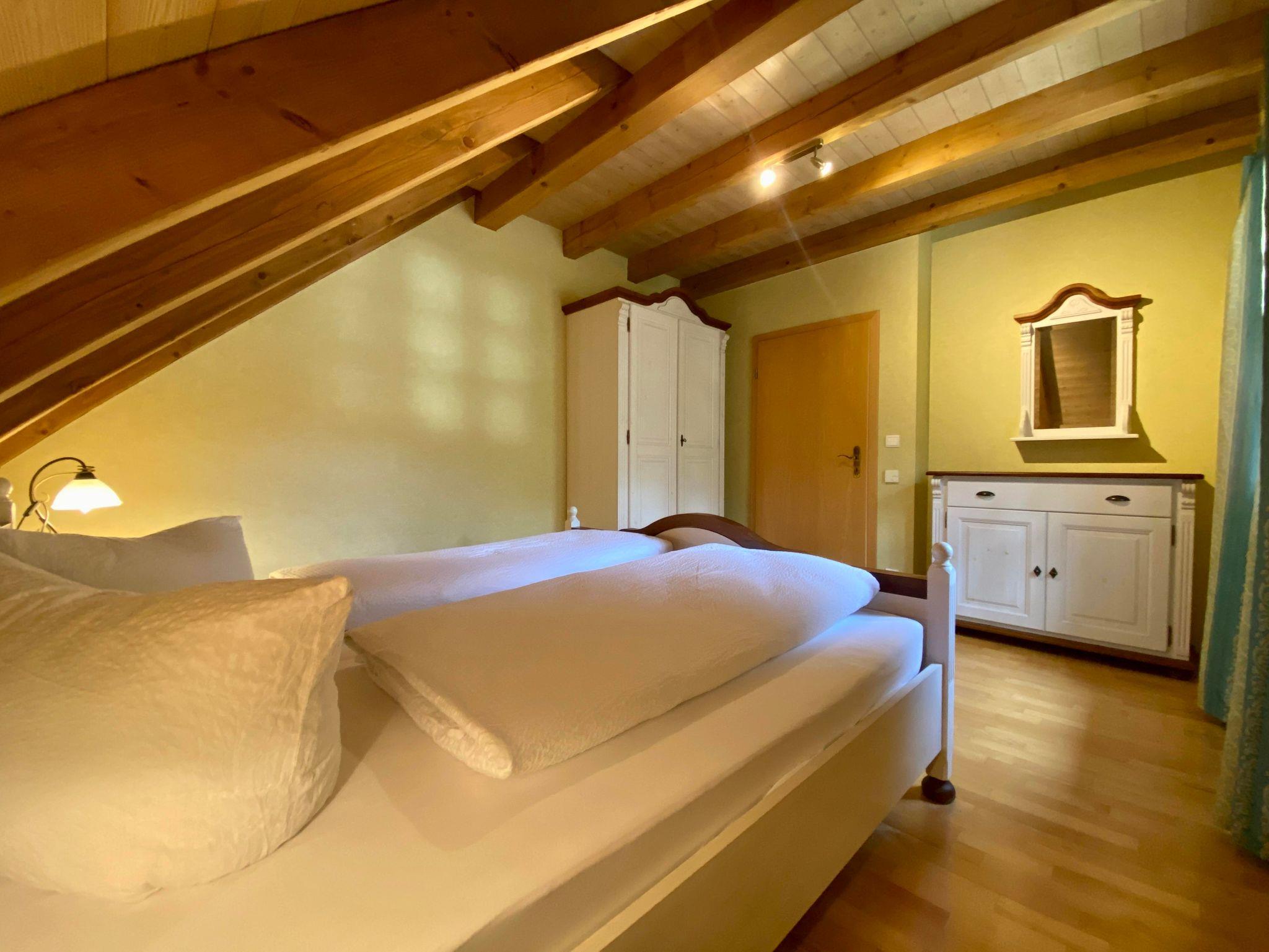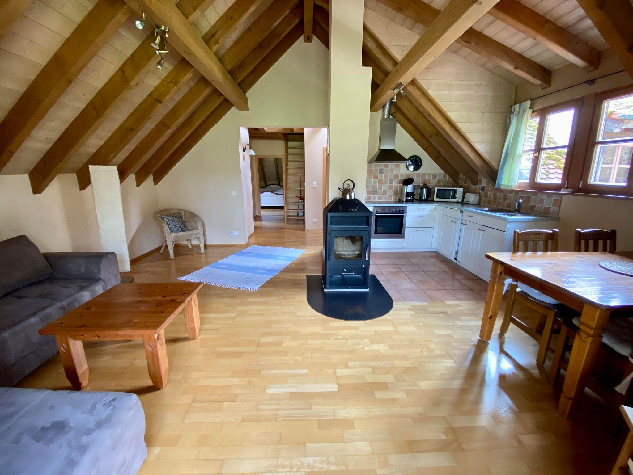 Die Wohnung ist für 2-4 Personen geeignet. Sie besteht aus einer großen Wohnküche mit offenen Dachbalken, einem separaten Schlafzimmer, Bad sowie einer Schlafnische mit Dachfenster. Die Räume haben durchgehend Parkettböden.