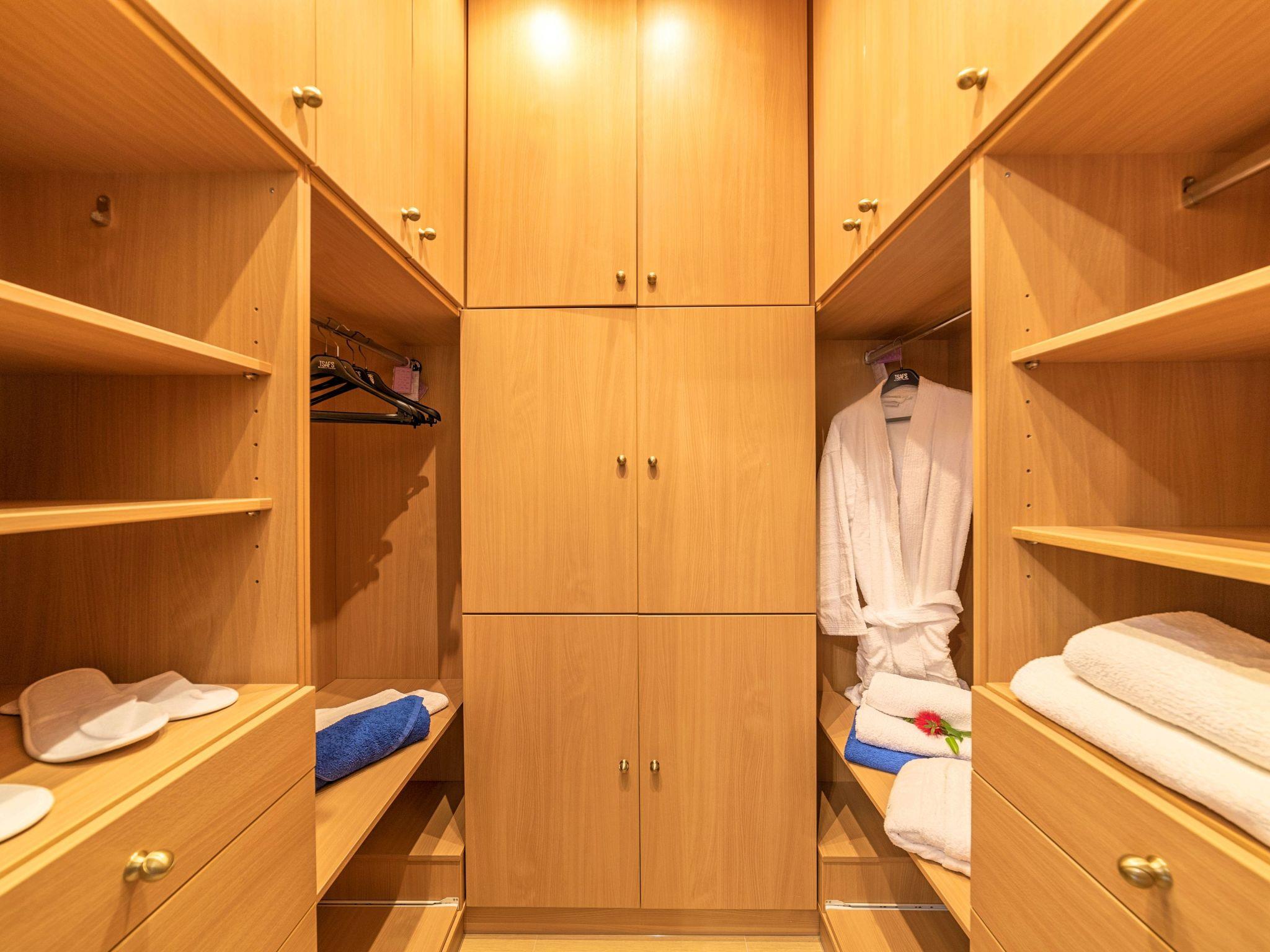 * A Master Bedroom with a queen size double bed, balcony, TV set, private ensuite bathroom and ensuite private wardrobe.
