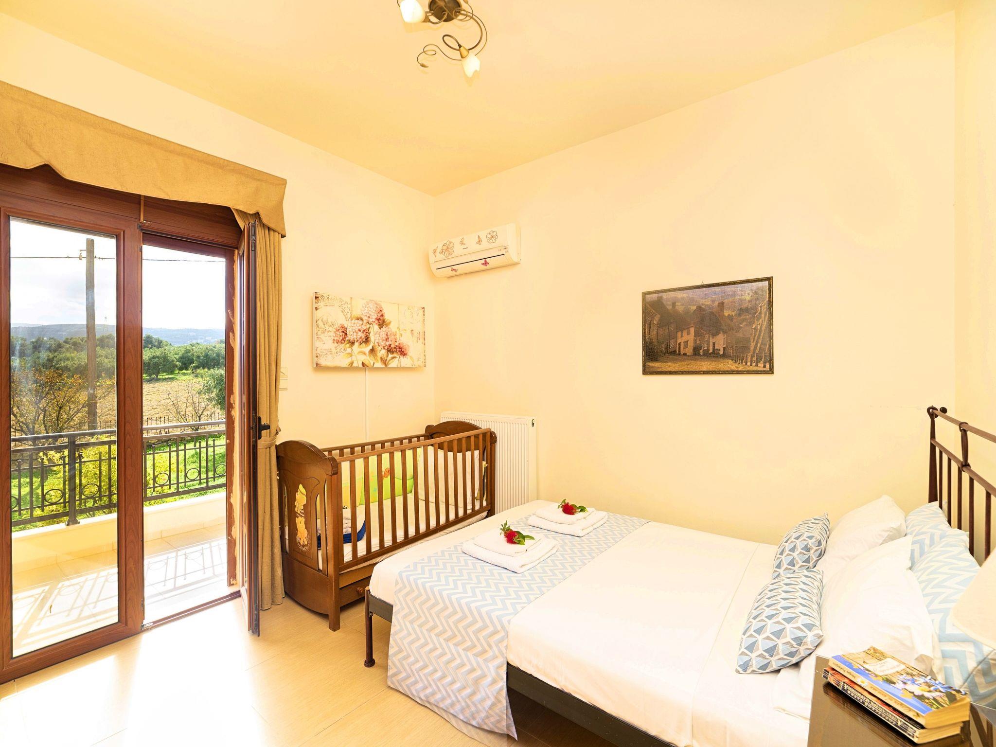 * A third bedroom with a queen size double bed, baby cot and access to a balcony.