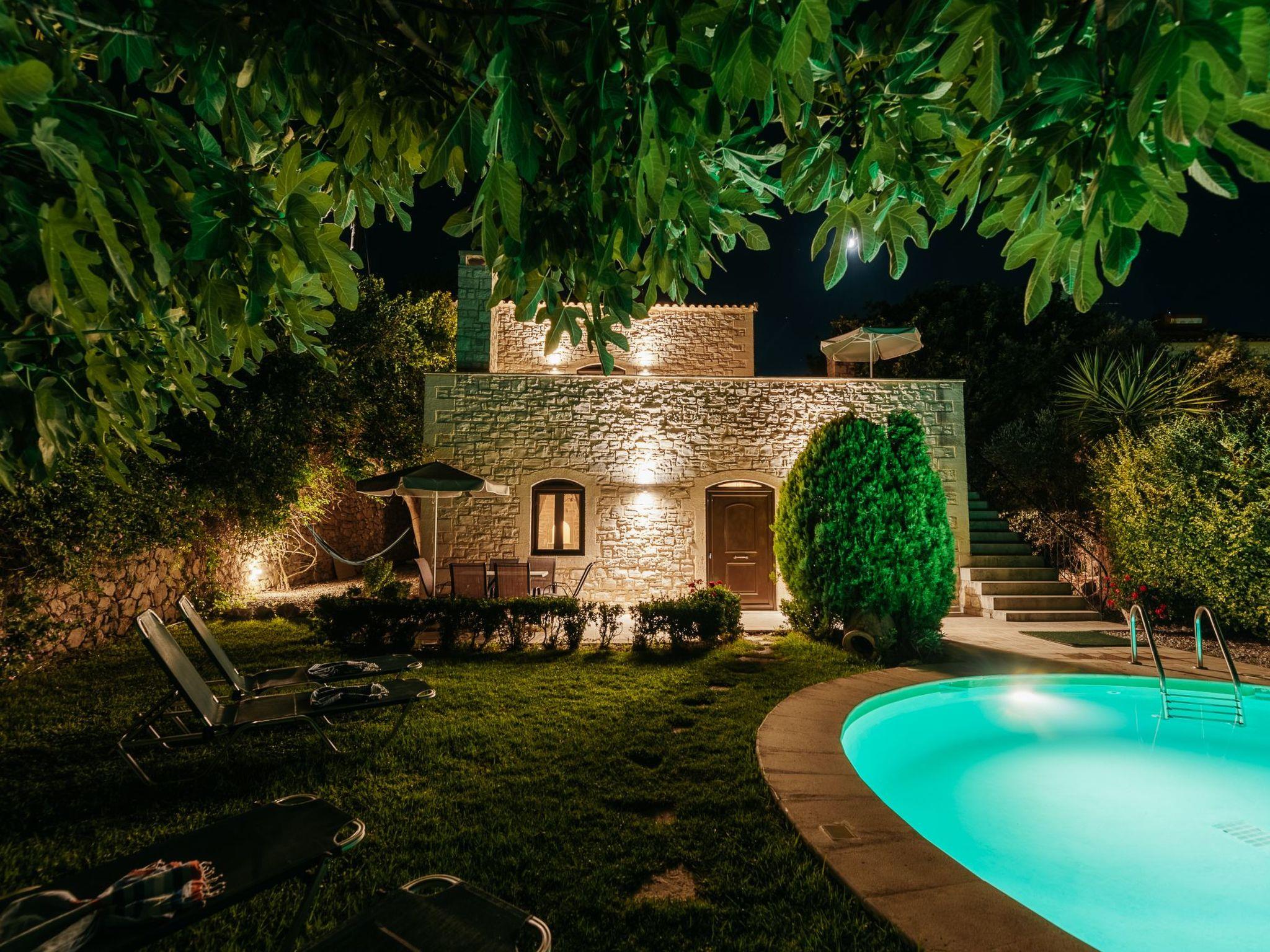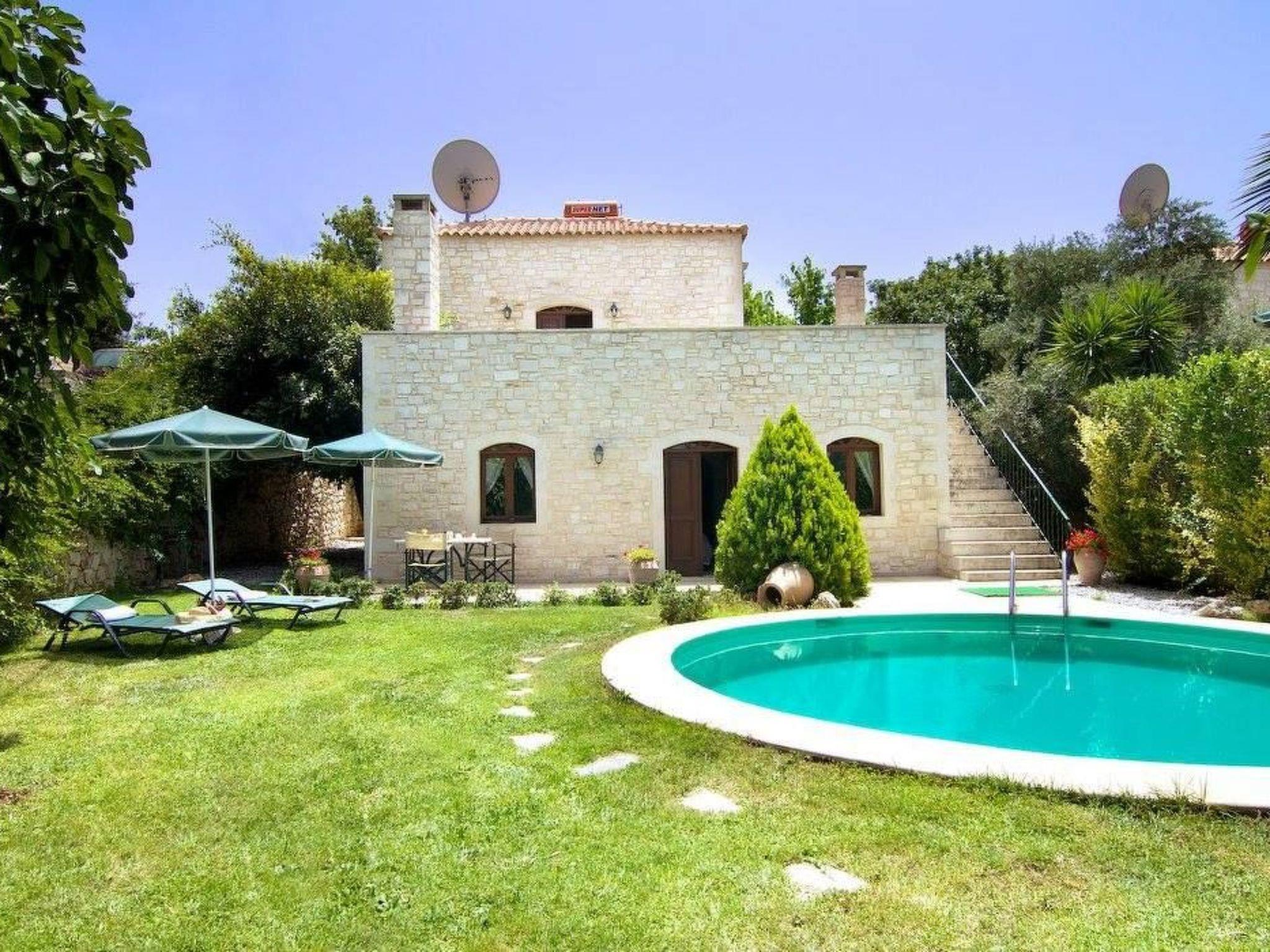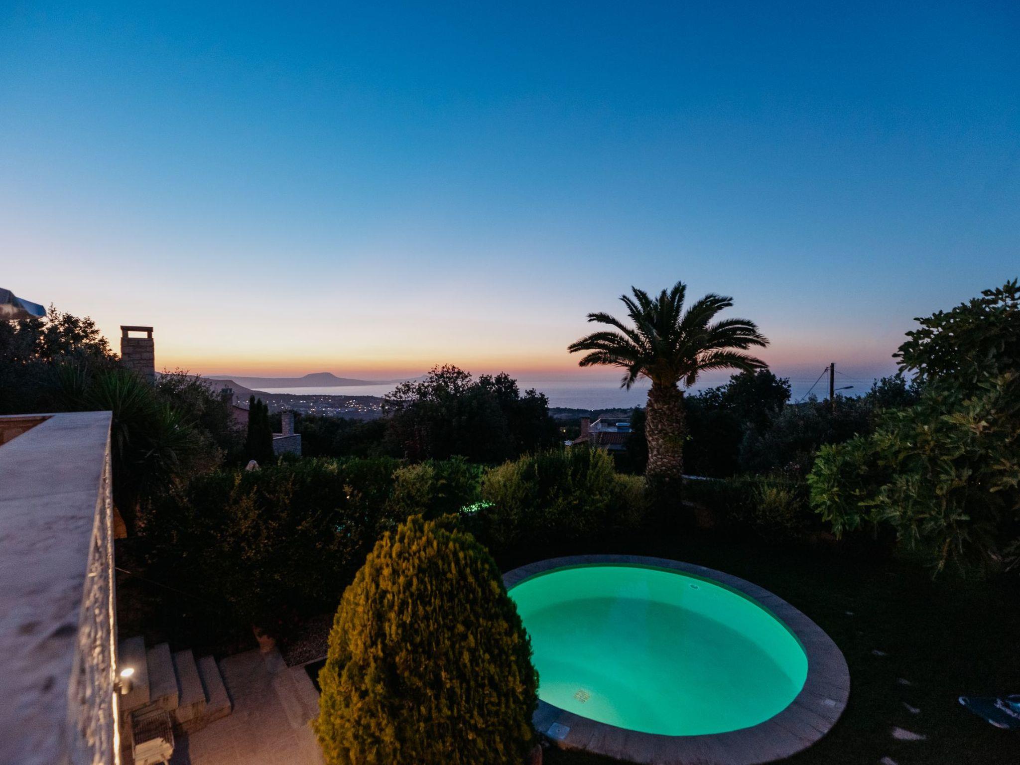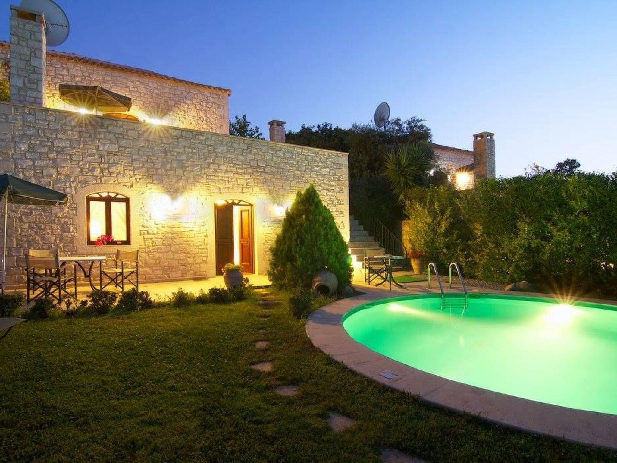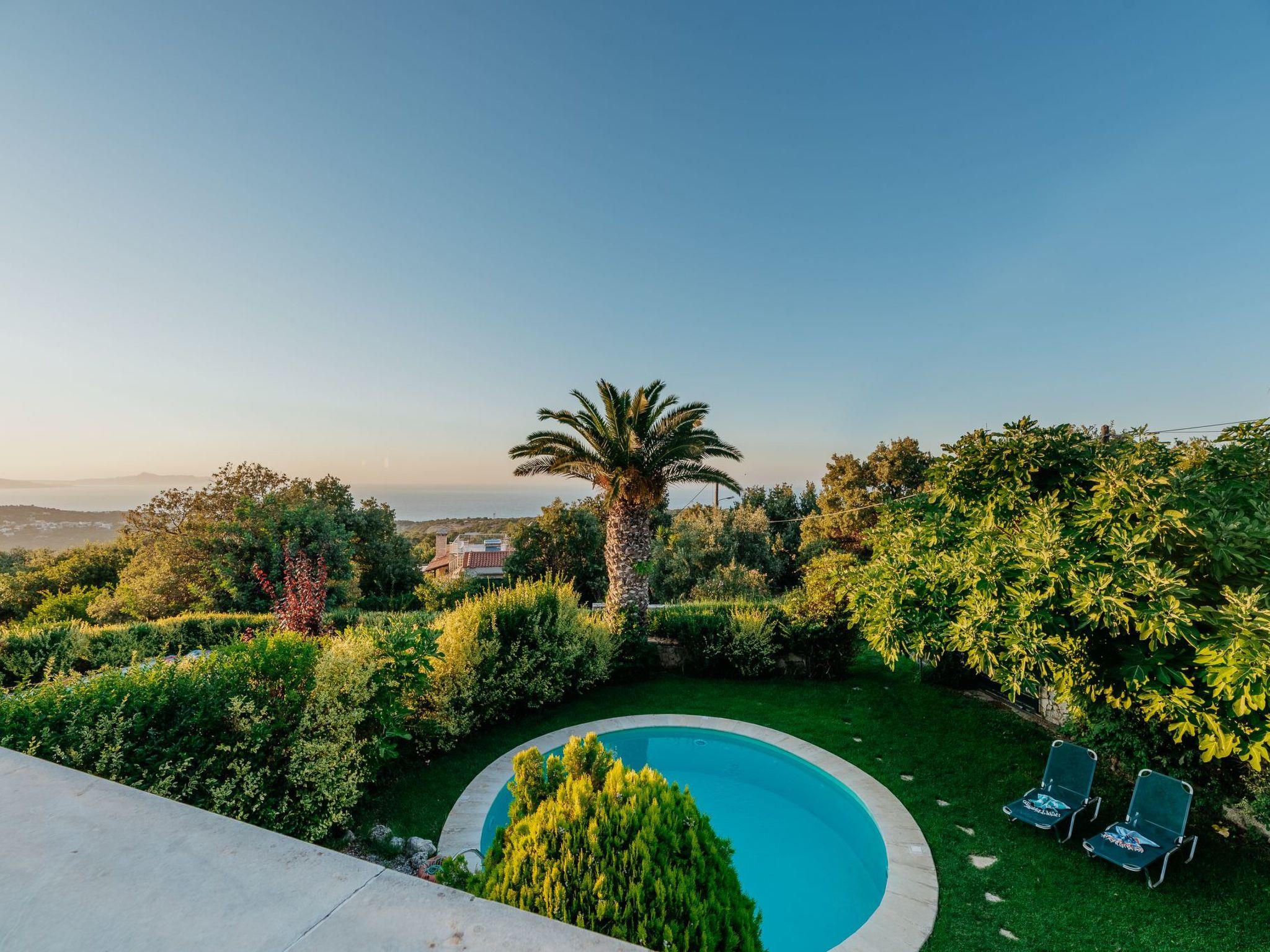 Outside the stone villa Erato there is a terrace on the ground floor with direct access to the private swimming pool in the garden. On the upper floor there is a very large veranda, which can be reached both via an external staircase and an internal staircase. From this veranda there is a truly fantastic view of the sea and the White Mountains (2,500 metres above sea level and covered in snow from November to May). Here you can enjoy a wonderful sunset in the evening hours. The garden area has a lawn.