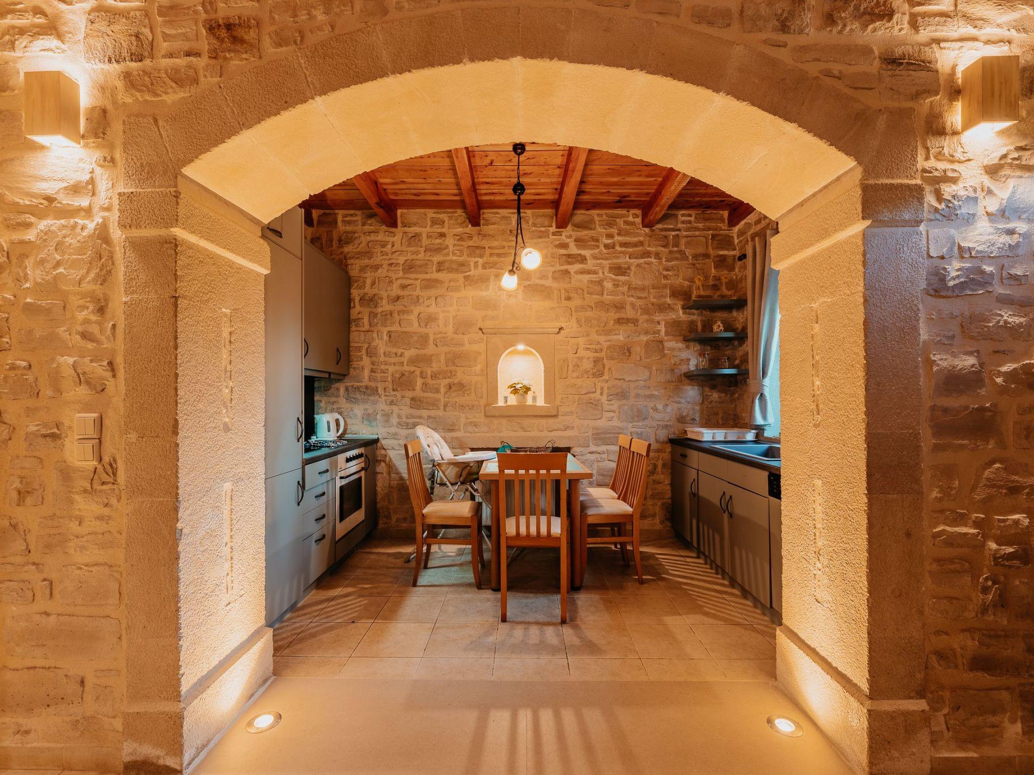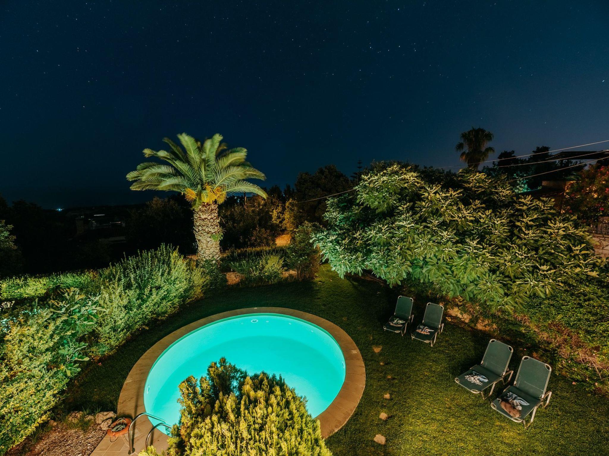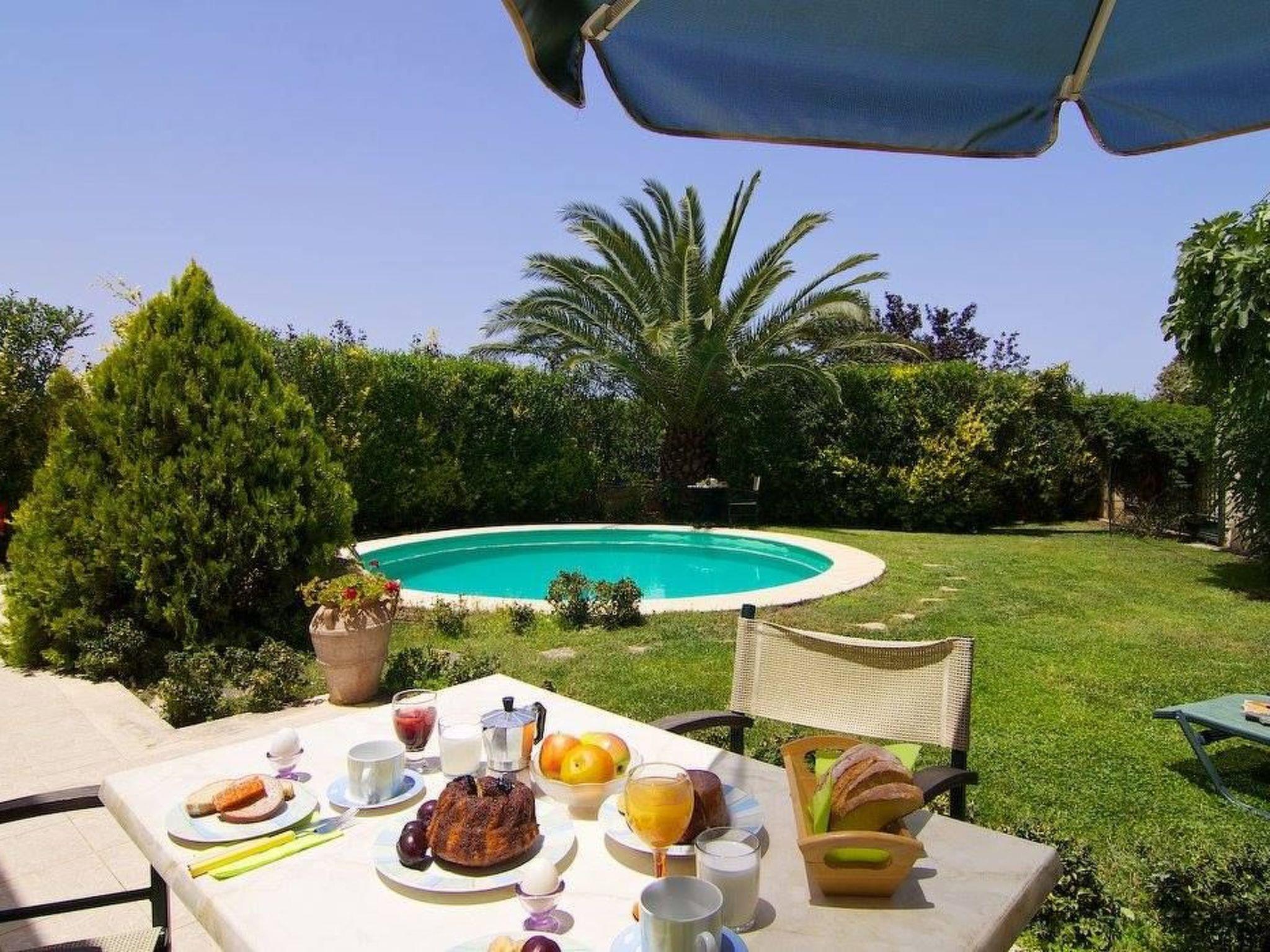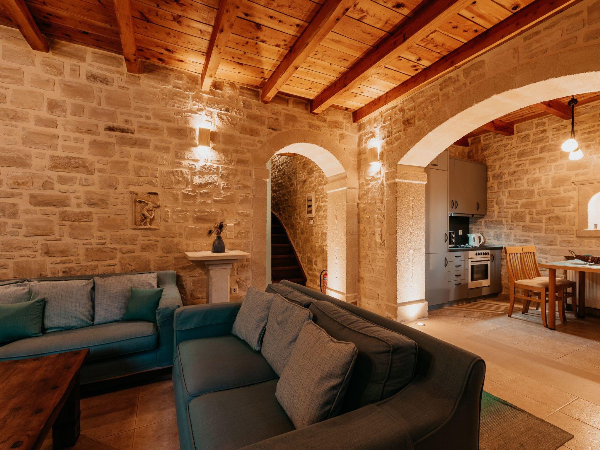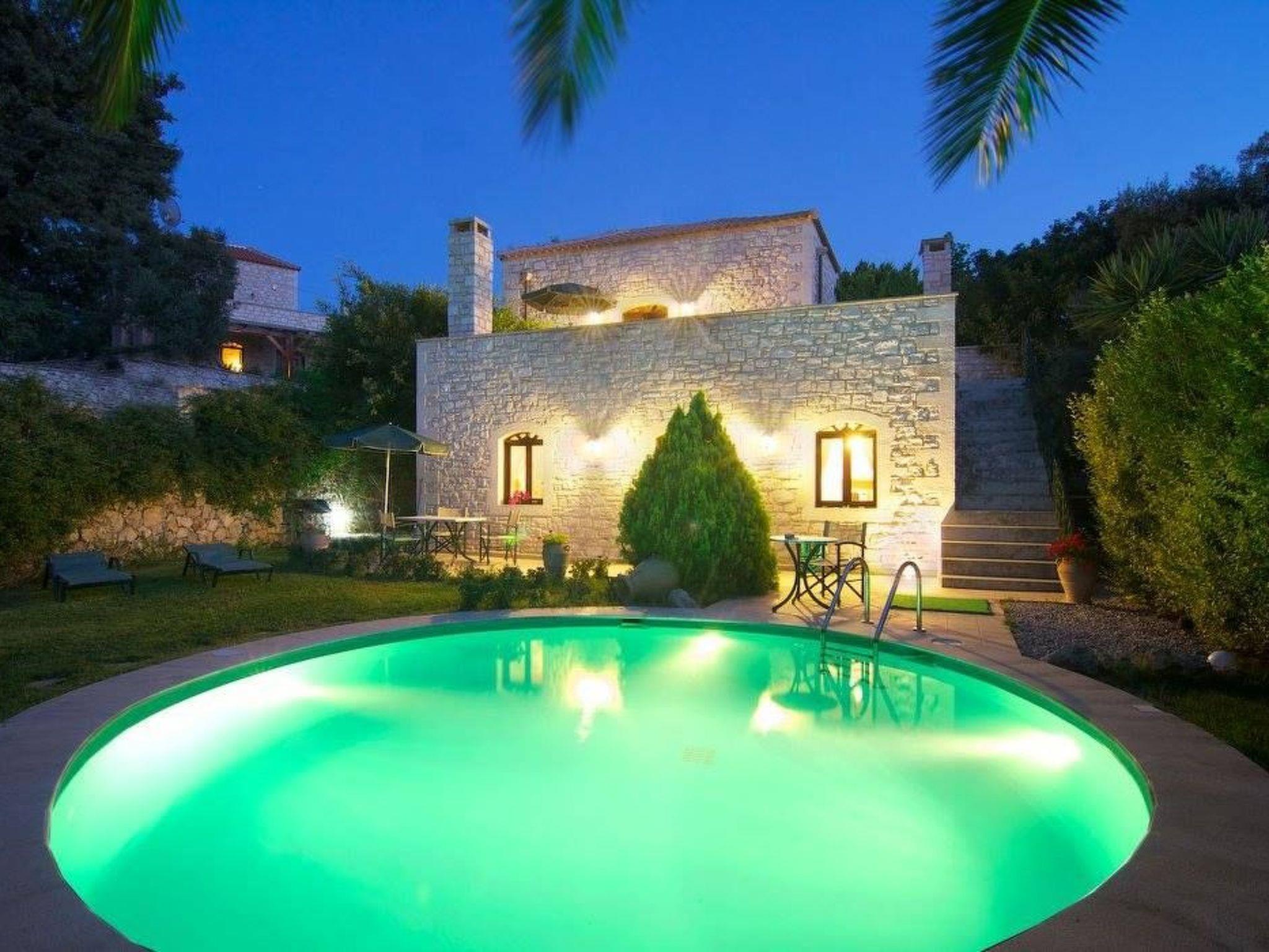 Outside the stone villa Erato there is a terrace on the ground floor with direct access to the private swimming pool in the garden. On the upper floor there is a very large veranda, which can be reached both via an external staircase and an internal staircase. From this veranda there is a truly fantastic view of the sea and the White Mountains (2,500 metres above sea level and covered in snow from November to May). Here you can enjoy a wonderful sunset in the evening hours. The garden area has a lawn.