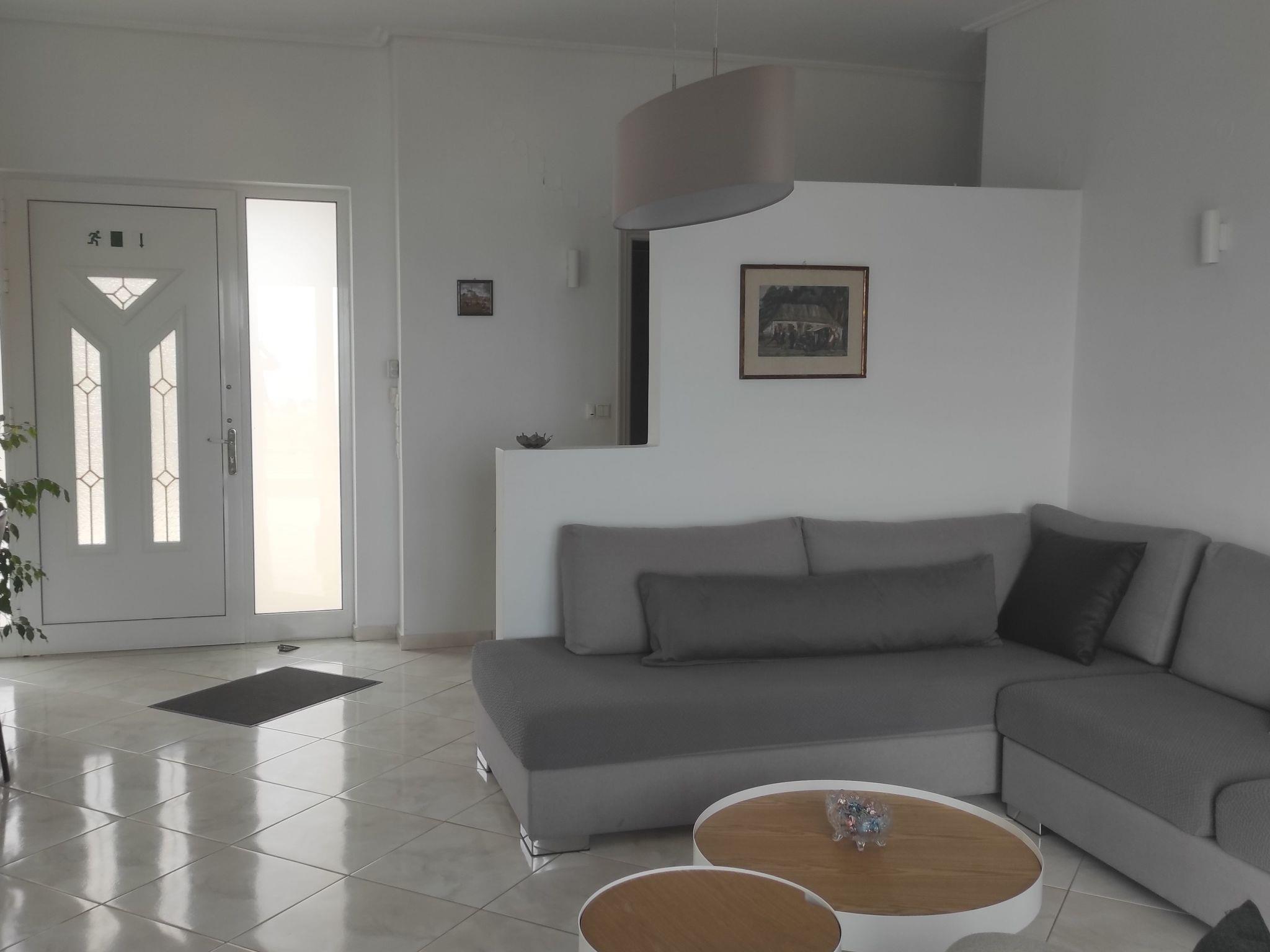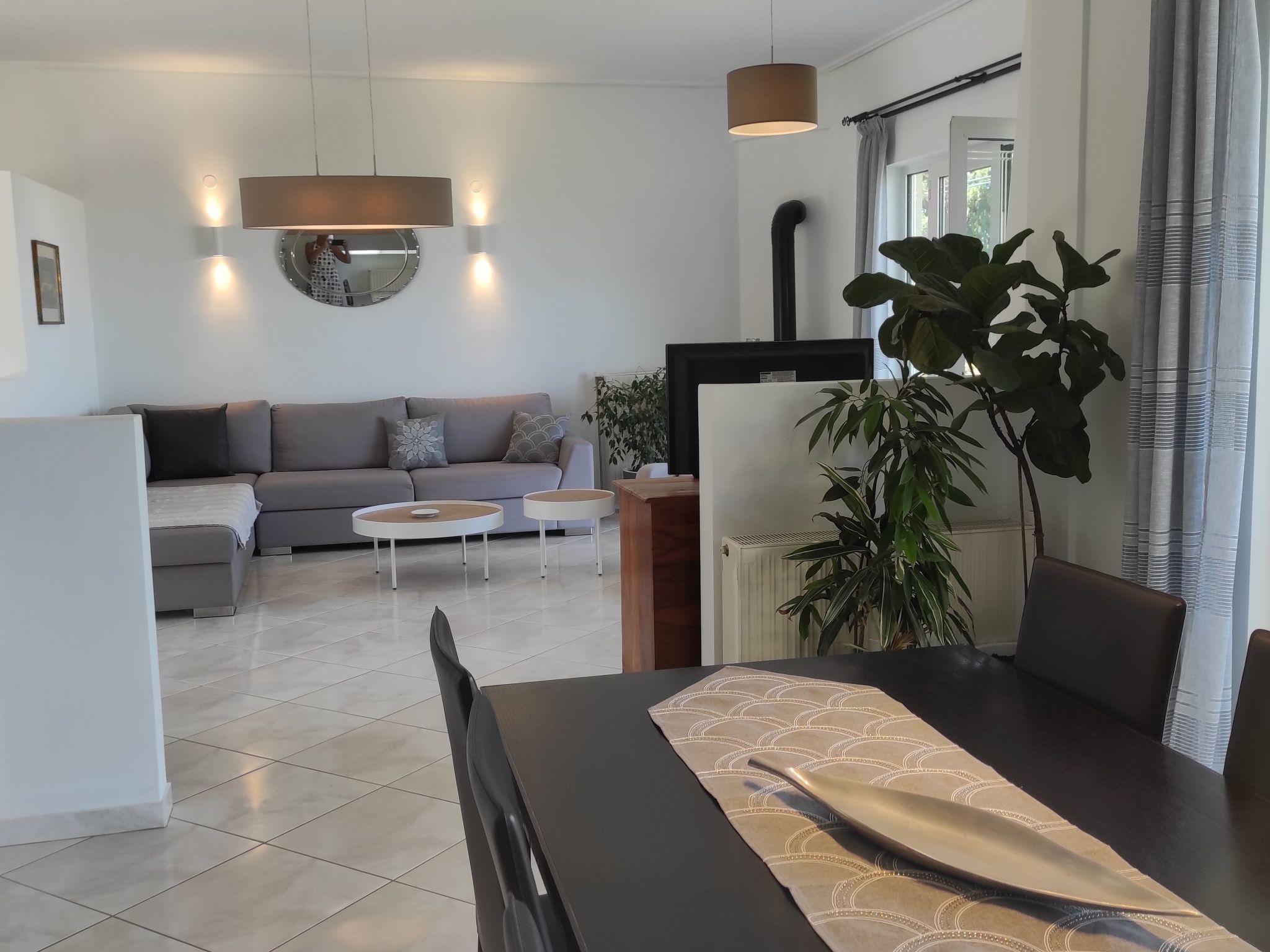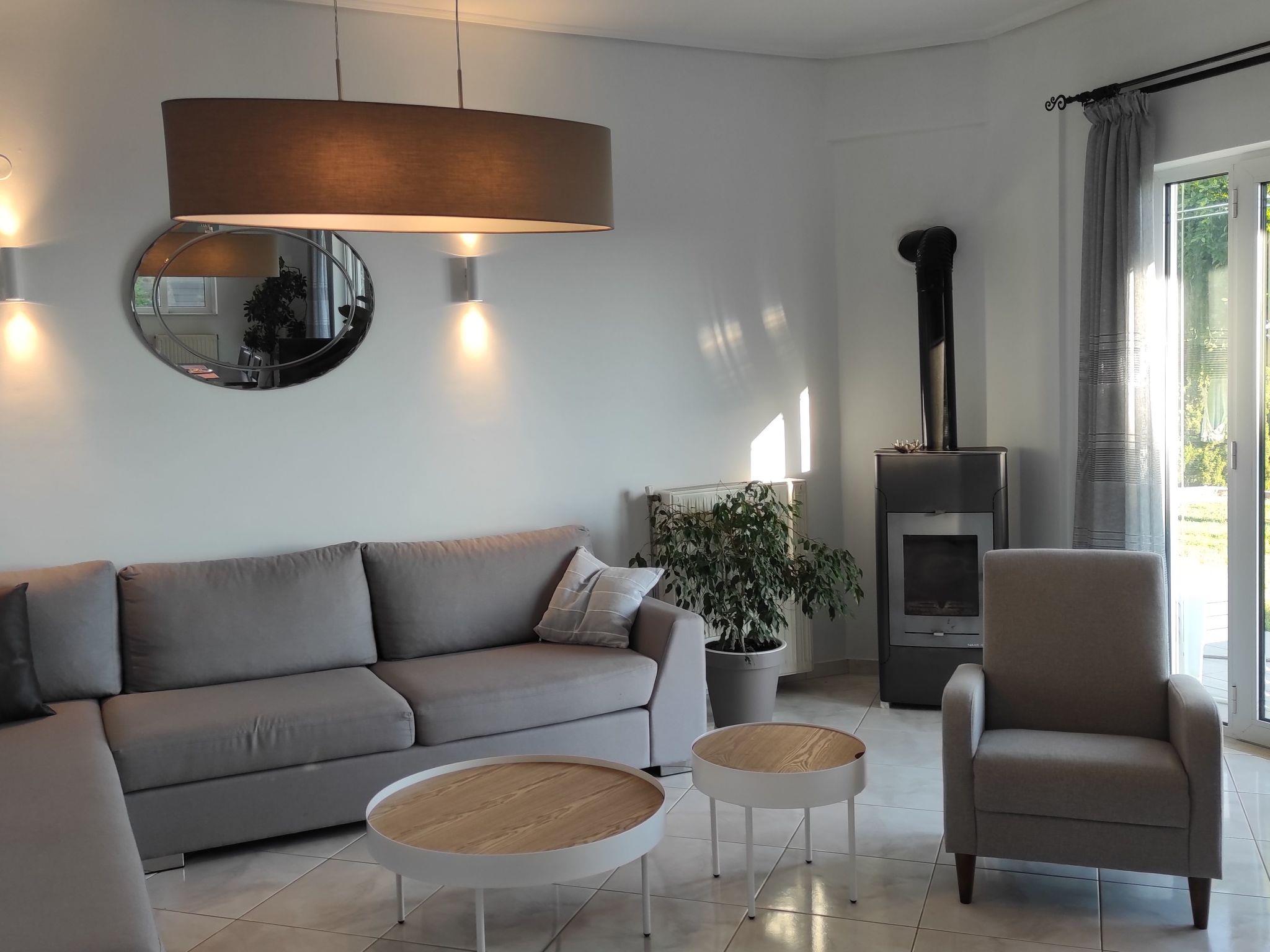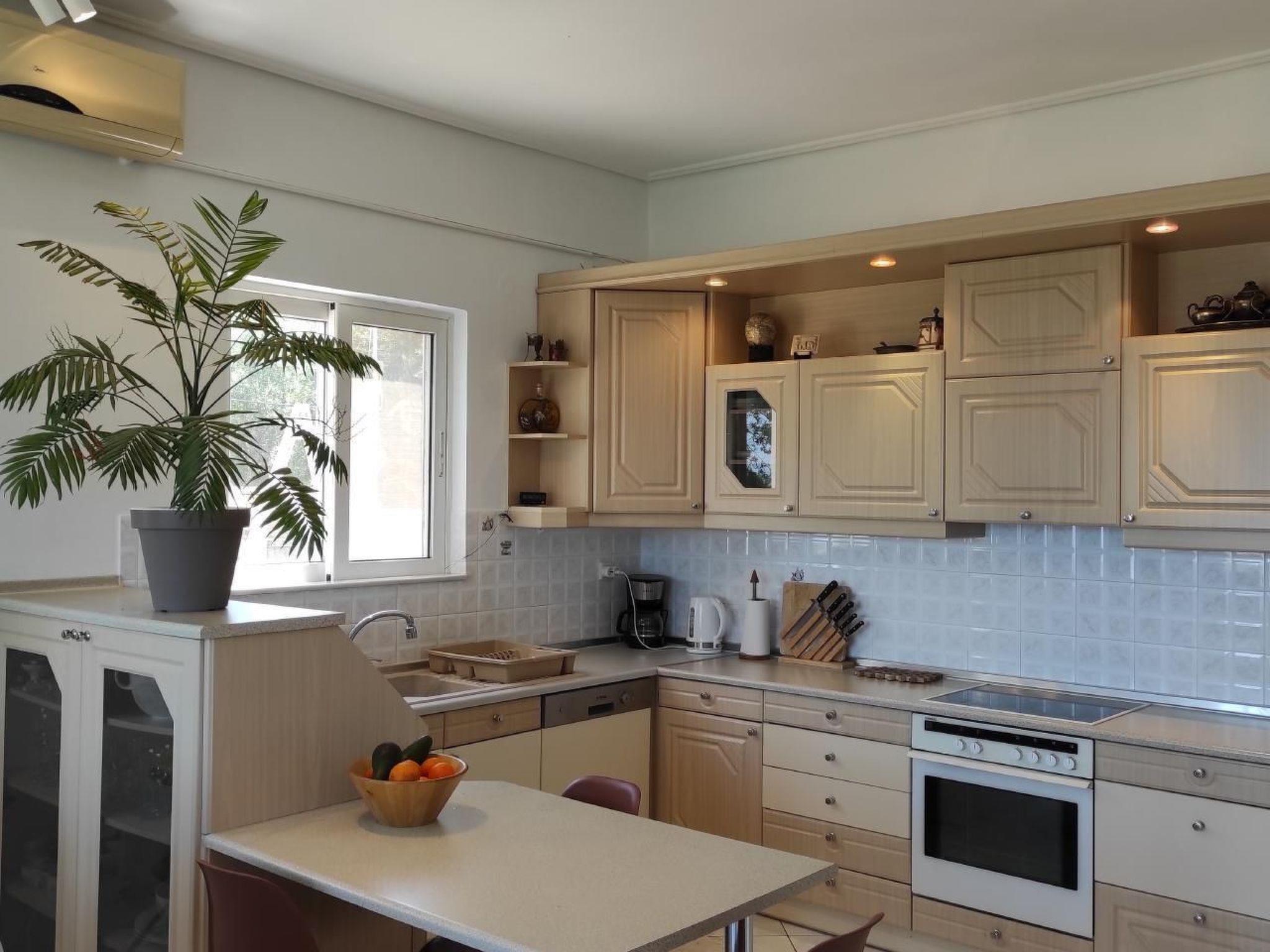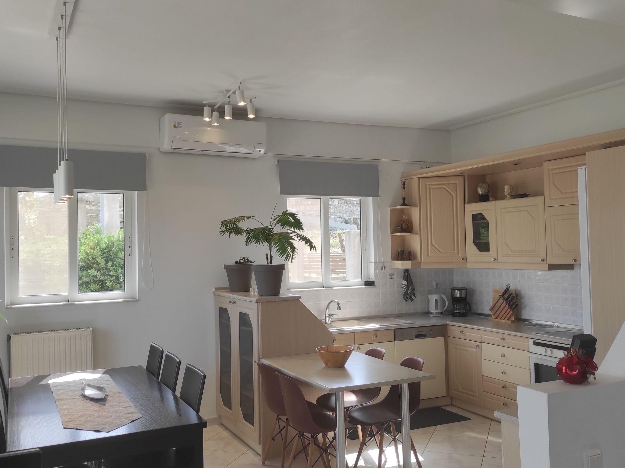 Indoors, Sea Breeze Villa boasts a generously sized living space of 130 sq.m., effortlessly accommodating up to six guests in its three splendid bedrooms. The living area, a sprawling 75 sq.m open space, features an elegantly appointed living room, dining area, and kitchen. Modern comforts are not spared, with air conditioning, a SMART TV with satellite connections, and wireless internet access ensuring your stay is both comfortable and connected. The kitchen doesn't fall short, equipped with everything needed for preparing delightful meals, including a dishwasher, microwave, oven, and more, promising a seamless home-cooking experience.