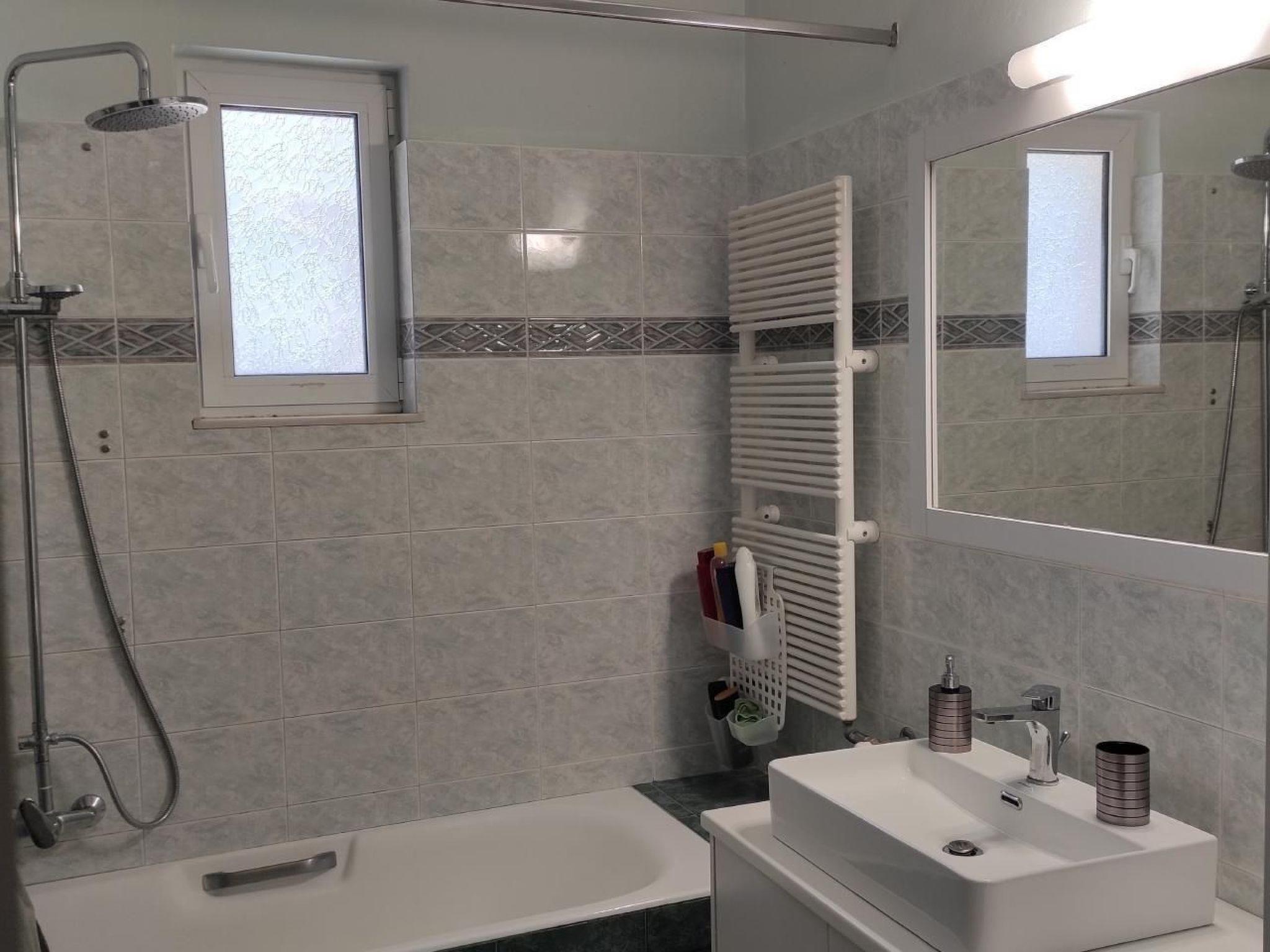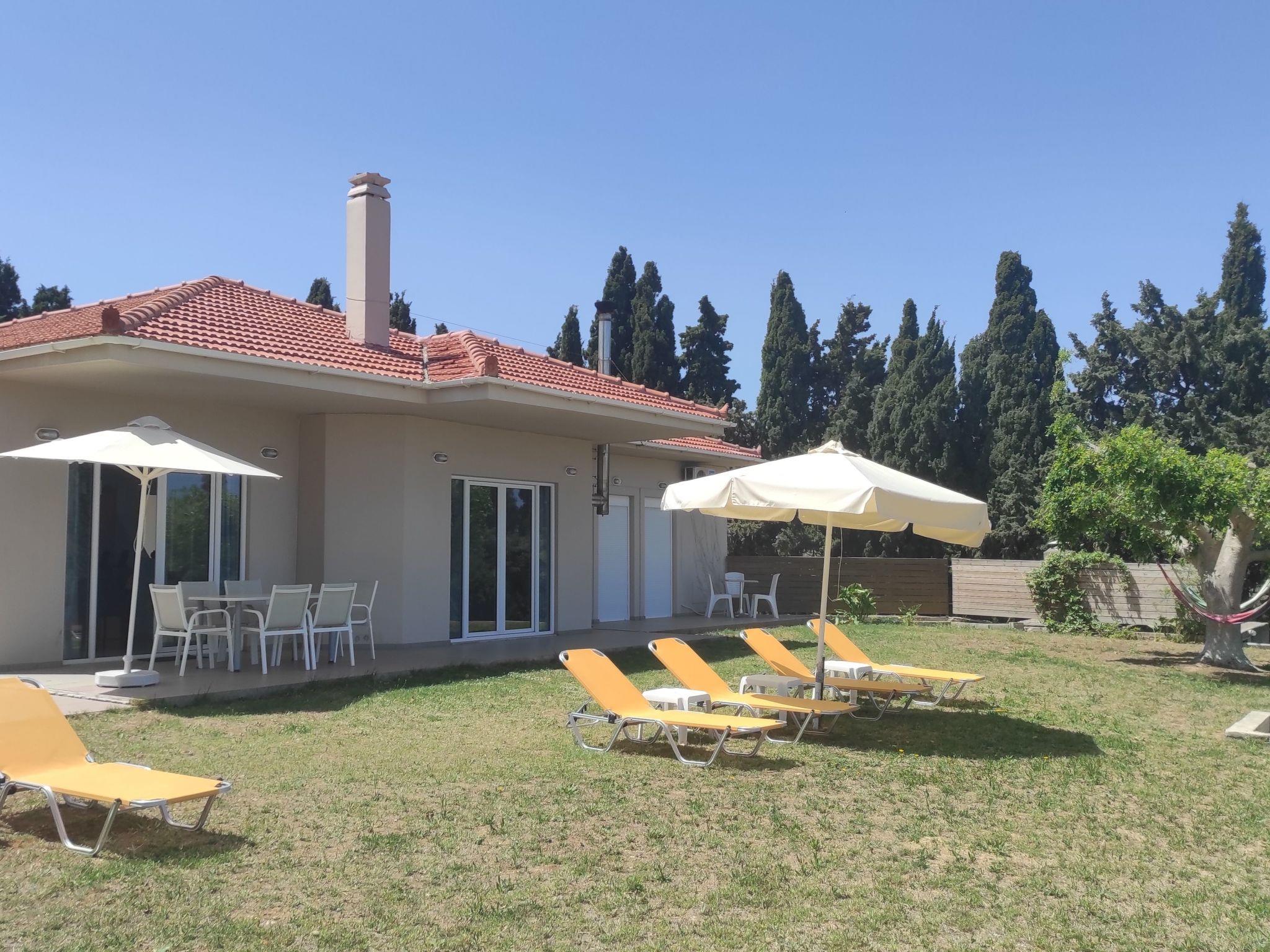 The villa's outdoors are equally impressive; a 1000 sq.m. garden opens up to a world of relaxation and leisure. An outdoor portable barbecue sets the stage for memorable sea view dinners on the terrace or breezy breakfasts amidst greenery. Guests can unwind on sun recliners, find solace in shaded hammocks under a massive tree, all while enjoying the serene, private setting. The property, fully fenced, ensures privacy and includes private parking (2), blending convenience with tranquillity.
