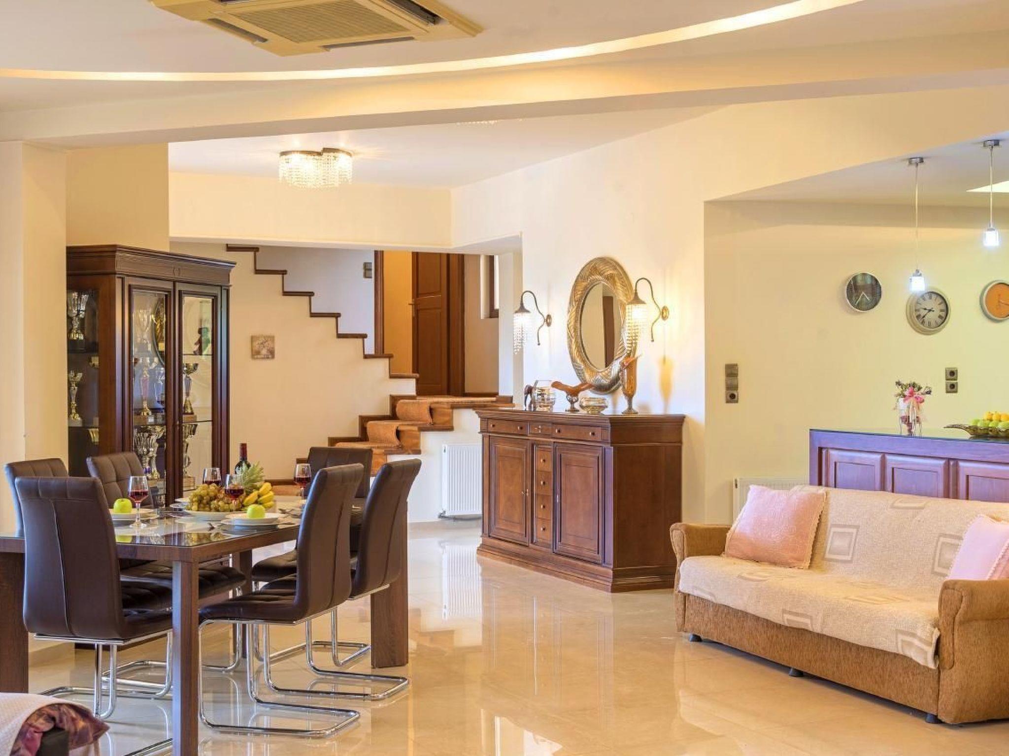 Welcome to Villa Evelina. Located in a scenic area amidst the crystal-clear waters of the Cretan Sea and the blue cobalt sky, Villa Evelina embraces the unique style of the modern living. Is located on a cliff over Adelianos Campos, Rethymnon, just 2km away from the long sandy beach. Within 5.000 m2 of unspoiled beauty exudes serenity and peacefulness in the most picturesque of settings. Surrounded by manicured lawns, trees and blossoming flowers, overlooking the indigo Cretan Sea is the right place to share moments of relaxation and pleasure, in the harmony of the nature. Enjoy your stay at one of the finest Cretan Villas and experience the ultimate in luxury and refinement. At our Villa we have established a reputation for our warm welcome and hospitality. What makes us unique is the combination of tradition and modernity. What distinguishes us is that we treat our guest as friends. We invite you to share our small world, a world of dreams, comfort and quality.Short descriptionOther : Non-smoking houseShort description 1Number of kitchens : 1SurroundingNearby sports facilities : Basketball, Canoeing, Diving, Fishing, Golf course, Mountain climbing, Paragliding, Sailing, Surfing, Tennis, Water skiingRental Facilities : Bicycle rental service, Boat rental service, car rentalGarden and outdoorGarden facilities : Garden furniture provided, Grill, PavilionOn-site leisure facilities : Outdoor swimming pool exclusive use, Swimming poolService benefitsService facilities (may incur additional costs) : House personnel, Transfer service (airport etc)Service benefits 1Other : Housekeeping and linens change once per week included in the price.