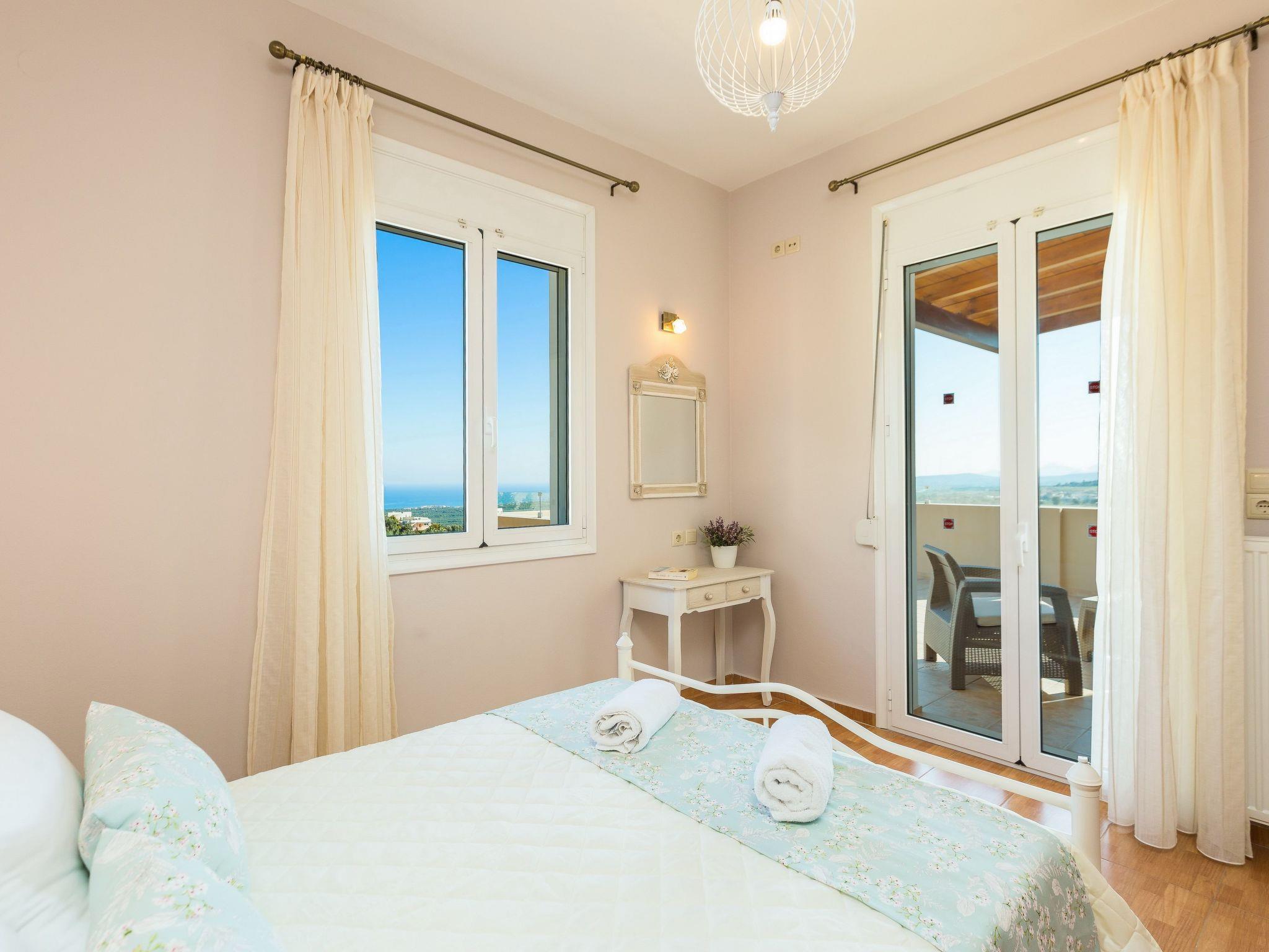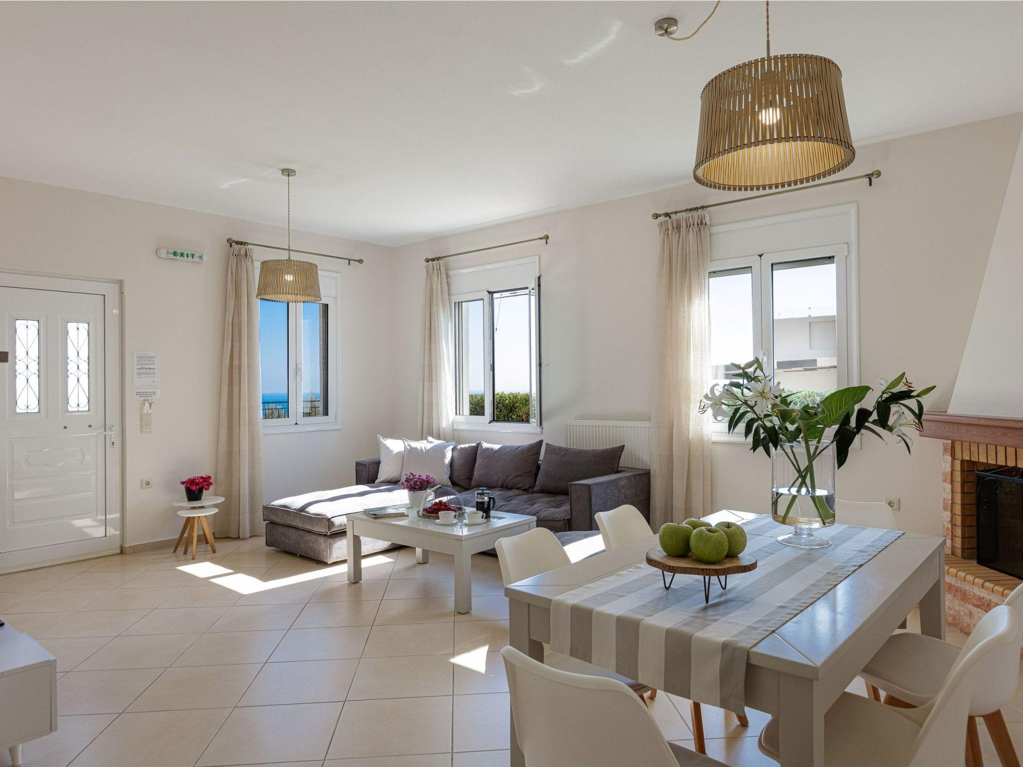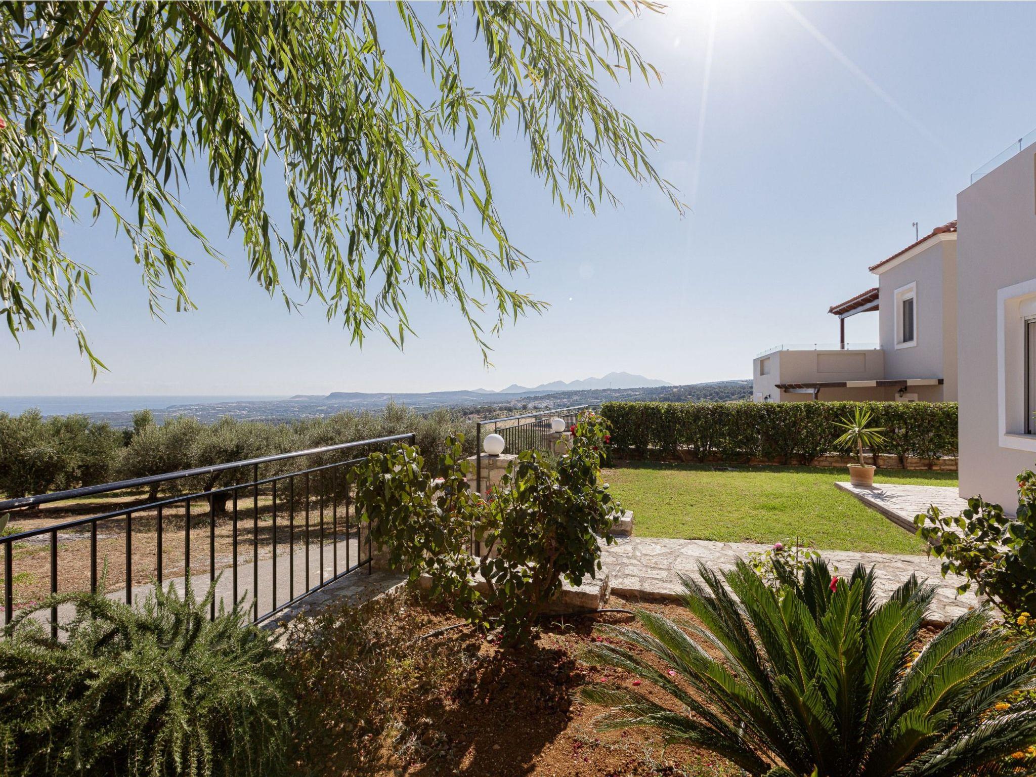 Danai Villa is a cozy three bedroom vacation rental with its own private pool and terrace to enjoy the hot summer sun with your family or friends. The location, by Agios Antonios village, is handy for both the Rethymno Beach and Old Town, plus some of the city’s beautiful landmarks and restaurants. In Danai Villa you’re likely to spend much time admiring the spectacular views that takes center stage, while a beautiful garden with stone walls, plants and flowers create a beautiful and relaxing environment. The pool terrace is equipped with sun beds and umbrellas and offers ample opportunity for all day long to sunbathing and taking in the view of Psiloritis Mountain and Cretan Sea!The interiors of this newly- built villa is divided in two levels reflecting a cozy trend, decorated in light colors. On the first level, the living room consists of leather sofas where the whole family can gather, as well as an open fireplace and a well-equipped kitchen with a dining table. Few steps away you will find the twin bedroom and a bathroom. The other two bedrooms are located on the second level; each of them features a double bed and has access to a balcony with amazing views.To make things even better, the 370 m2 outdoor space is covered by lawn boasting a 25m2 private swimming pool, while for our younger guests some toys are also available. Additionally, the BBQ facilities and the outdoor dining table will give you the opportunity to enjoy al fresco dining in the fresh Cretan air, while gazing the stunning countryside views.