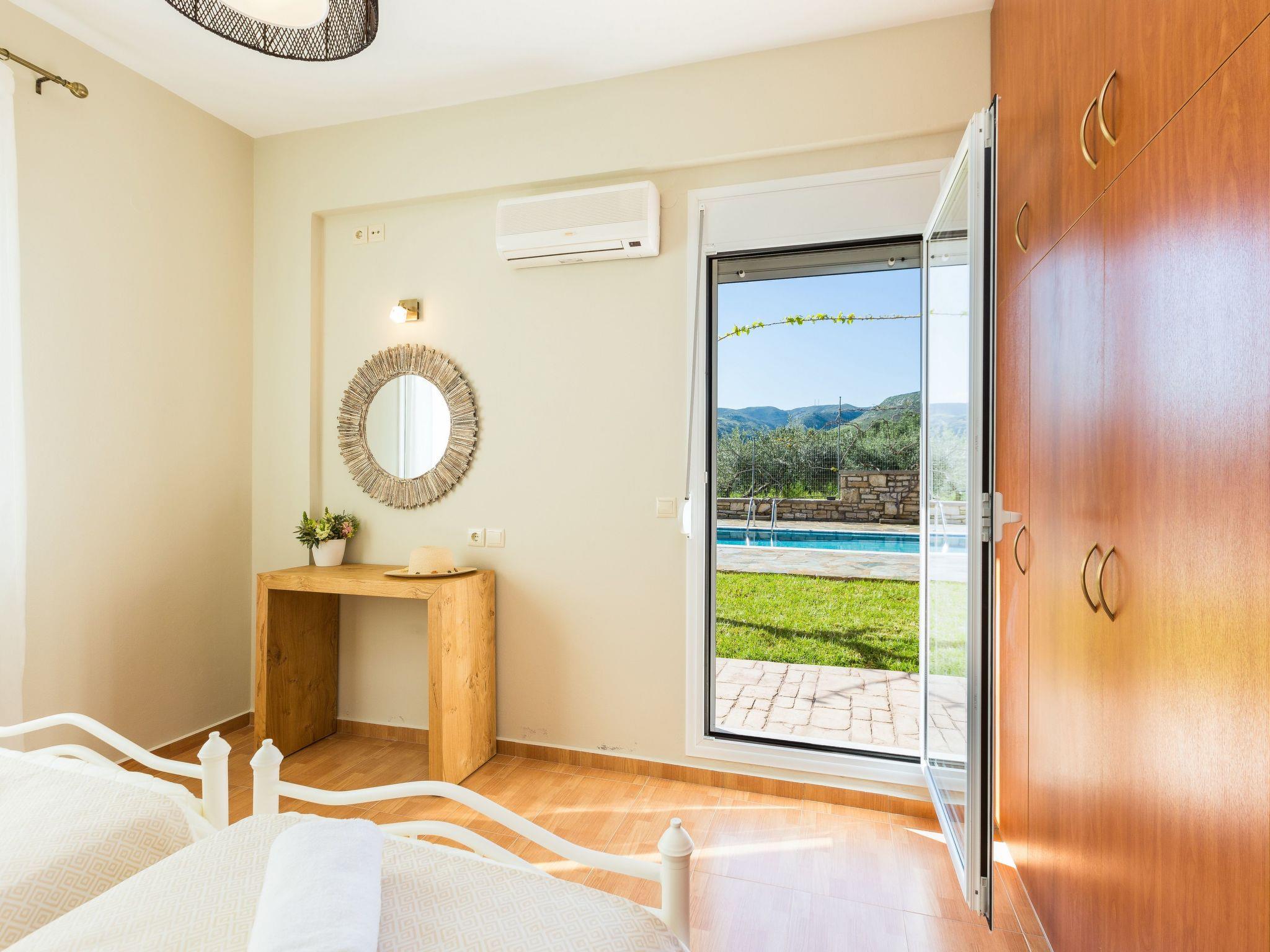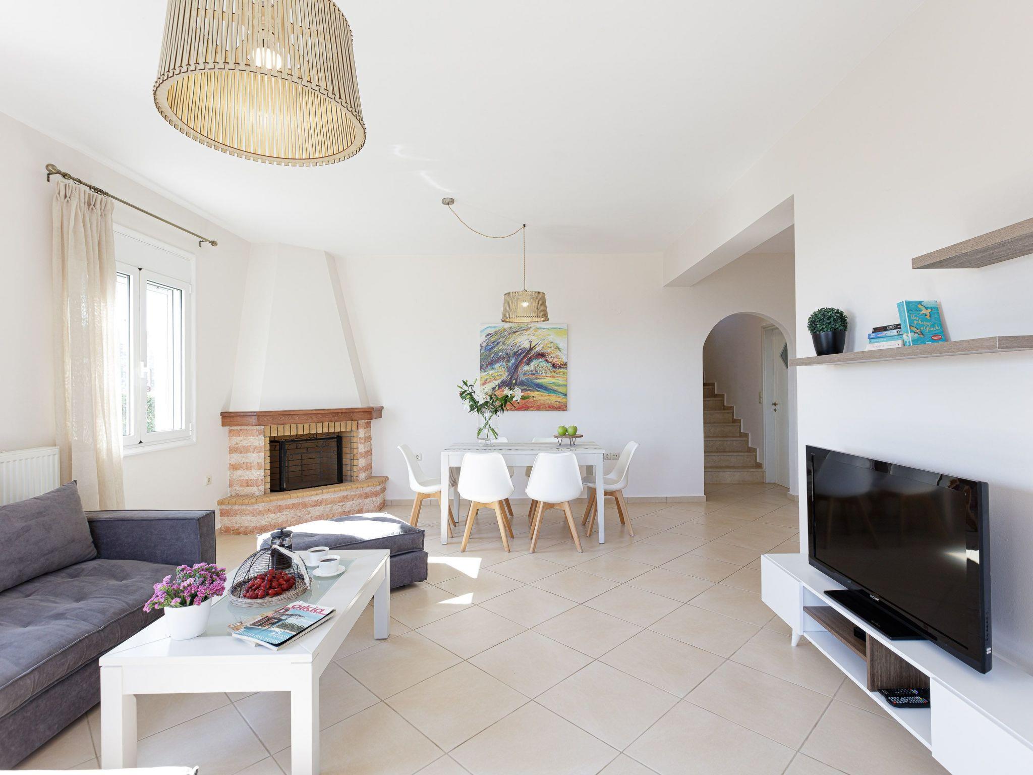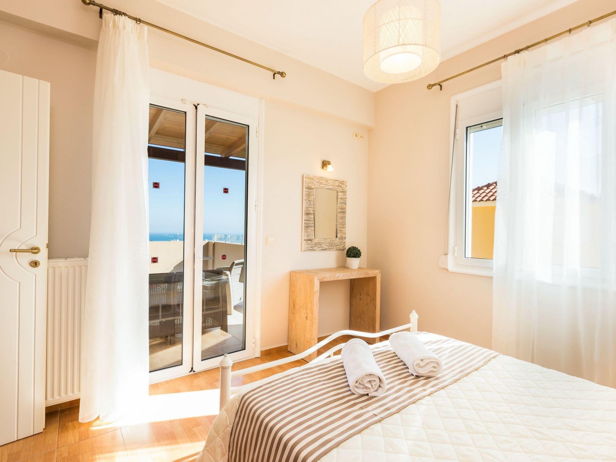 Danai Villa is a cozy three bedroom vacation rental with its own private pool and terrace to enjoy the hot summer sun with your family or friends. The location, by Agios Antonios village, is handy for both the Rethymno Beach and Old Town, plus some of the city’s beautiful landmarks and restaurants. In Danai Villa you’re likely to spend much time admiring the spectacular views that takes center stage, while a beautiful garden with stone walls, plants and flowers create a beautiful and relaxing environment. The pool terrace is equipped with sun beds and umbrellas and offers ample opportunity for all day long to sunbathing and taking in the view of Psiloritis Mountain and Cretan Sea!The interiors of this newly- built villa is divided in two levels reflecting a cozy trend, decorated in light colors. On the first level, the living room consists of leather sofas where the whole family can gather, as well as an open fireplace and a well-equipped kitchen with a dining table. Few steps away you will find the twin bedroom and a bathroom. The other two bedrooms are located on the second level; each of them features a double bed and has access to a balcony with amazing views.To make things even better, the 370 m2 outdoor space is covered by lawn boasting a 25m2 private swimming pool, while for our younger guests some toys are also available. Additionally, the BBQ facilities and the outdoor dining table will give you the opportunity to enjoy al fresco dining in the fresh Cretan air, while gazing the stunning countryside views.