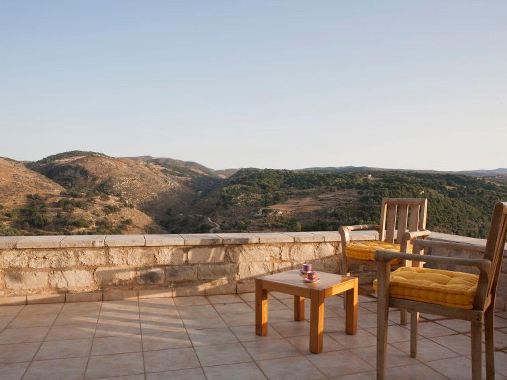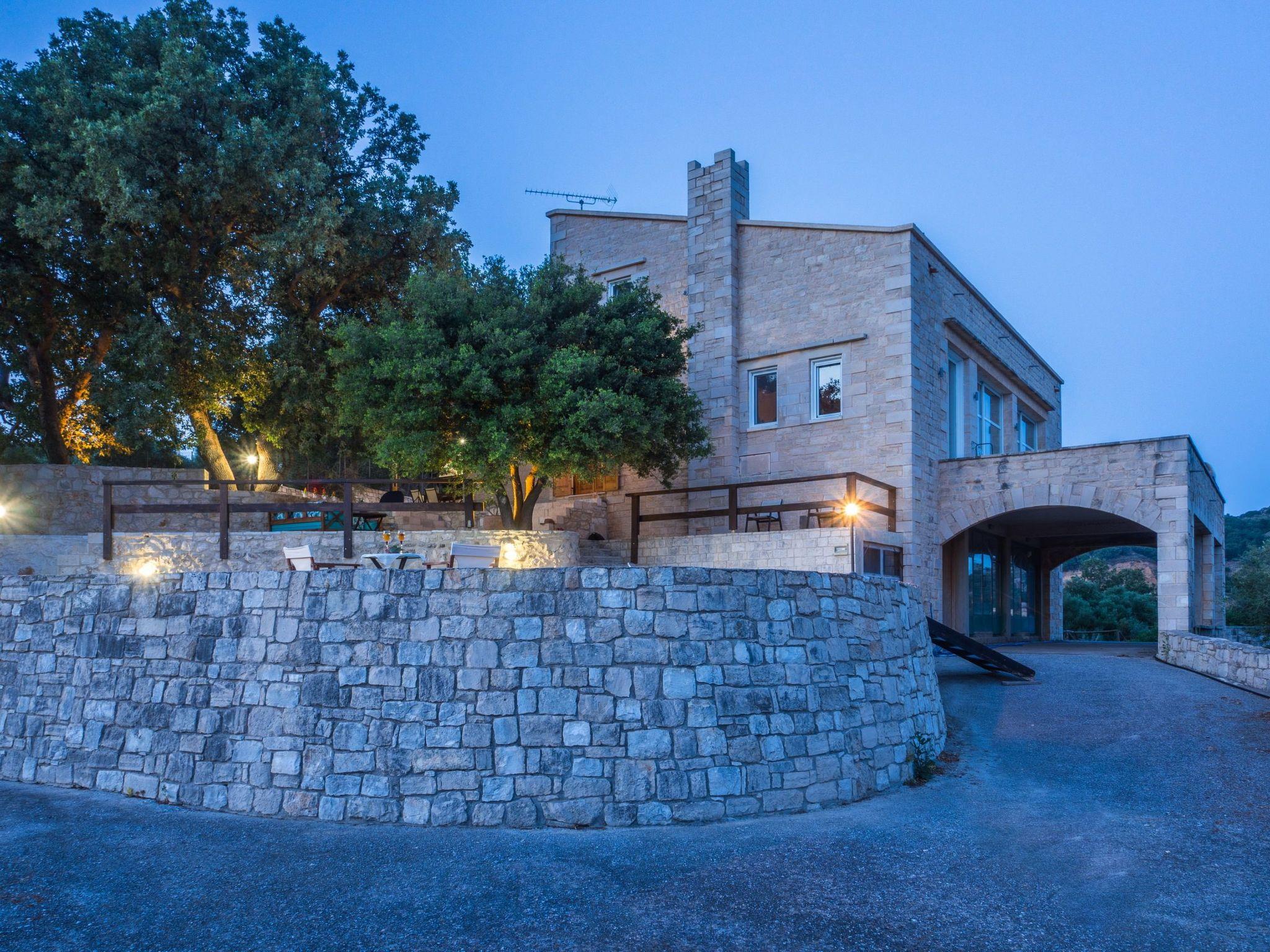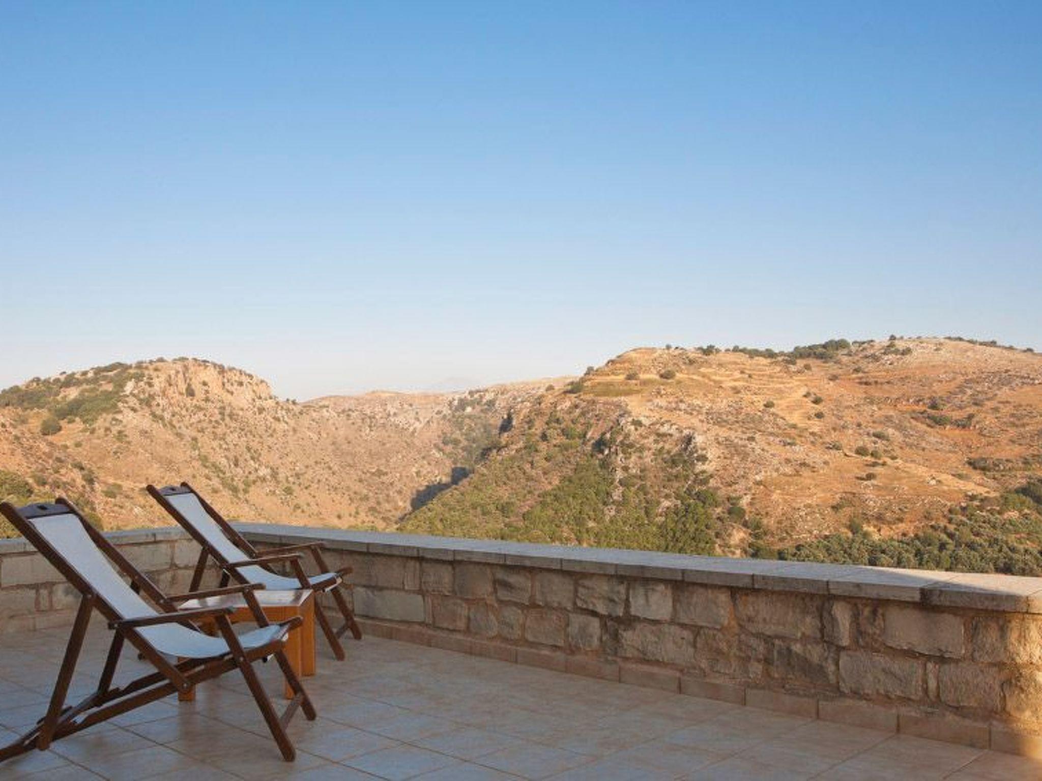 Eclectic in design and architecture as this has the modern version of a "great hall", yet none of the darkness of an old mansion, it is all exposed to the magic healing light we get so much of in Crete. In the middle of the flora and fauna, the massive mountains, the small trees and shrubs, the fragrant plants and herbs, the dramatic rocks to every side - far away from people, your view is open, the air is clear. The land area devoted to the house is large (20 hectares), but really you benefit from the extension of this all into the underpopulated hills beyond. Sit and think, write a paper, start a novel or go for a walk in the so many different paths that someone can take. Going inside this 280 sqm villa there is a great-hall sized living with spectacular views of inland Crete, dining and kitchen area and a 20sqm balcony. Then still on the ground floor, a unique modern stone and wood inspired bathroom. Opposite you will find one of the bedrooms and up the open wood stairs to a gallery corridor leading into the other 2 bedrooms and one smaller bathroom. There is no air conditioning in the living room but only in the bedrooms, as Villa Limeri's 420 m altitude and well angled position keep things cool. Or If you want to be a bit more cool, you can head down to the swimming pool.The name "Limeri", for your interest and perhaps descriptive of its qualities means a "haunt" or "refuge" and for others means 'a retreat', or 'lair' (as in pirate's or fox's lair) in GreekOther Facilities are: fireplace, central heating, mini HiFi, flat screen TV, DVD player, High speed internet connection and a fully equipped kitchen with gas, a dishwasher, fridge and washing machine.Mountain biking and hiking or if you are a bird watching enthusiast, bring your binoculars as Villa Limeri's position/location is ideal for these kind of sports! Important notice: The villa is not suitable for kids under 12 years old. Check out is 11:00 latest and check in is 15:00 earliest.
