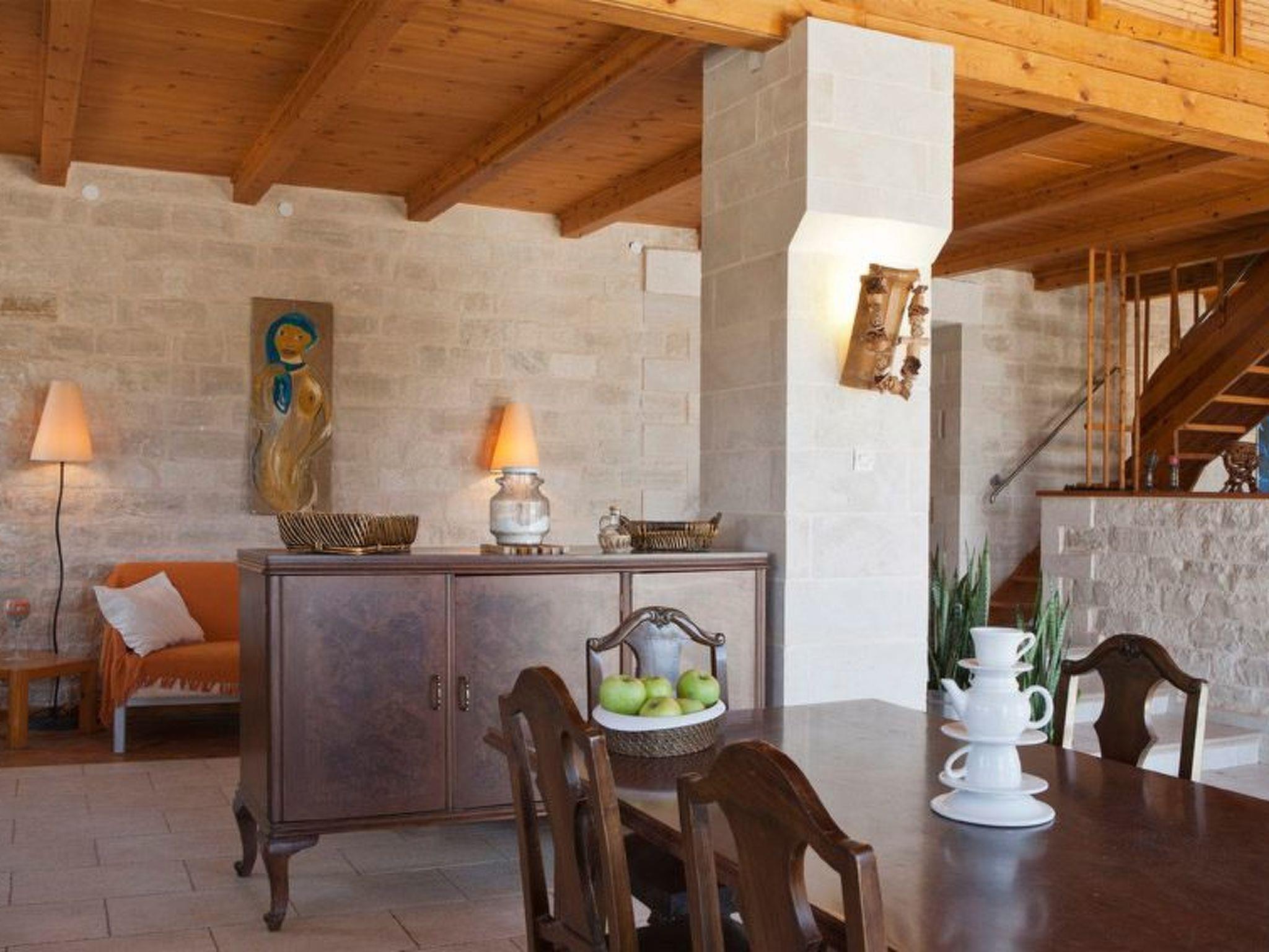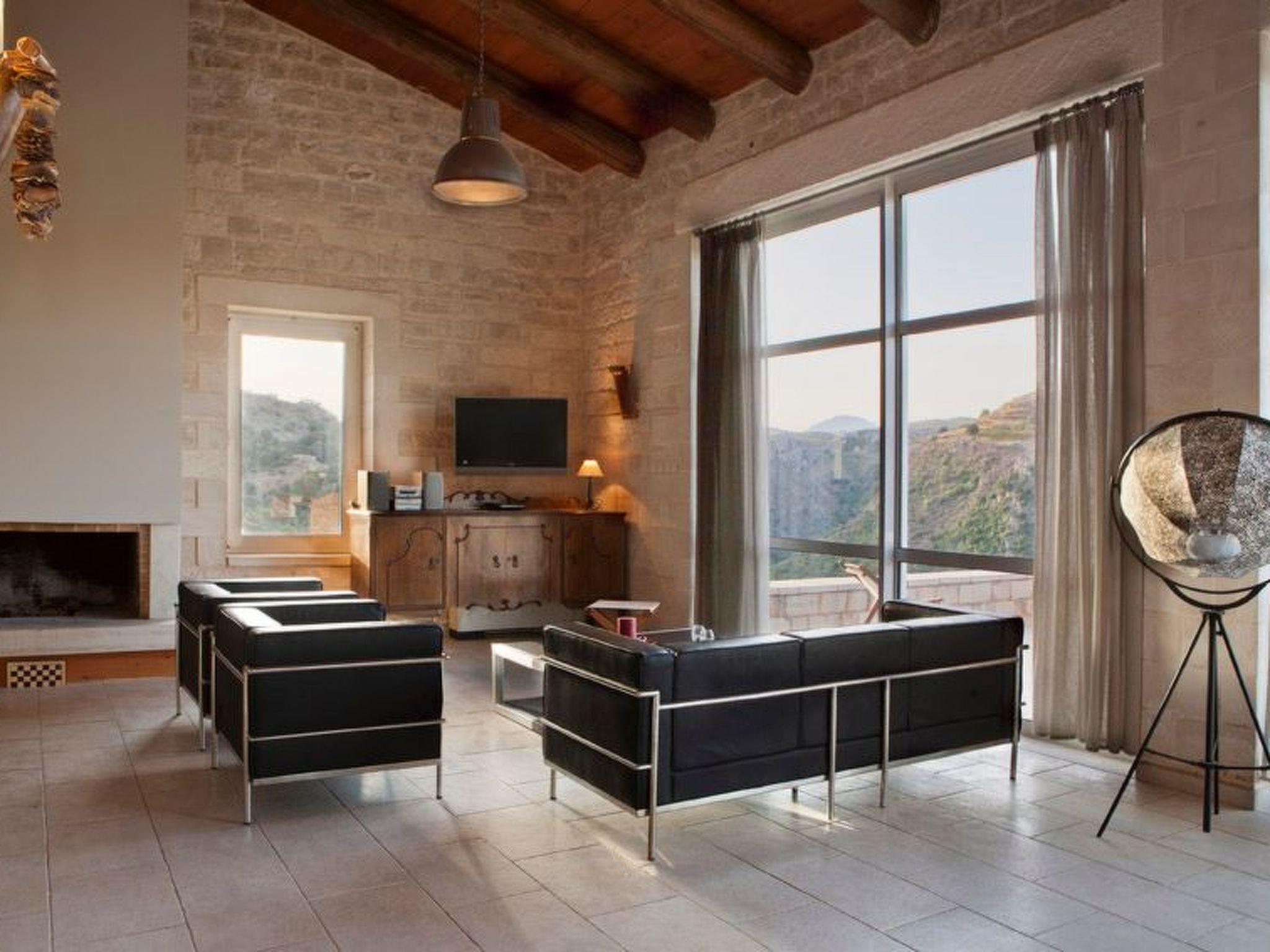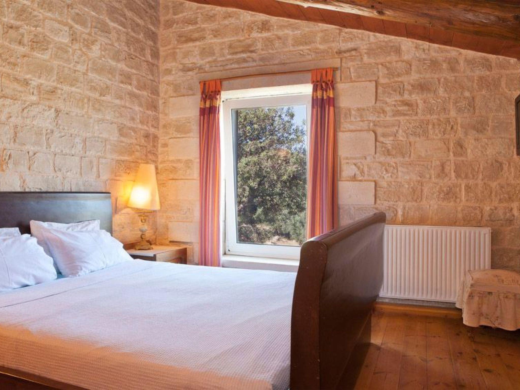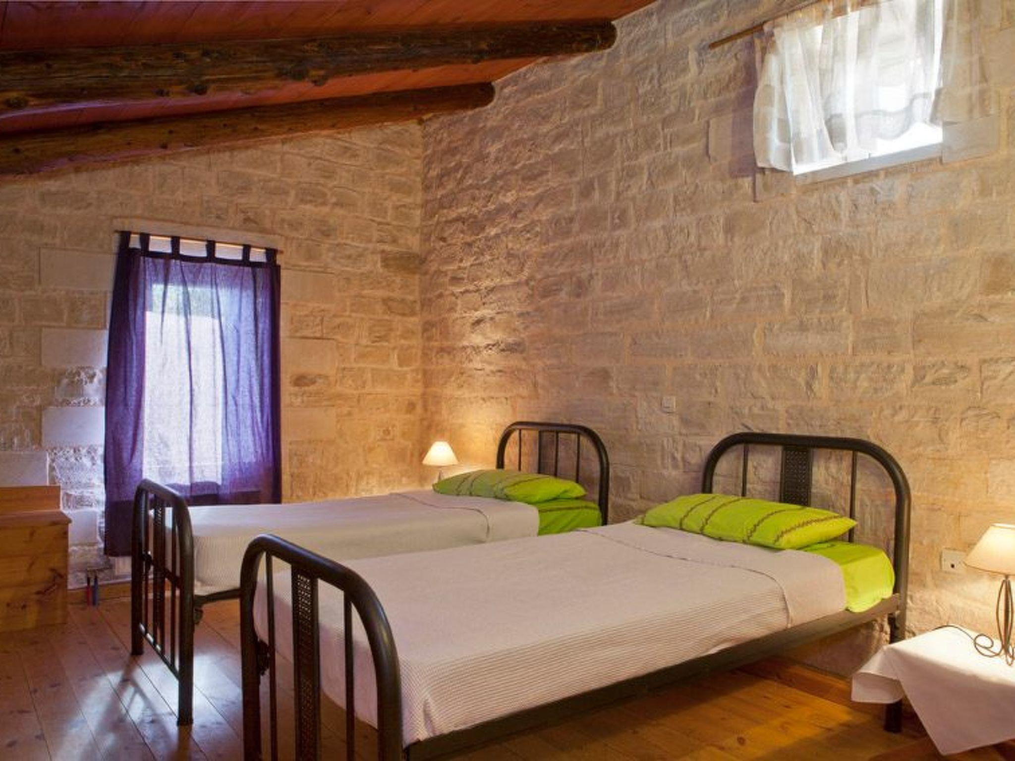 Eclectic in design and architecture as this has the modern version of a "great hall", yet none of the darkness of an old mansion, it is all exposed to the magic healing light we get so much of in Crete. In the middle of the flora and fauna, the massive mountains, the small trees and shrubs, the fragrant plants and herbs, the dramatic rocks to every side - far away from people, your view is open, the air is clear. The land area devoted to the house is large (20 hectares), but really you benefit from the extension of this all into the underpopulated hills beyond. Sit and think, write a paper, start a novel or go for a walk in the so many different paths that someone can take. Going inside this 280 sqm villa there is a great-hall sized living with spectacular views of inland Crete, dining and kitchen area and a 20sqm balcony. Then still on the ground floor, a unique modern stone and wood inspired bathroom. Opposite you will find one of the bedrooms and up the open wood stairs to a gallery corridor leading into the other 2 bedrooms and one smaller bathroom. There is no air conditioning in the living room but only in the bedrooms, as Villa Limeri's 420 m altitude and well angled position keep things cool. Or If you want to be a bit more cool, you can head down to the swimming pool.The name "Limeri", for your interest and perhaps descriptive of its qualities means a "haunt" or "refuge" and for others means 'a retreat', or 'lair' (as in pirate's or fox's lair) in GreekOther Facilities are: fireplace, central heating, mini HiFi, flat screen TV, DVD player, High speed internet connection and a fully equipped kitchen with gas, a dishwasher, fridge and washing machine.Mountain biking and hiking or if you are a bird watching enthusiast, bring your binoculars as Villa Limeri's position/location is ideal for these kind of sports! Important notice: The villa is not suitable for kids under 12 years old. Check out is 11:00 latest and check in is 15:00 earliest.